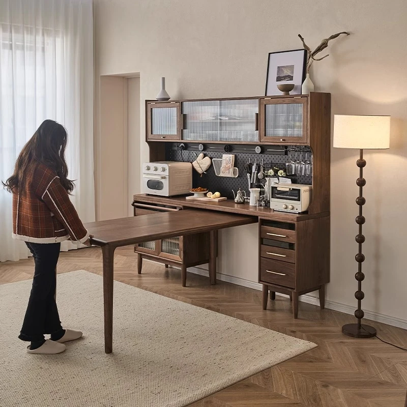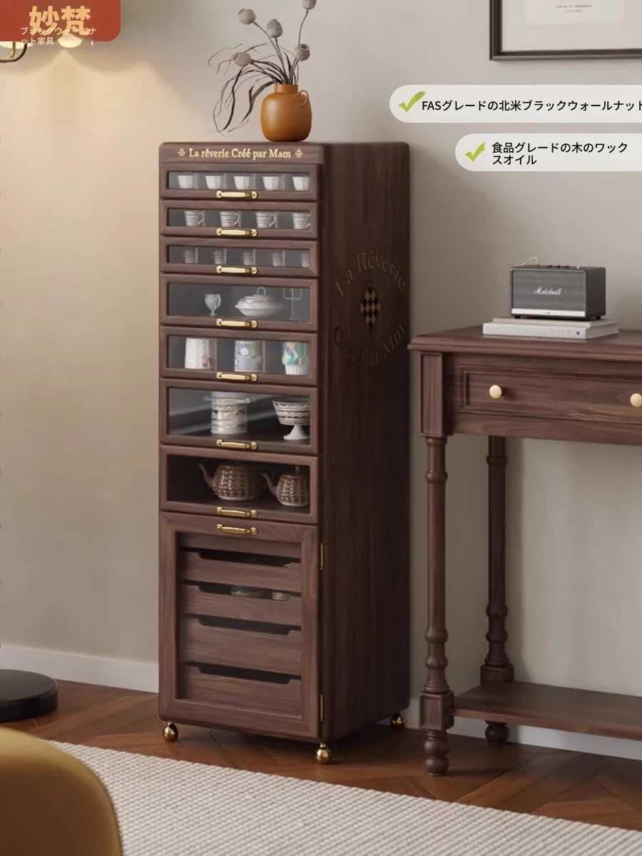 妙梵「食萃柜」北米産ブラックウォールナット製のモダンなキッチン収納キャビネット - おしゃれなデザインで収納力抜群!あなたのダイニングをスタイリッシュに演出します。