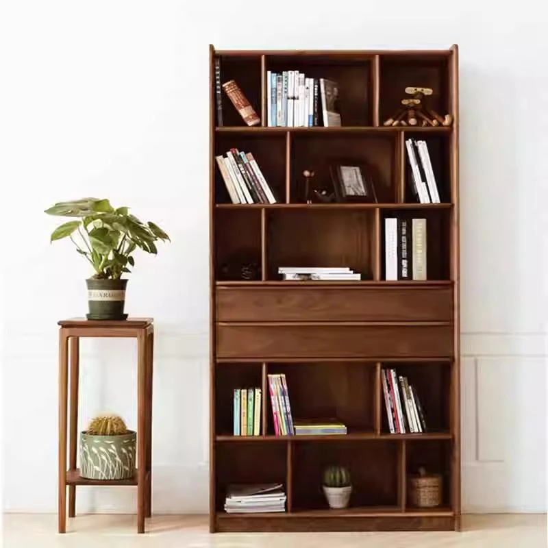 妙梵「書韻巣」北米産ブラックウォールナット無垢材の本棚 - 自由に組み合わせ可能なスタイリッシュなリビング収納ラック!デザイン性と機能性を兼ね備えた、あなたの空間を美しく彩る一品。