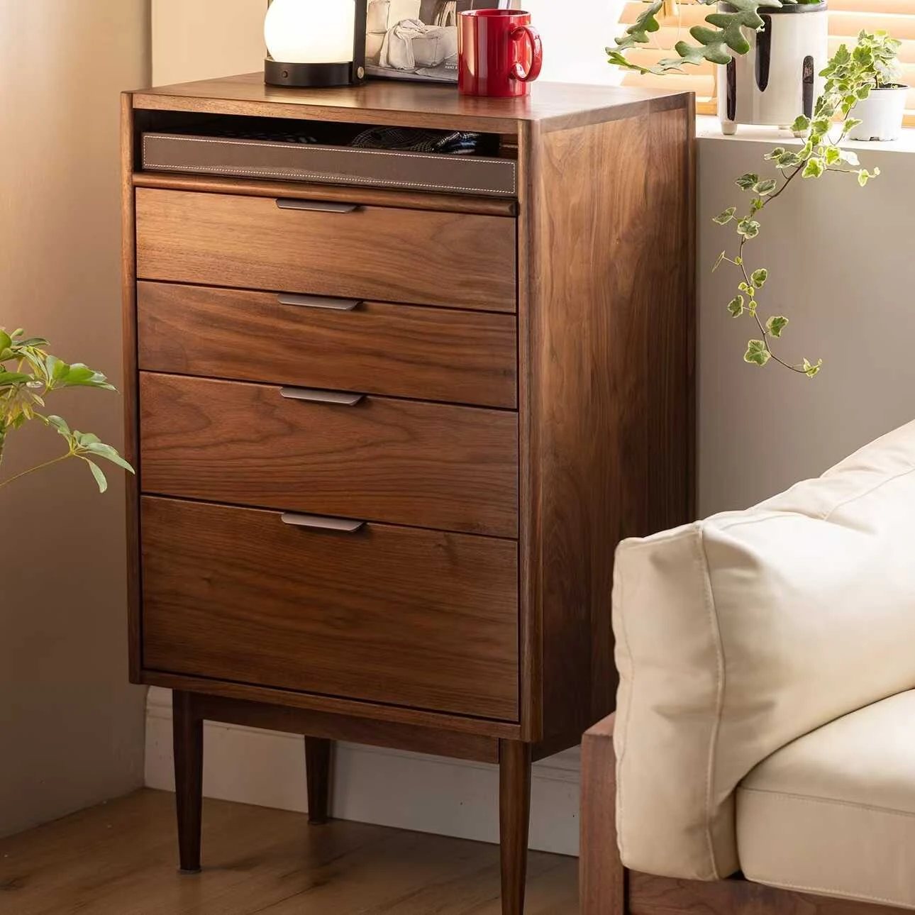 妙梵「映岚」タンス - 北米産ウォールナット材使用のモダンシンプルな5段チェスト!洗練されたデザインで、あなたの寝室をスタイリッシュに演出!収納力抜群で、毎日の整理整頓も楽々。