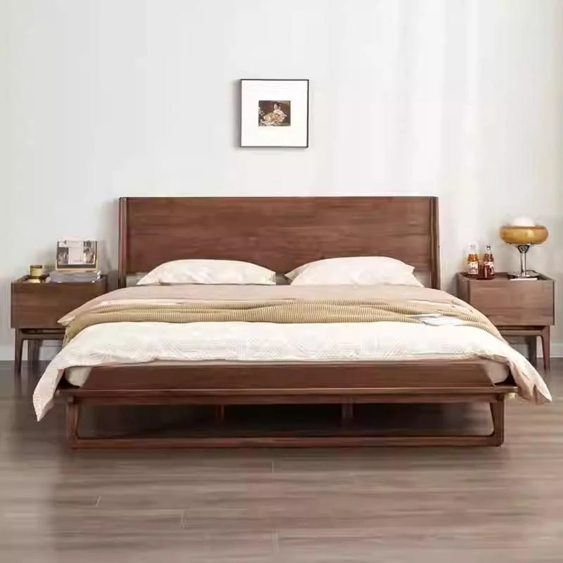 Miaofan "Plum Blossom" Solid Black Walnut Bed - Scandinavian Style Full Solid Wood Double Bed for Modern Minimalist Weddings