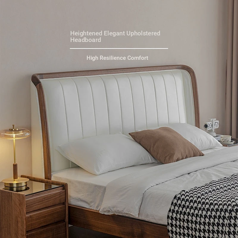 Miaofan "Cloud Bed" - North American Black Walnut Double Bed, Elegant Scandinavian-Italian Minimalist Design with Luxurious Genuine Leather for Your Bedroom