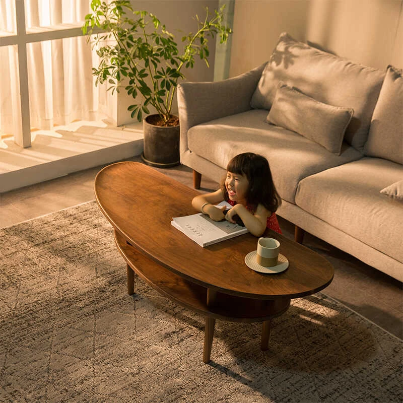 MiaoFan "Xingyi" Modern Minimalist Oval Glass-Edged Coffee Table in North American Black Walnut - Stylish Solid Wood Design for Your Home
