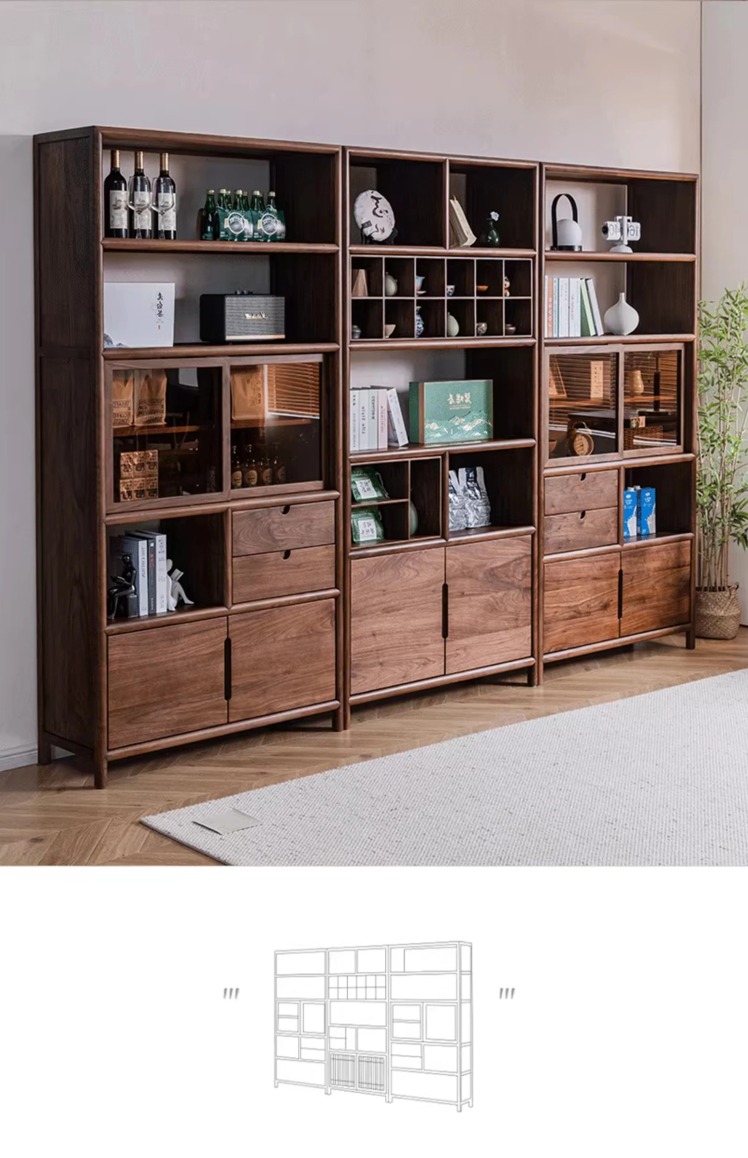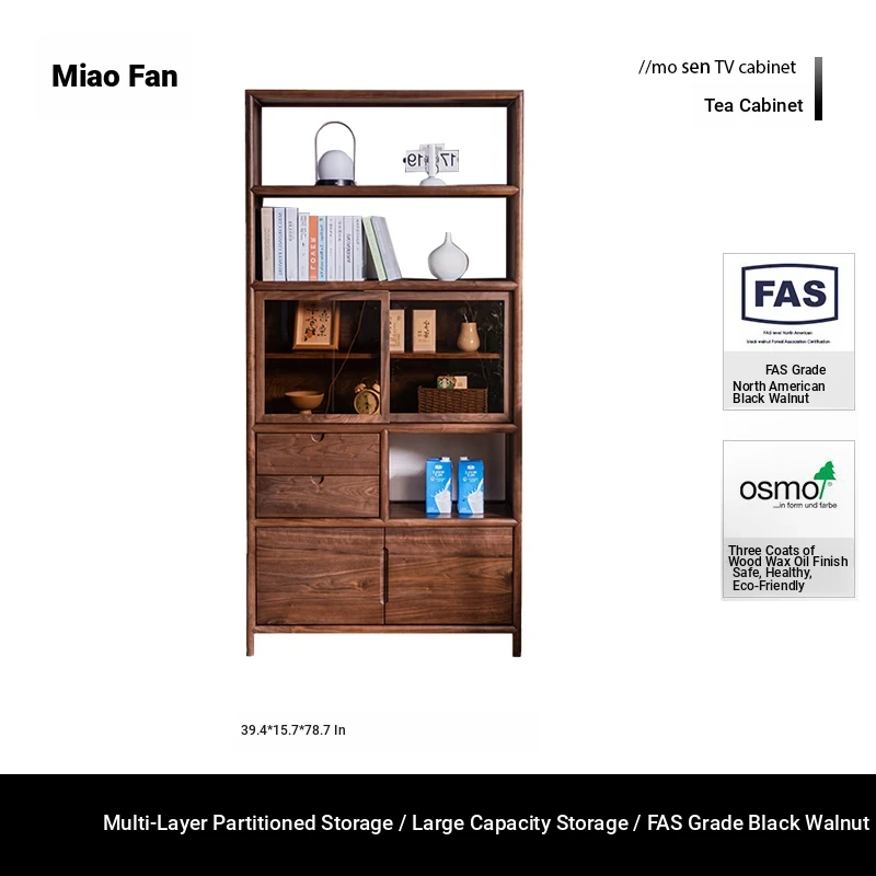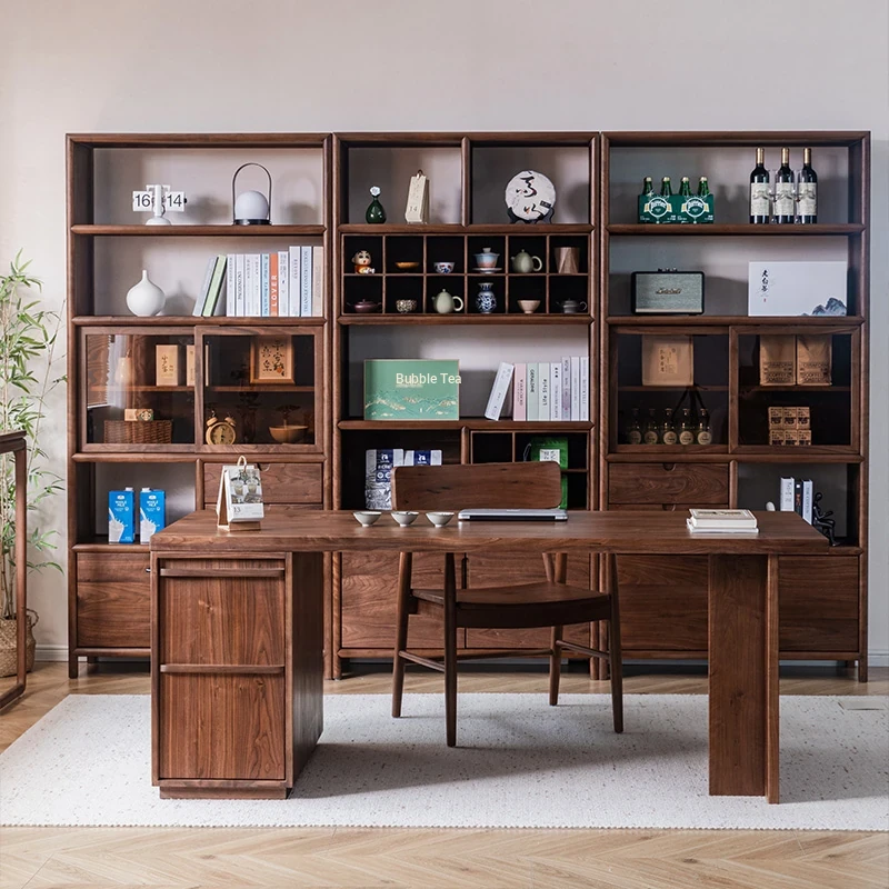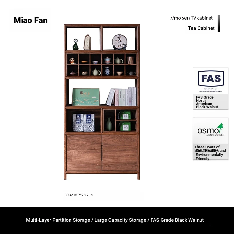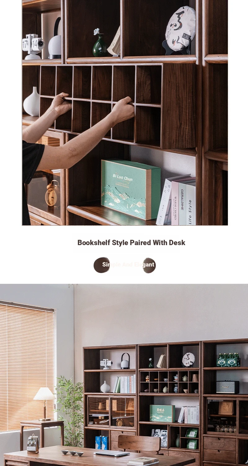 "Elegant Walnut Wood Tea Display Cabinet - New Chinese Style Solid Wood Bookshelf and Storage Rack, Perfect for Organizing Your Treasures"