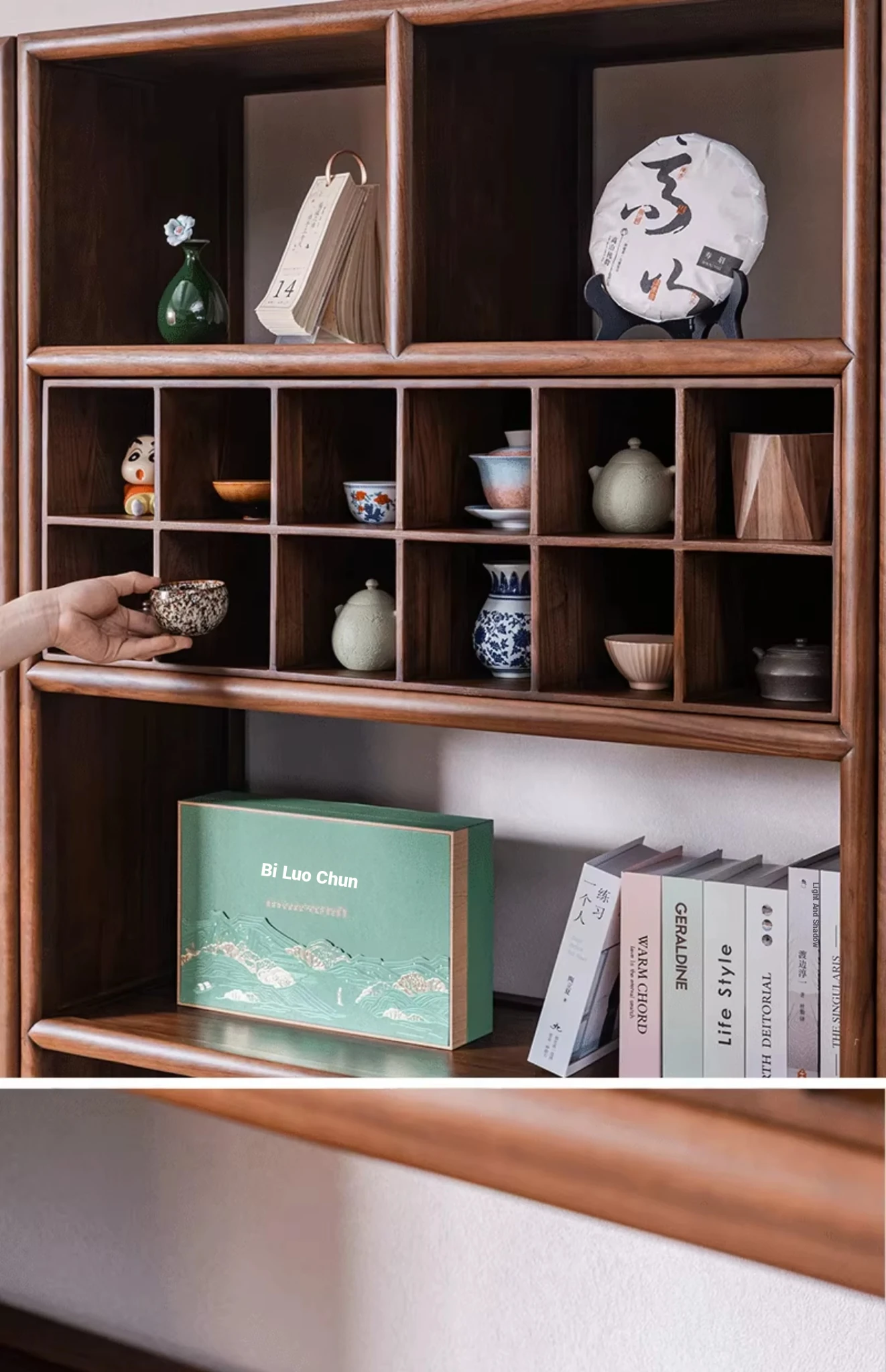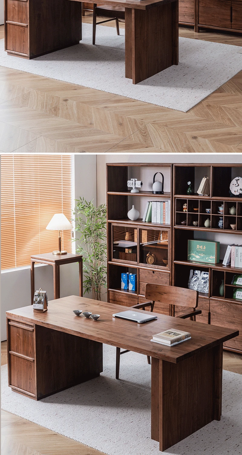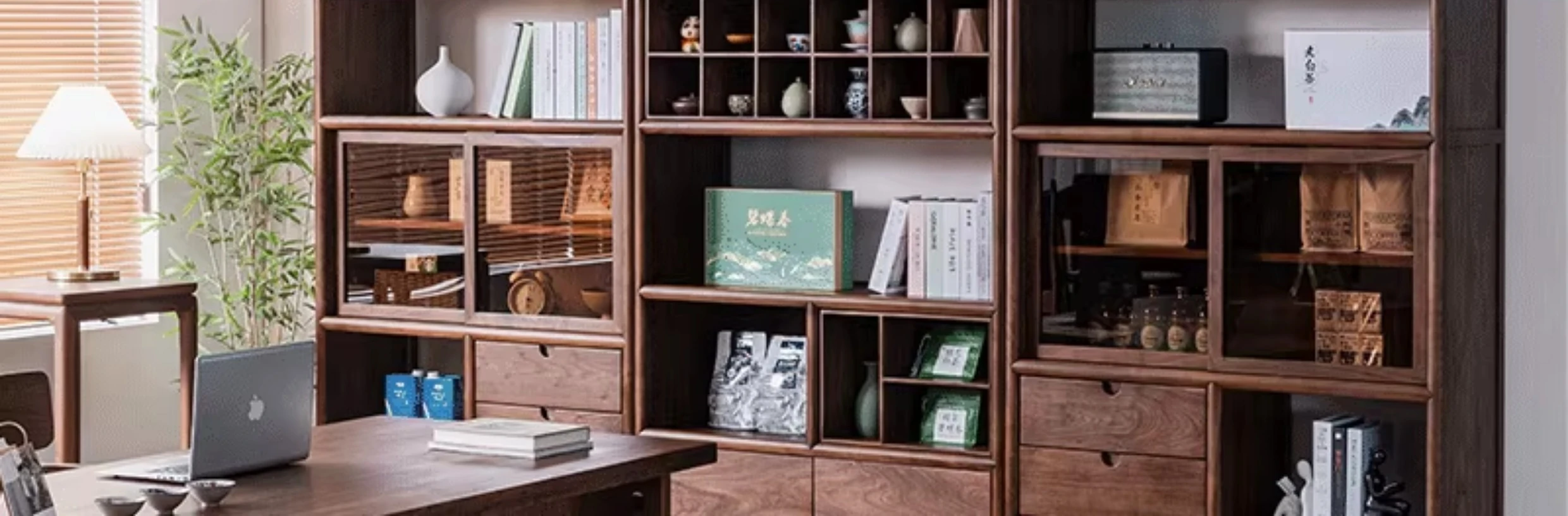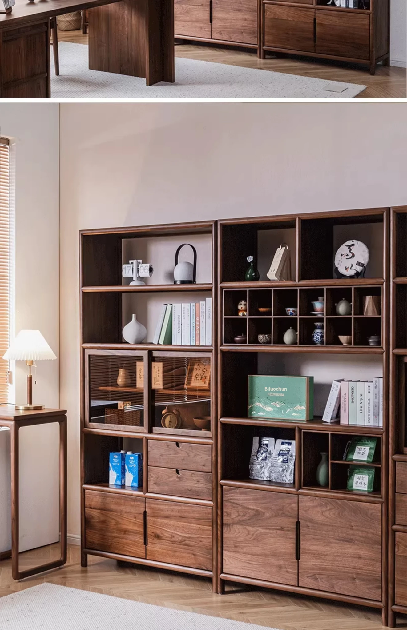 "Elegant Walnut Wood Tea Display Cabinet - New Chinese Style Solid Wood Bookshelf and Storage Rack, Perfect for Organizing Your Treasures"