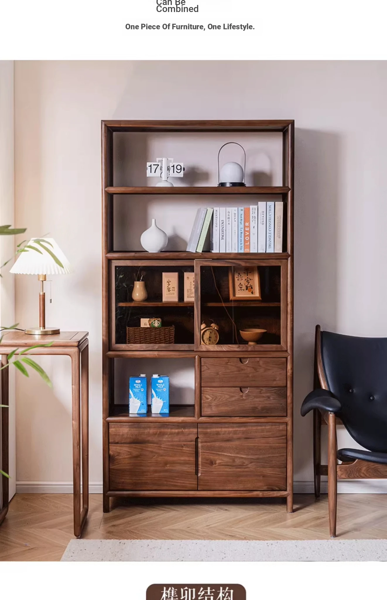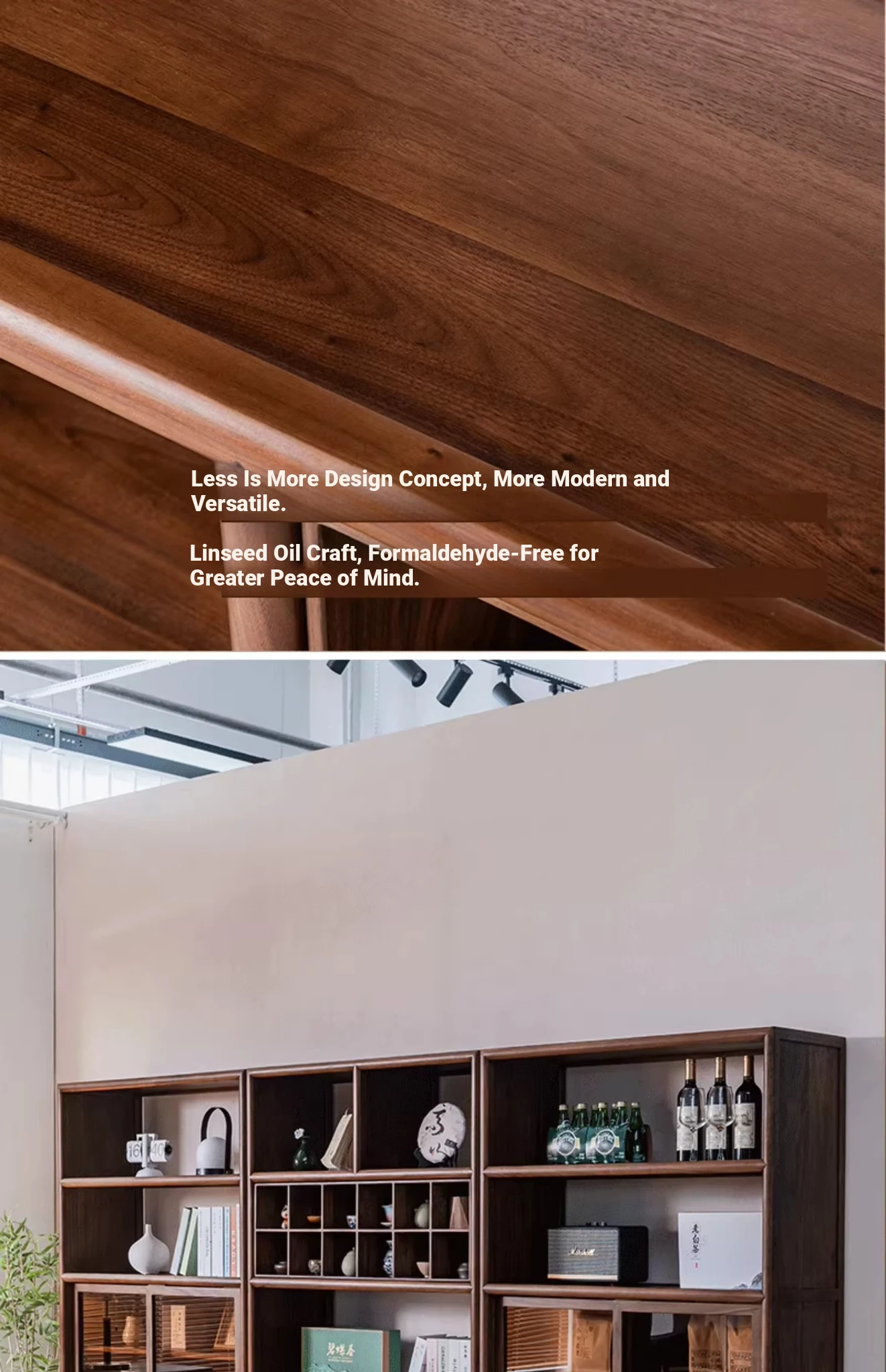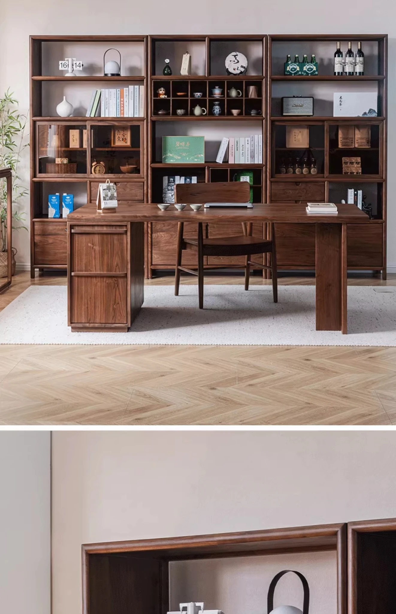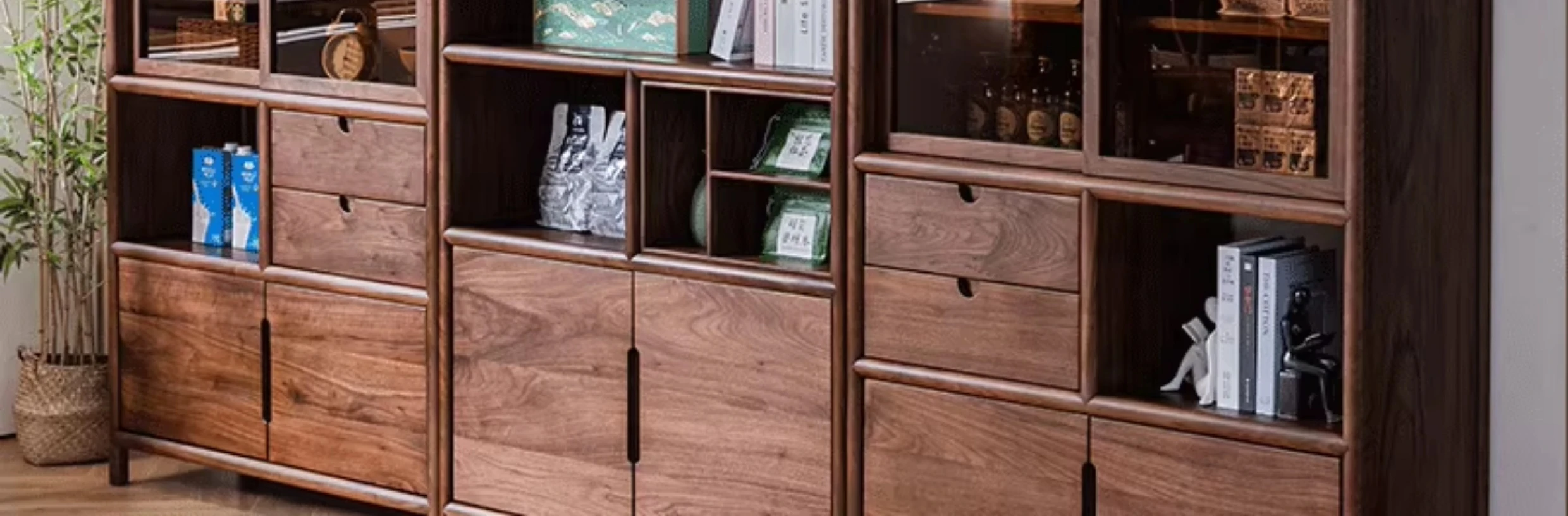 "Elegant Walnut Wood Tea Display Cabinet - New Chinese Style Solid Wood Bookshelf and Storage Rack, Perfect for Organizing Your Treasures"