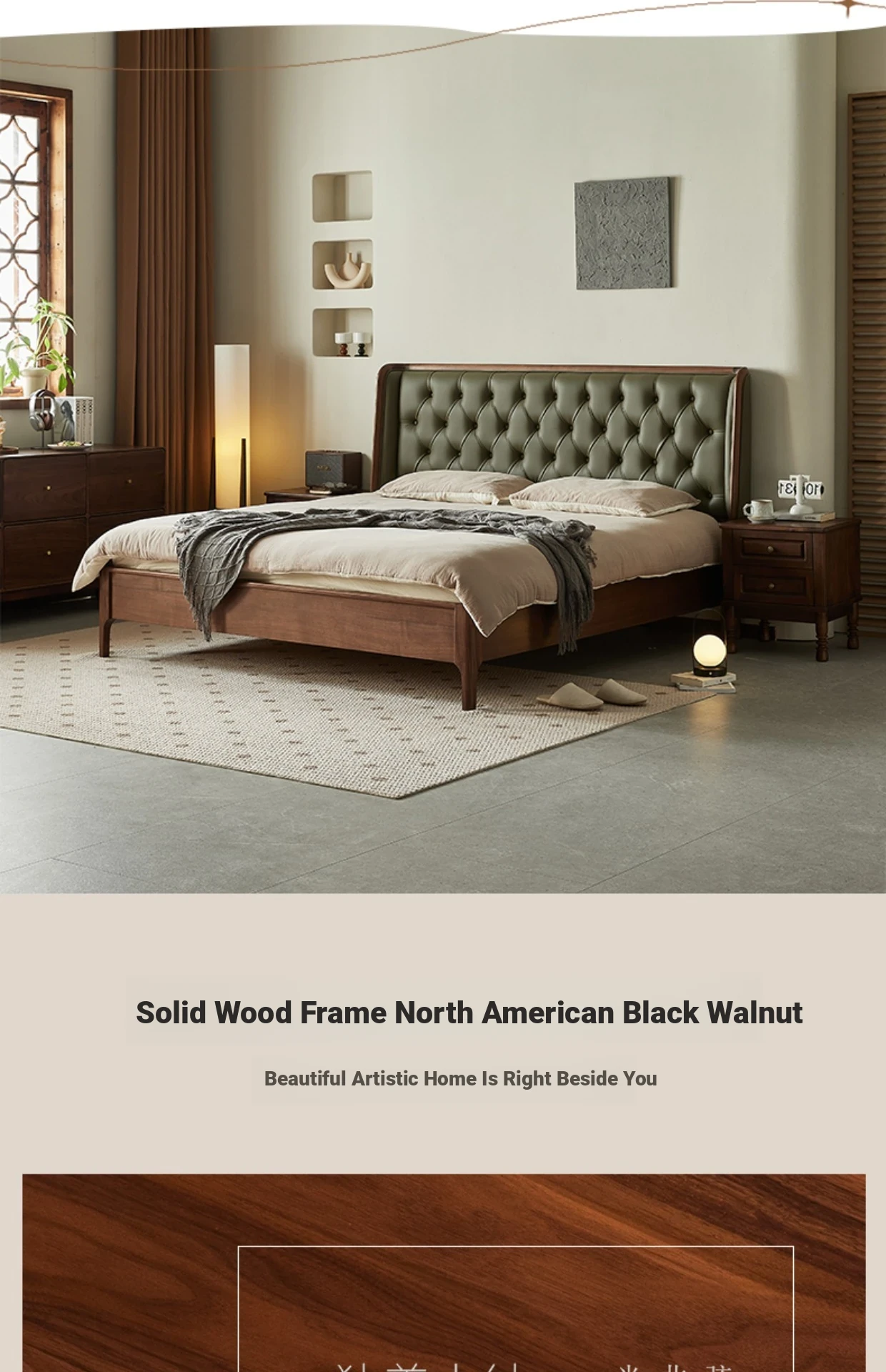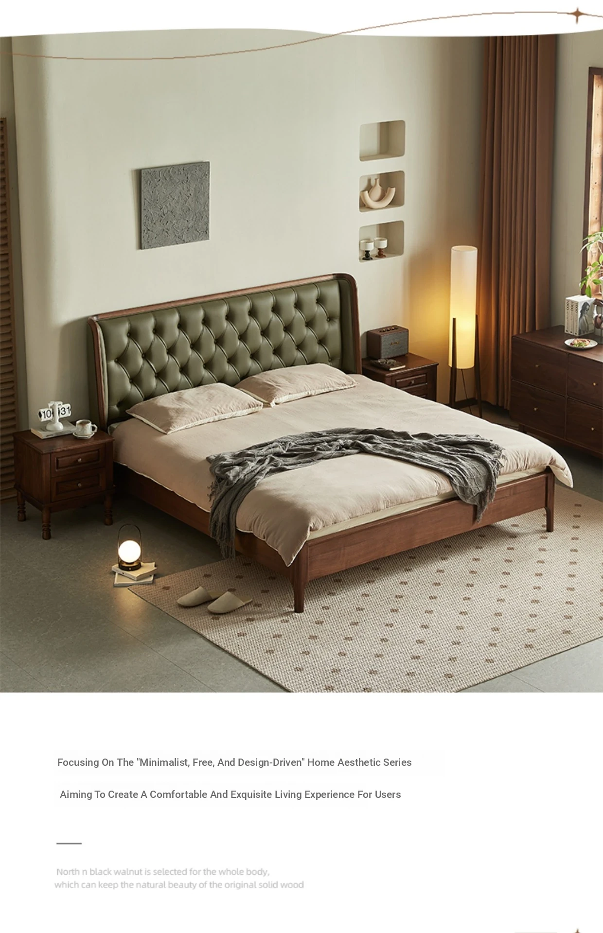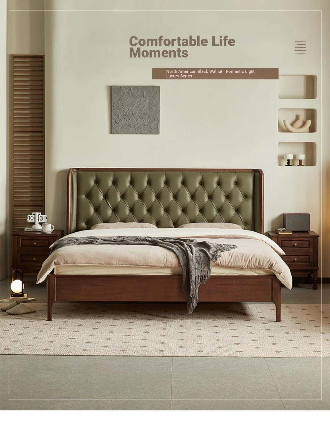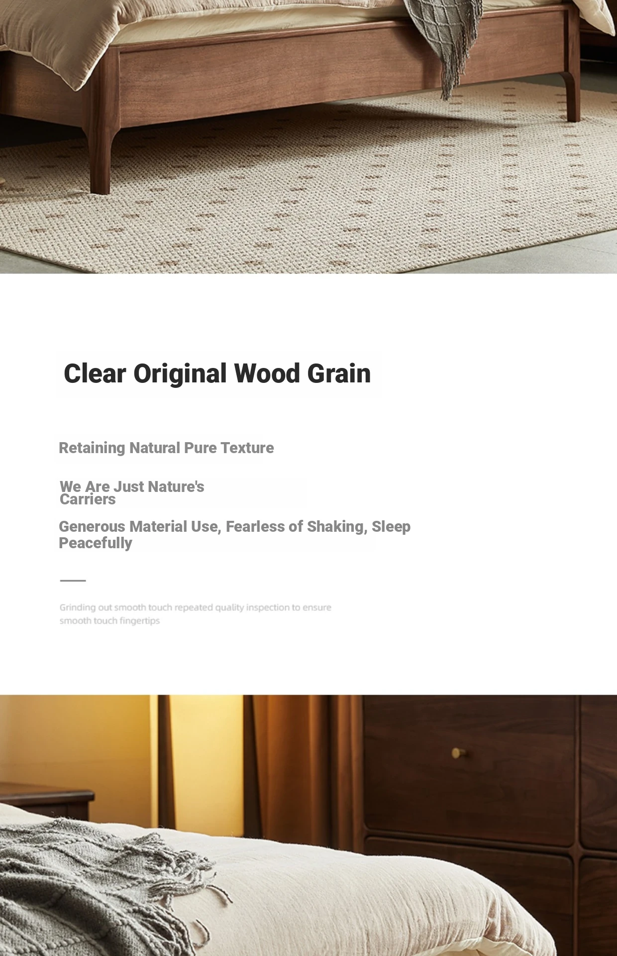 Miaofan "Dawn Bed" - Premium North American Black Walnut Solid Wood Double Bed (1.8m) for Master Bedroom - Elegant and Stylish 1.5m Option Available