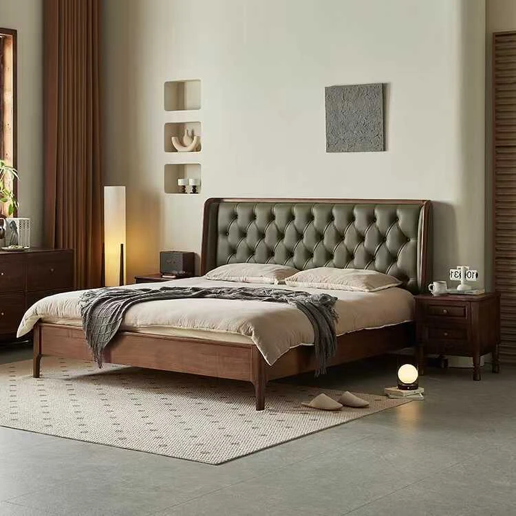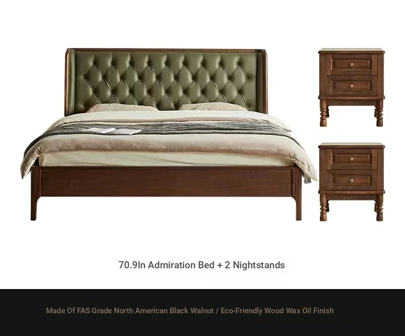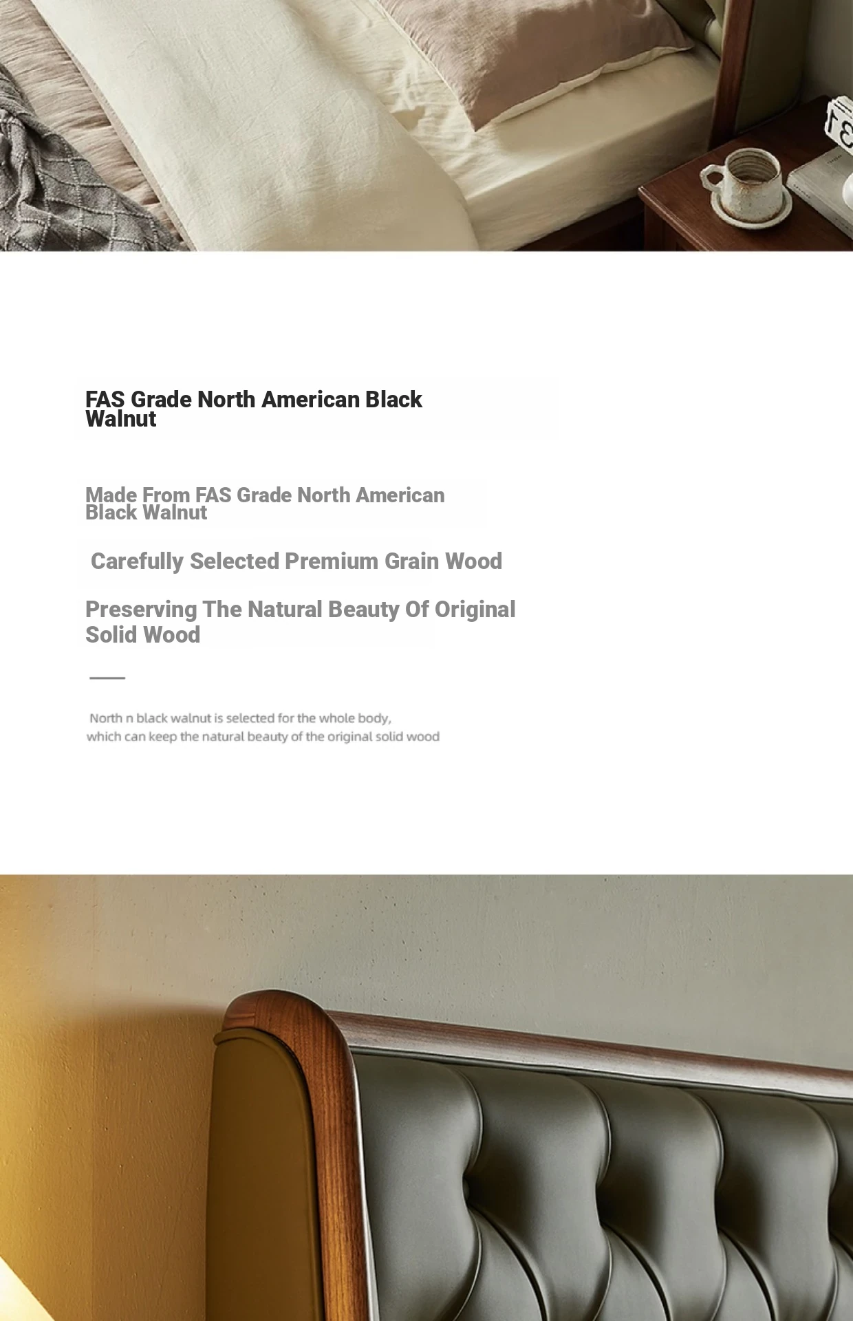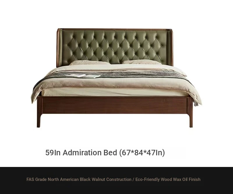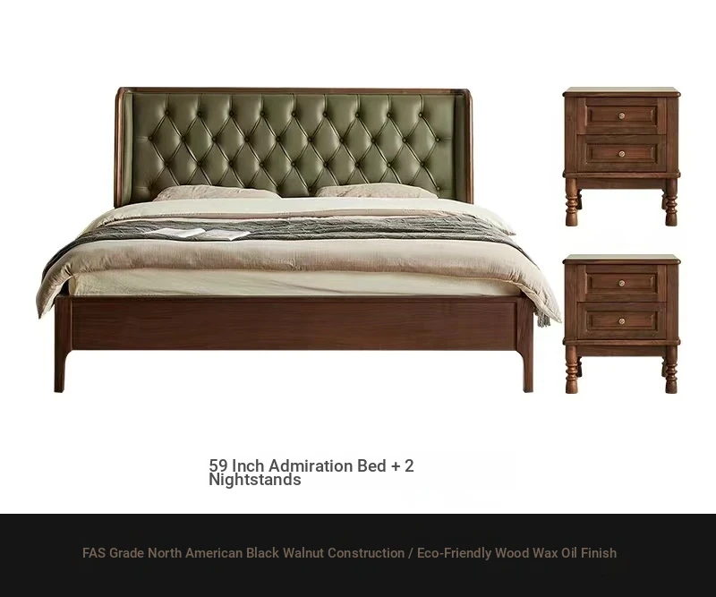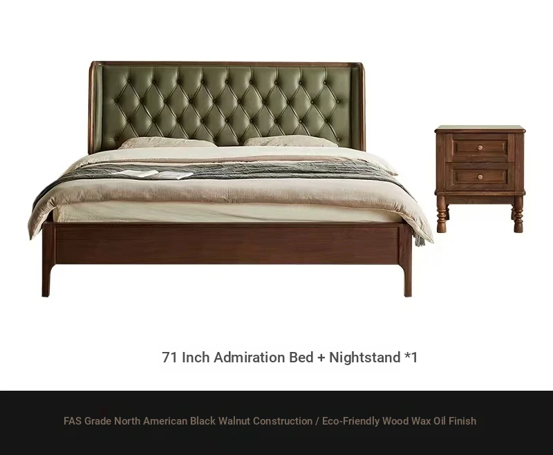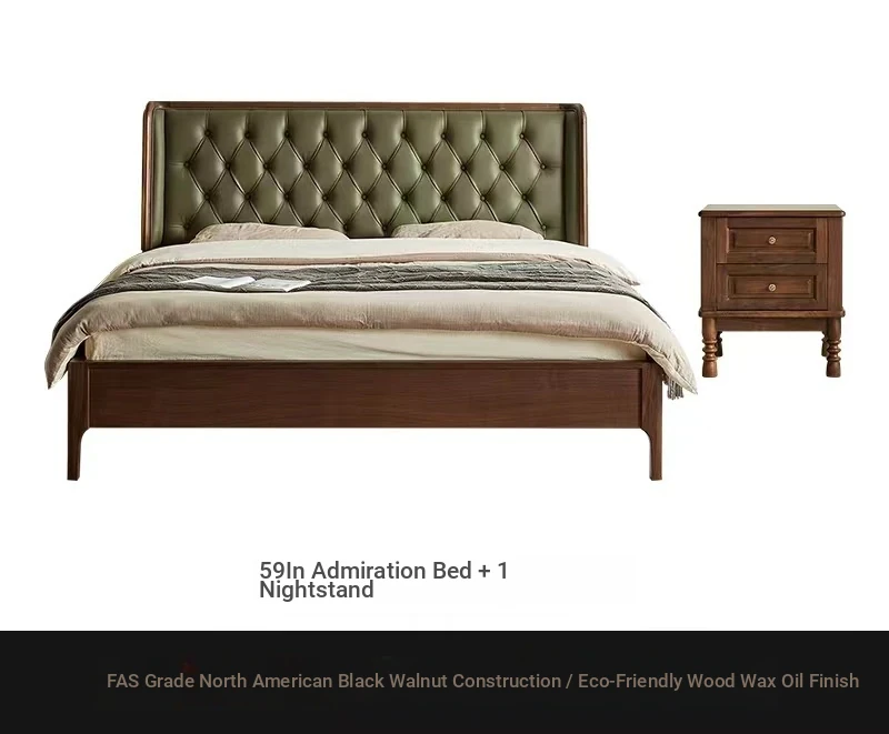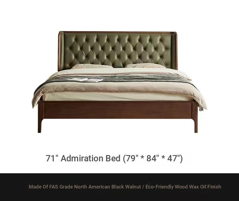 Miaofan "Dawn Bed" - Premium North American Black Walnut Solid Wood Double Bed (1.8m) for Master Bedroom - Elegant and Stylish 1.5m Option Available