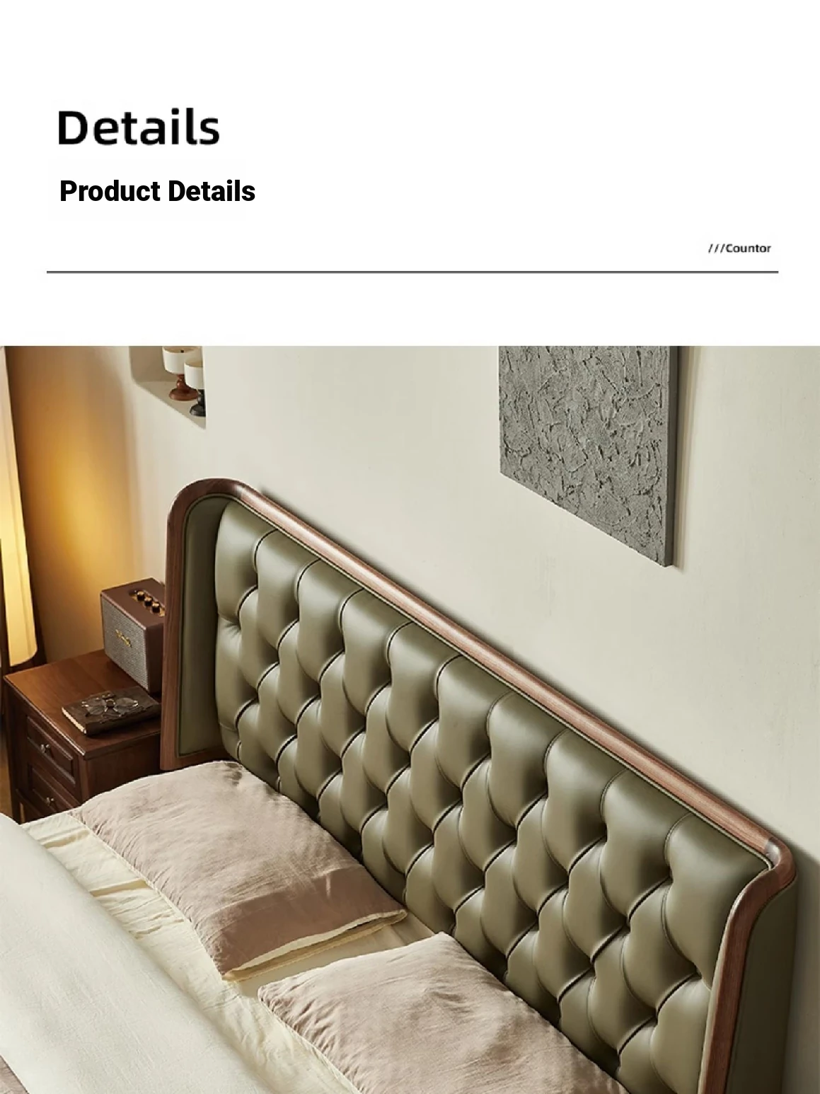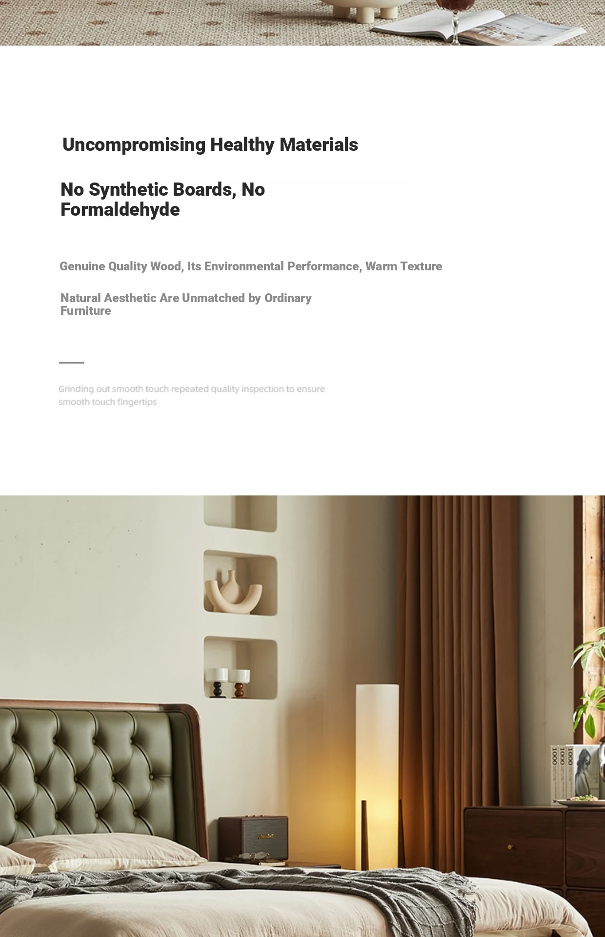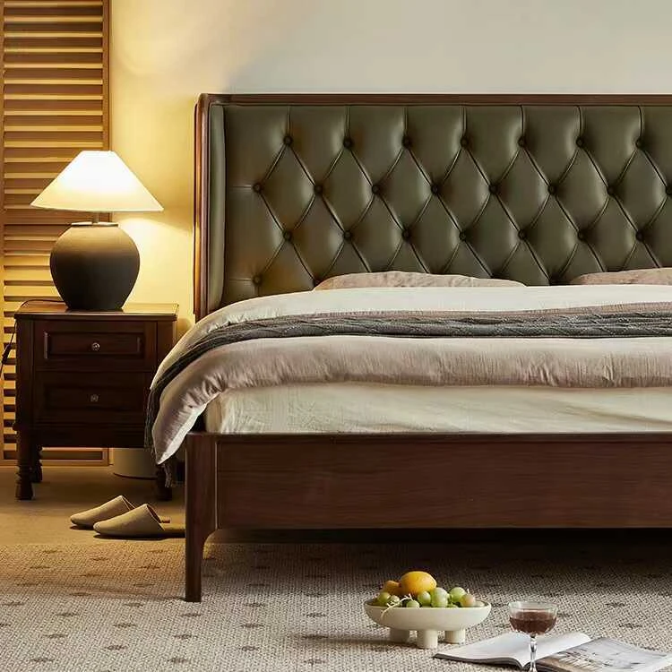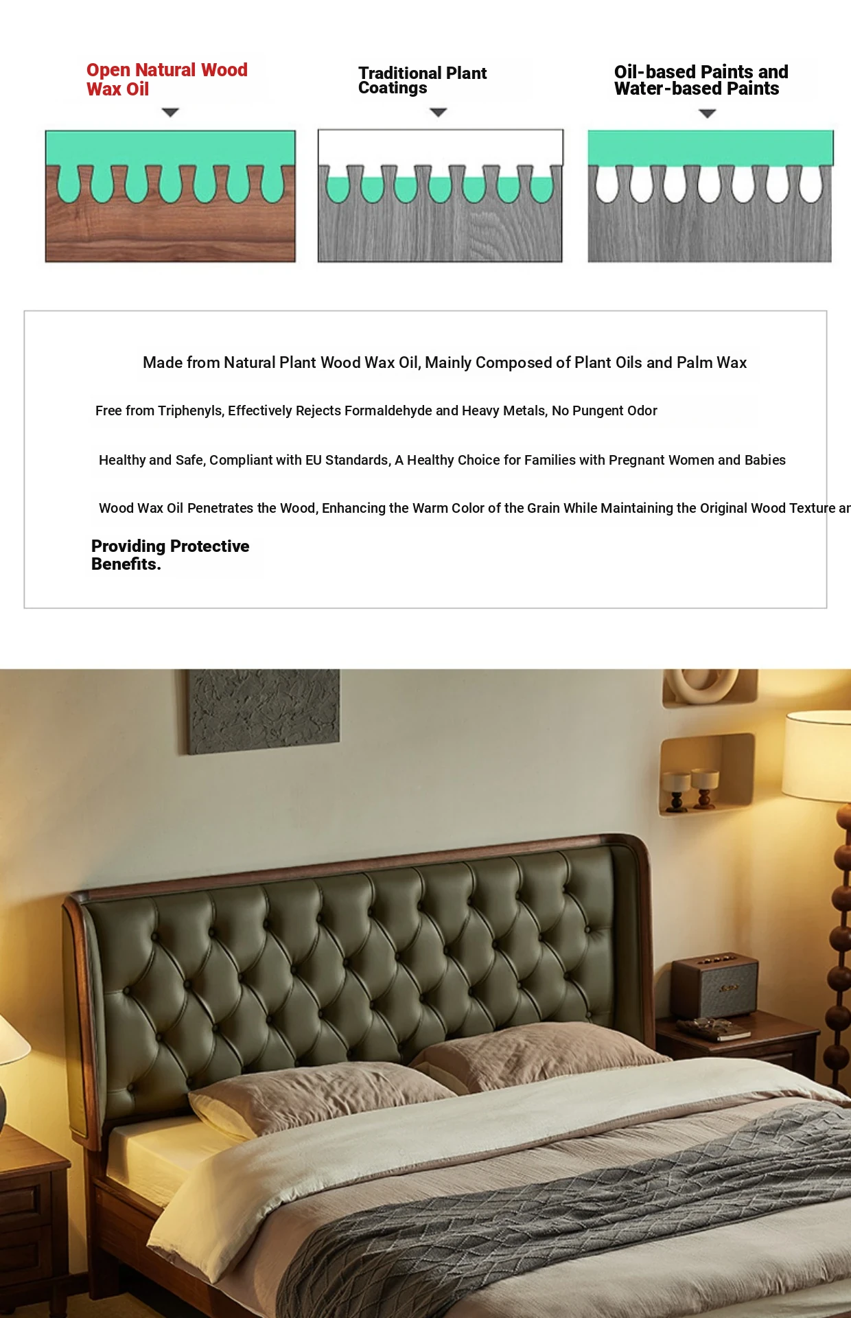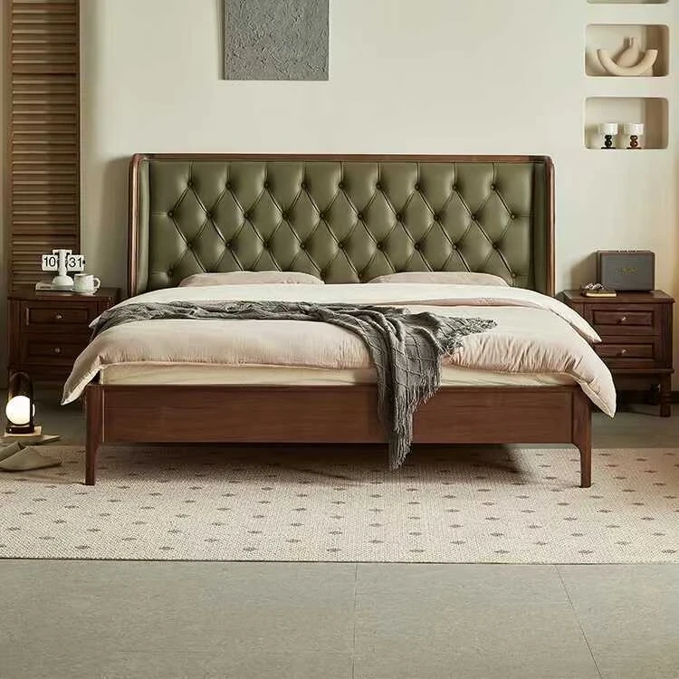 Miaofan "Dawn Bed" - Premium North American Black Walnut Solid Wood Double Bed (1.8m) for Master Bedroom - Elegant and Stylish 1.5m Option Available