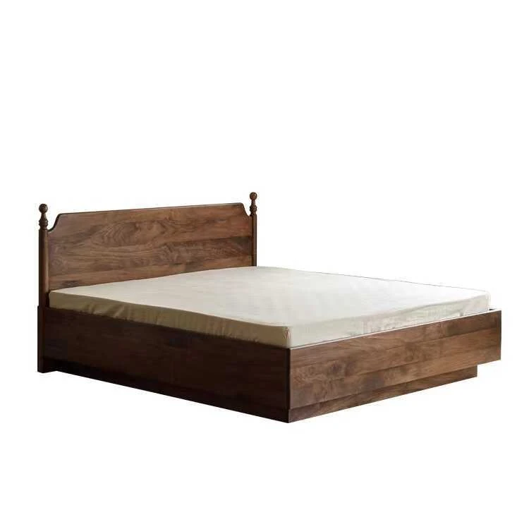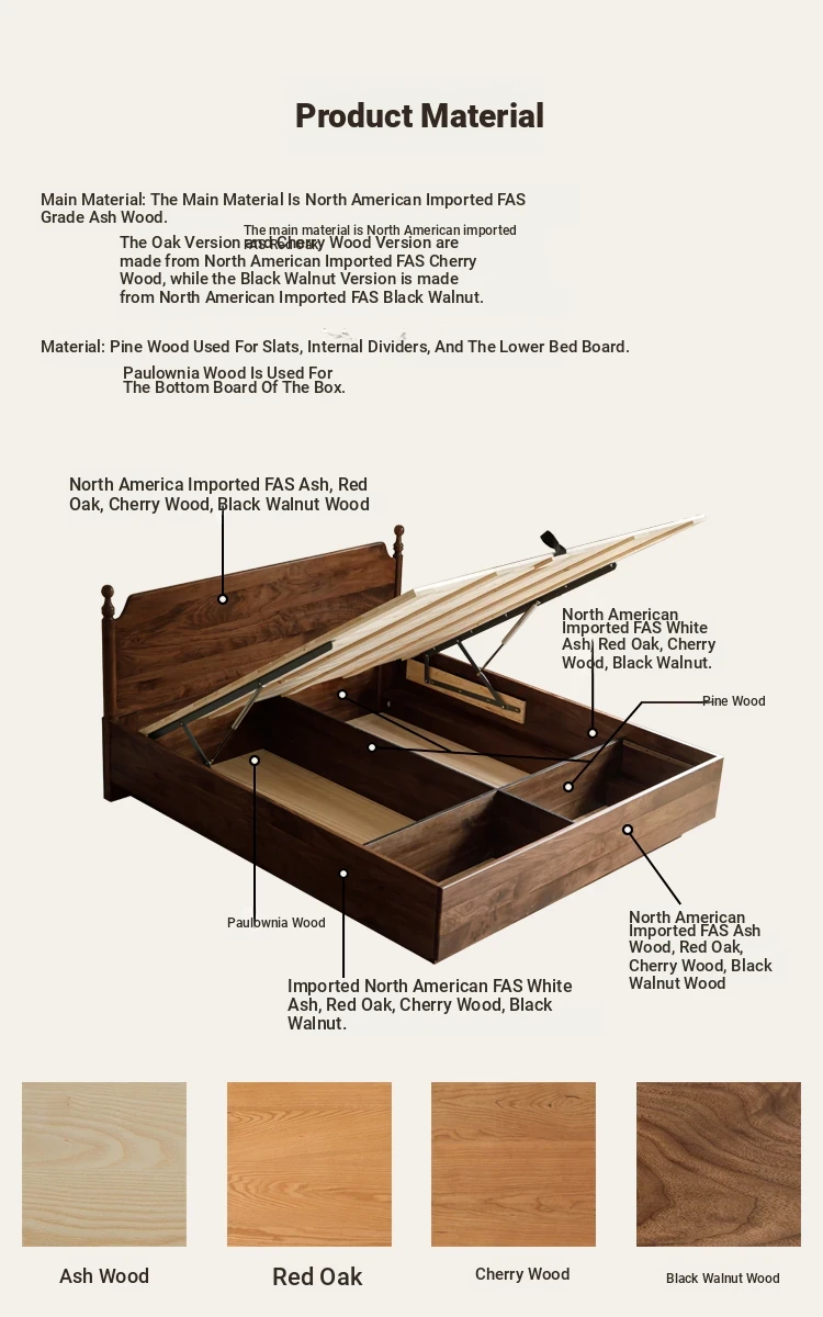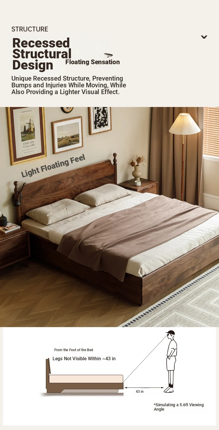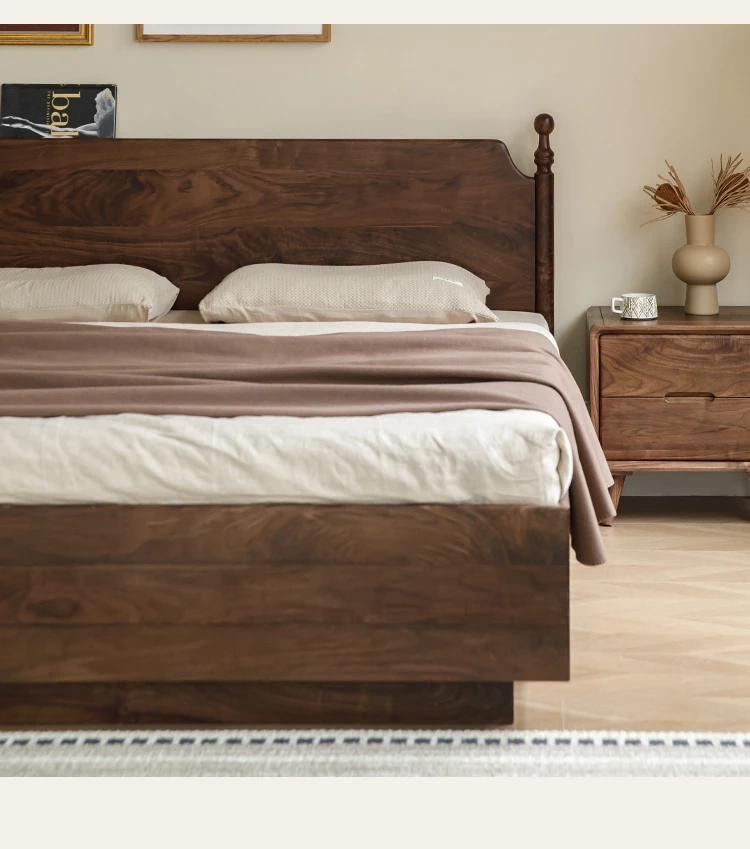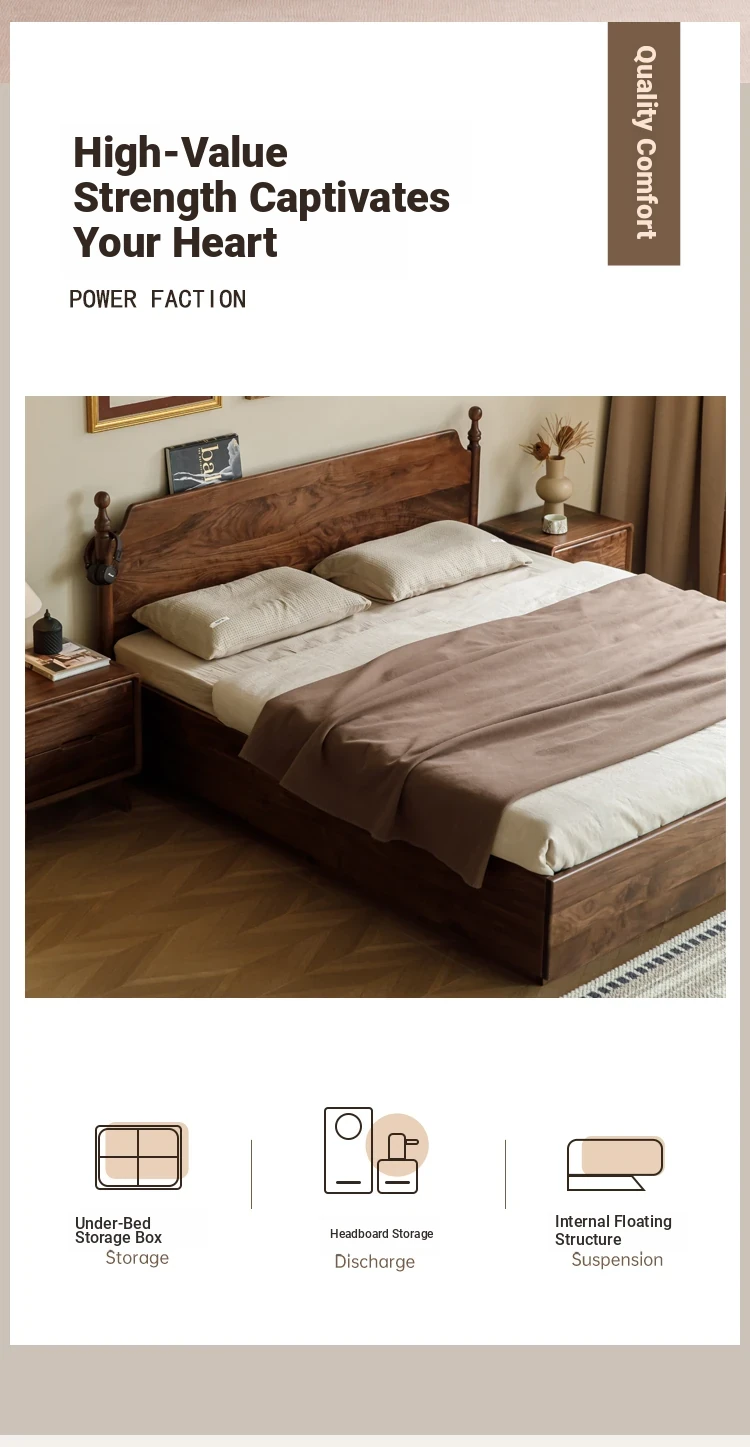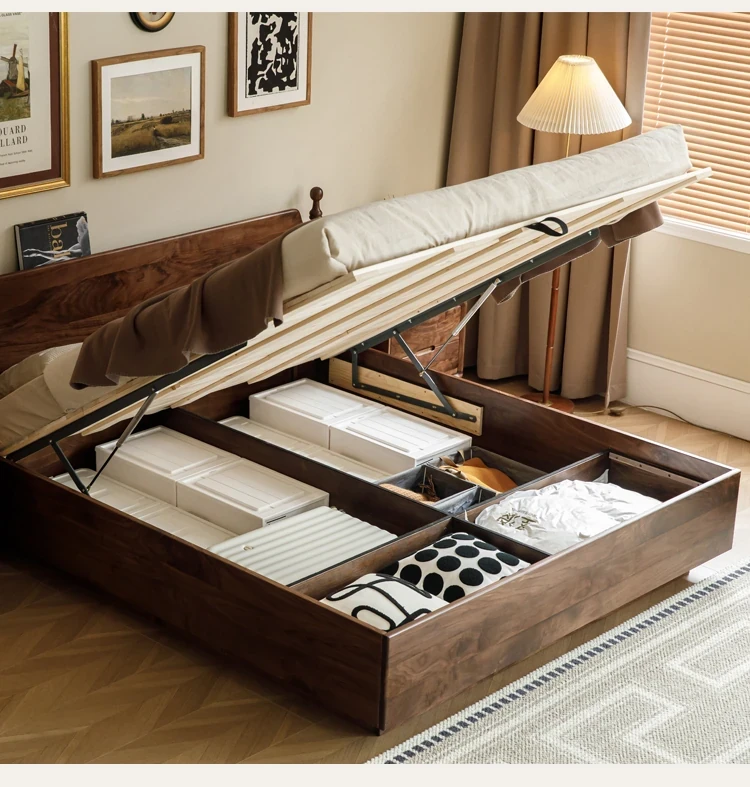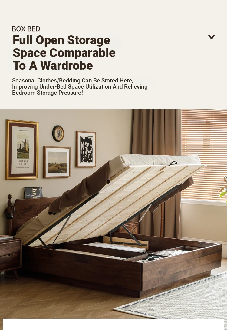 Miaofan "Floating Cloud" North American Black Walnut Solid Wood Storage Bed – Stylish and Functional Bedroom Solution with Gas Lift Mechanism, Available in 1.5m and 1.8m Sizes. Ideal for Modern Living Spaces!