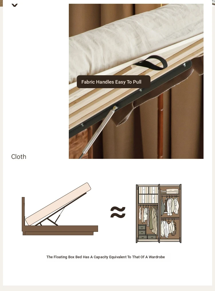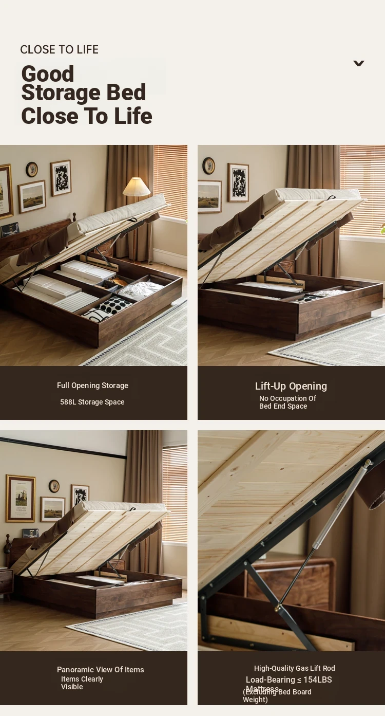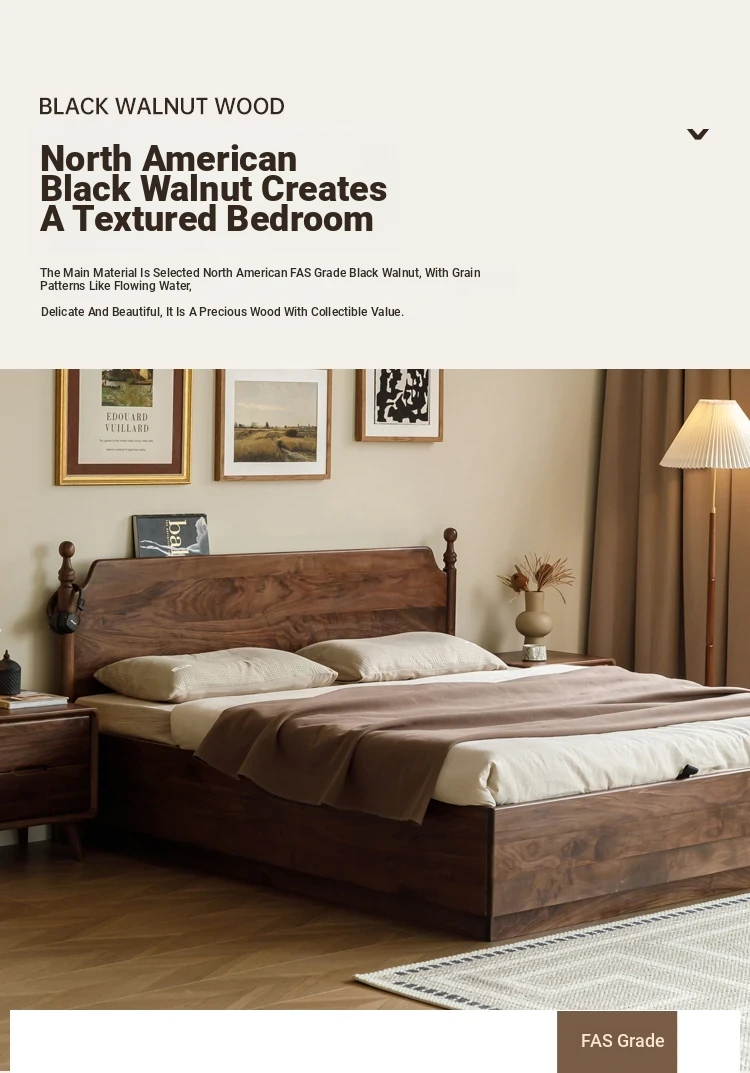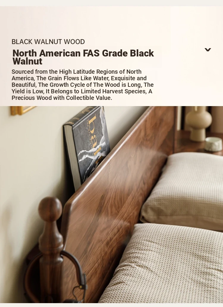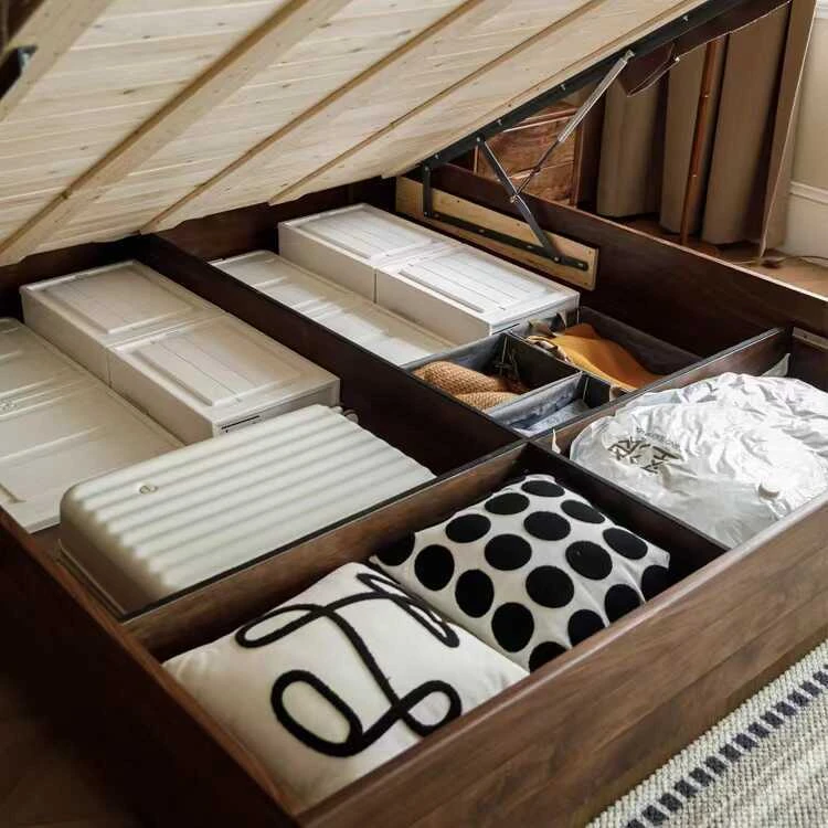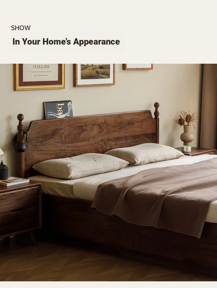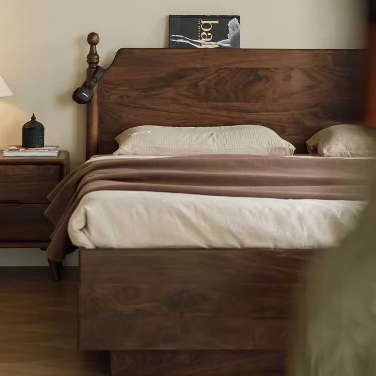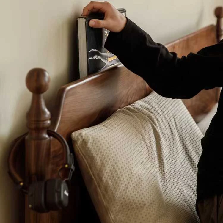 Miaofan "Floating Cloud" North American Black Walnut Solid Wood Storage Bed – Stylish and Functional Bedroom Solution with Gas Lift Mechanism, Available in 1.5m and 1.8m Sizes. Ideal for Modern Living Spaces!
