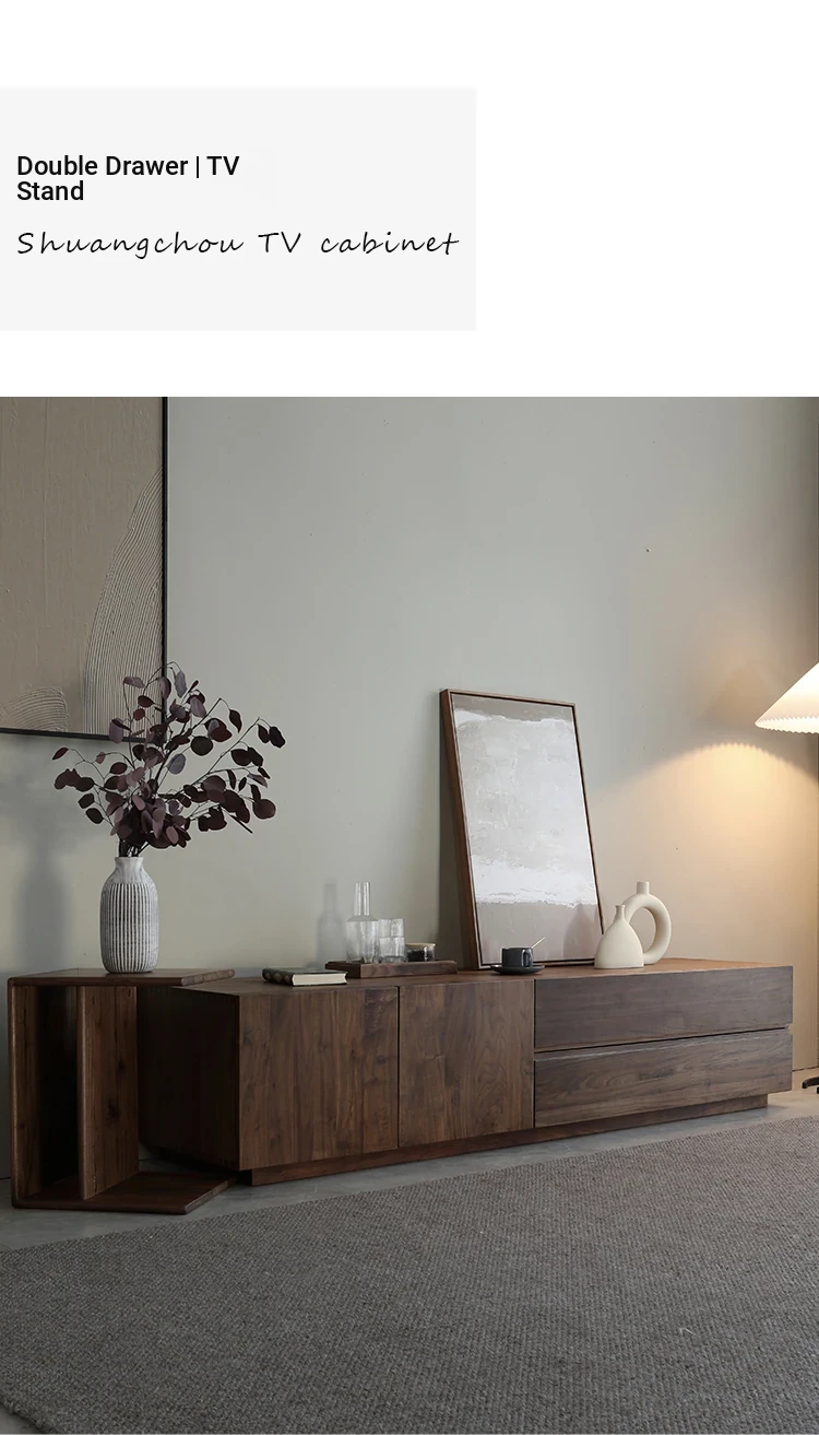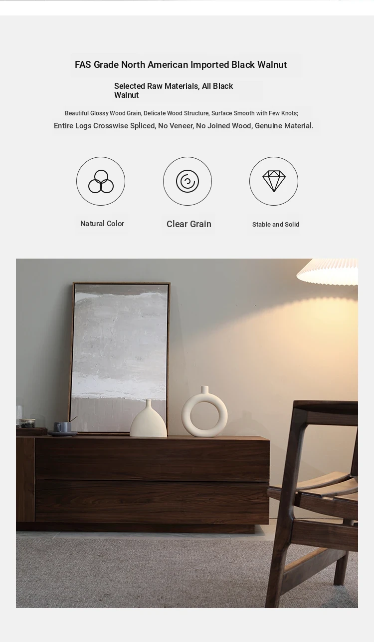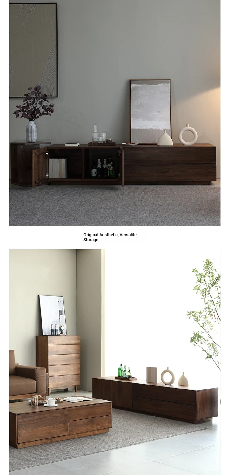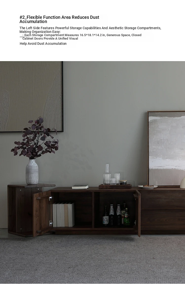Miaofan "Starry Shine" Modern Minimalist Solid Black Walnut TV Stand - Stylish Floor Storage Cabinet for Your Living Room