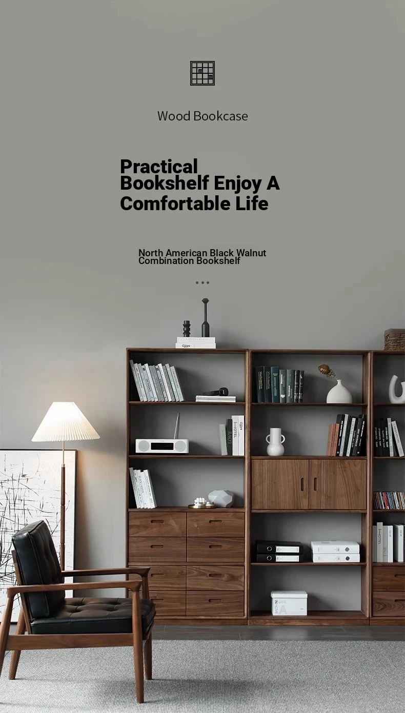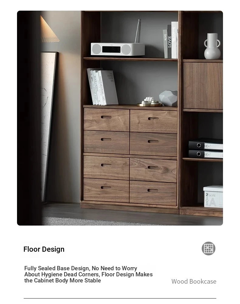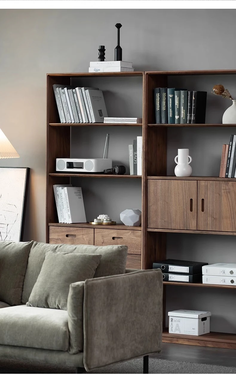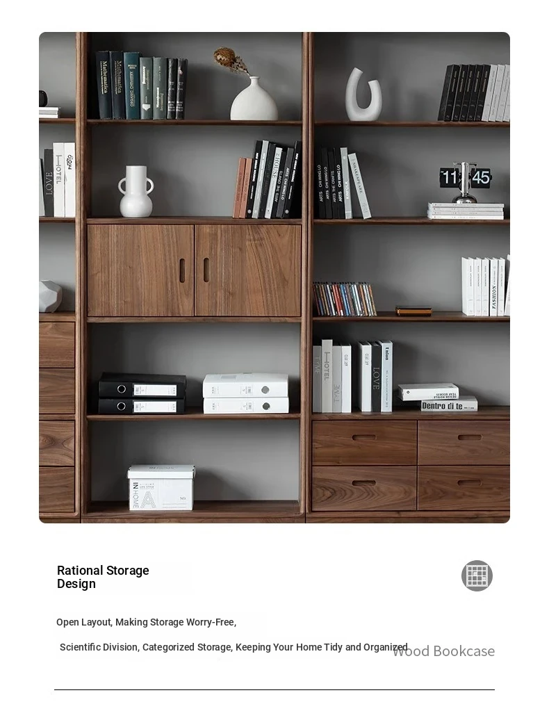 Miaofan "Wisdom Pavilion" Modern Minimalist North American Black Walnut Bookshelf Storage Cabinet Display Unit