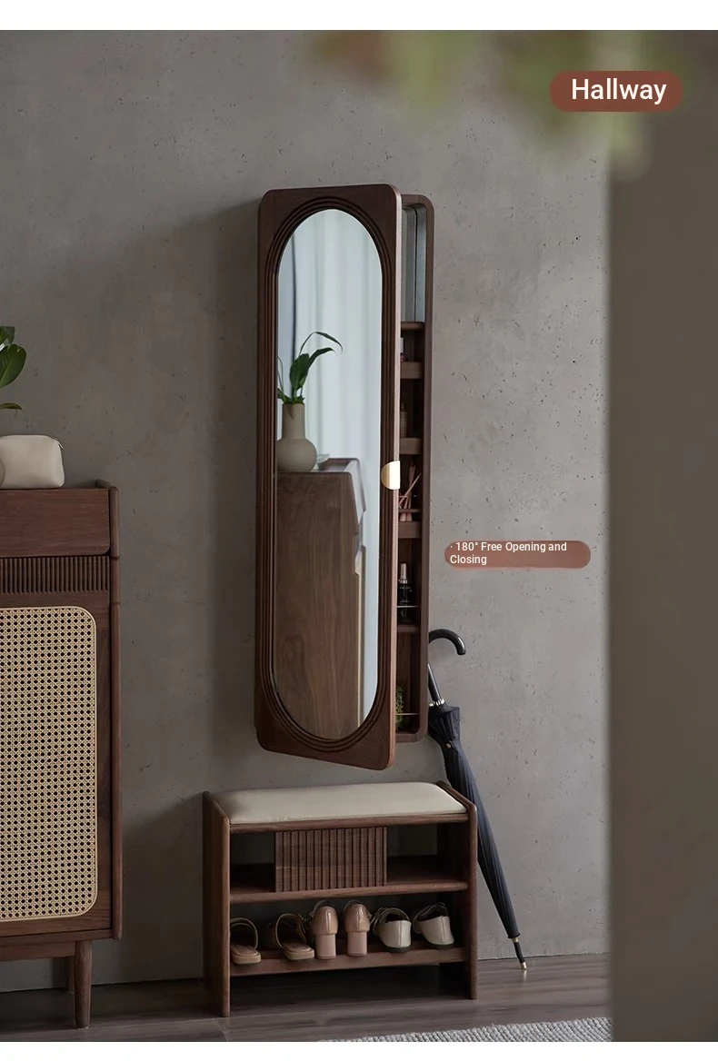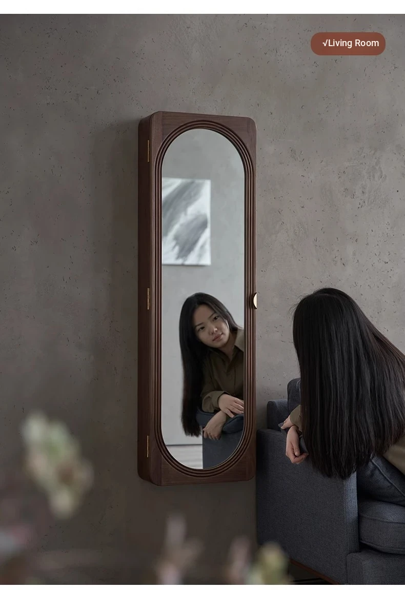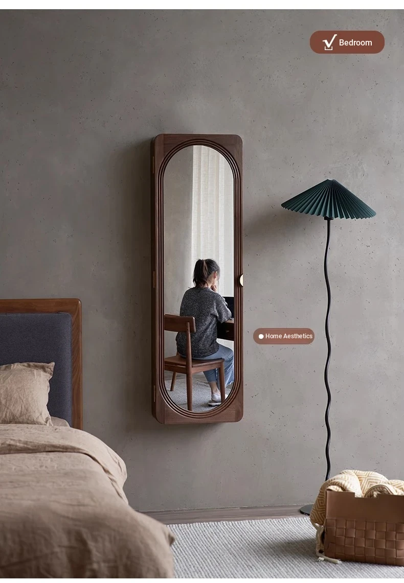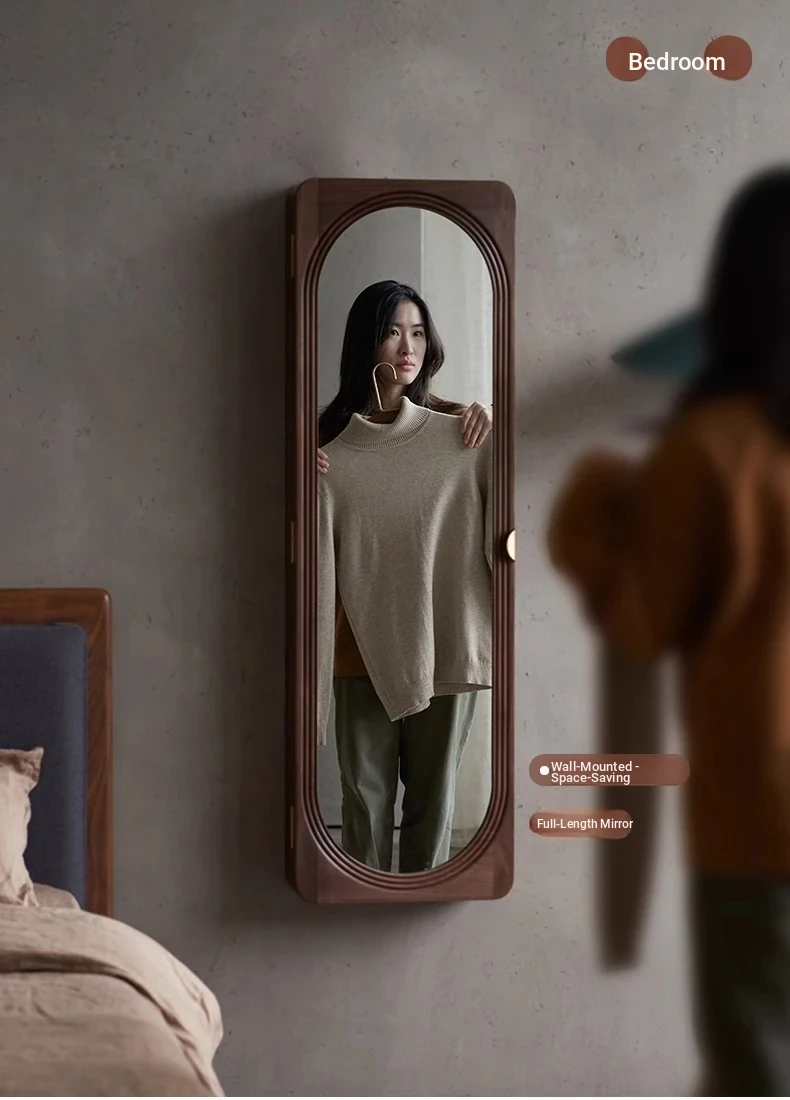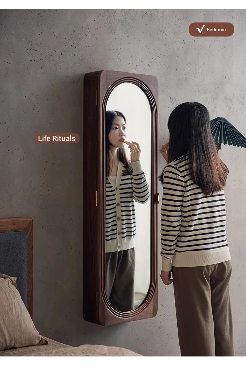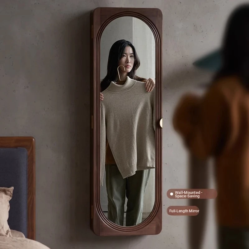 MiaoFan "YueRong Mirror" Full-Length Wall-Mounted Black Walnut Mirror – Stylish Dressing & Makeup Mirror for Home Use, Perfect for Any Space