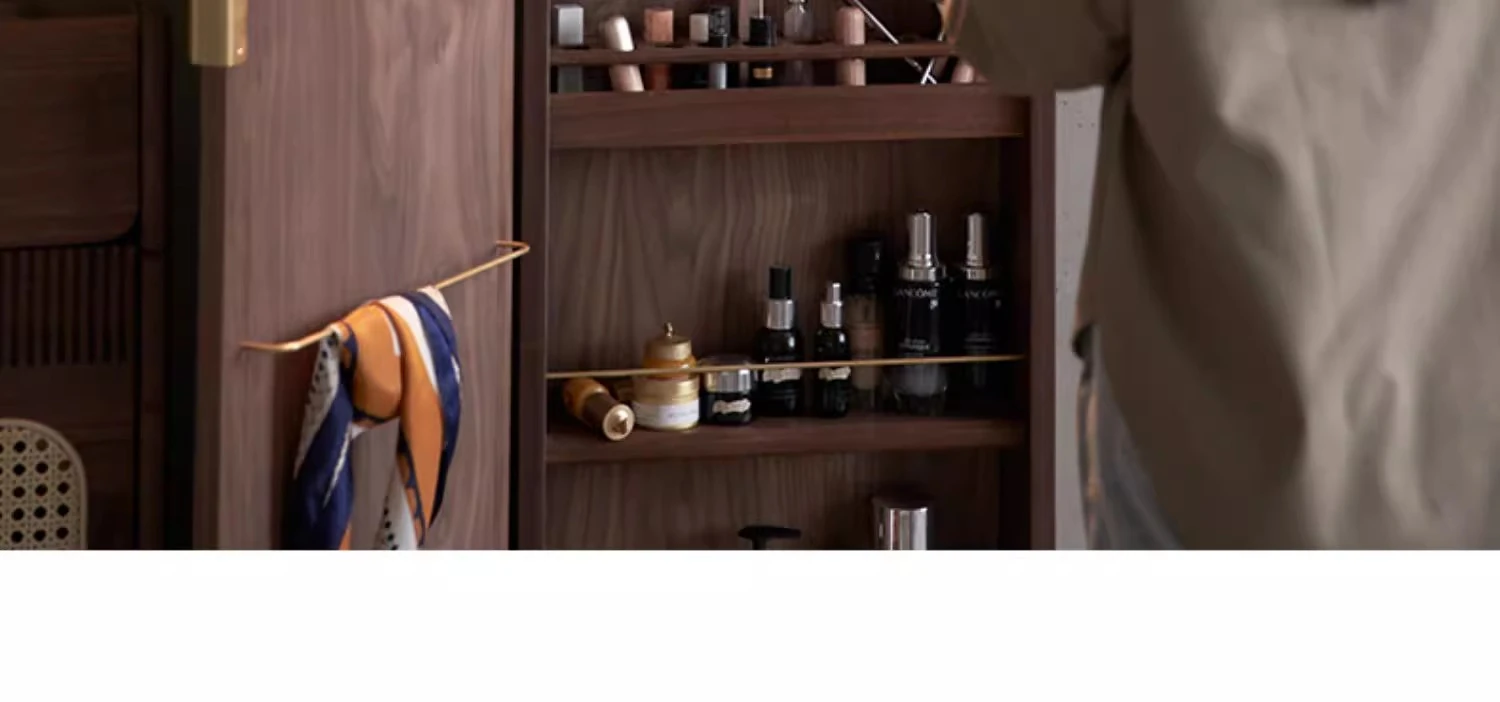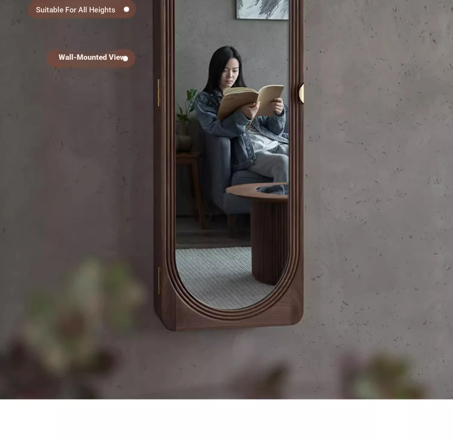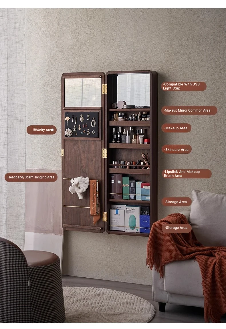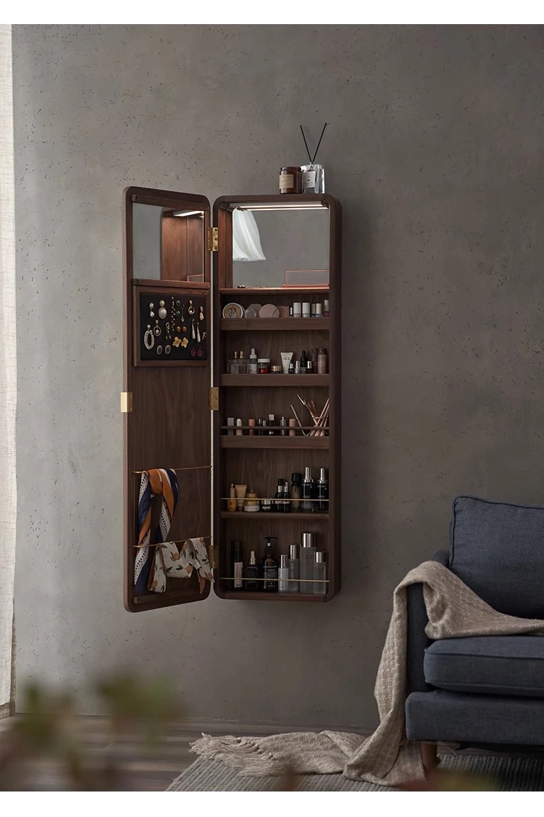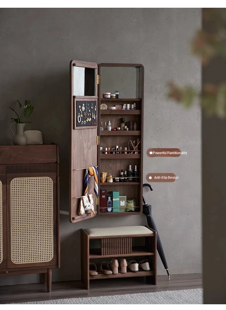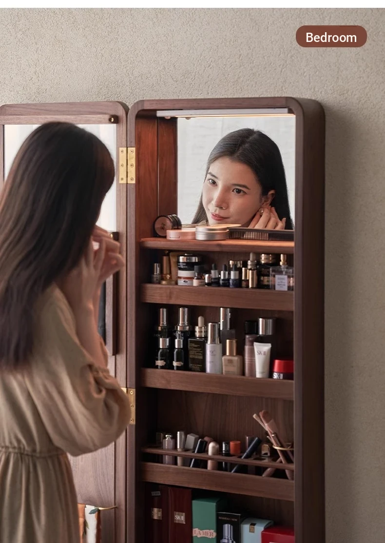 MiaoFan "YueRong Mirror" Full-Length Wall-Mounted Black Walnut Mirror – Stylish Dressing & Makeup Mirror for Home Use, Perfect for Any Space