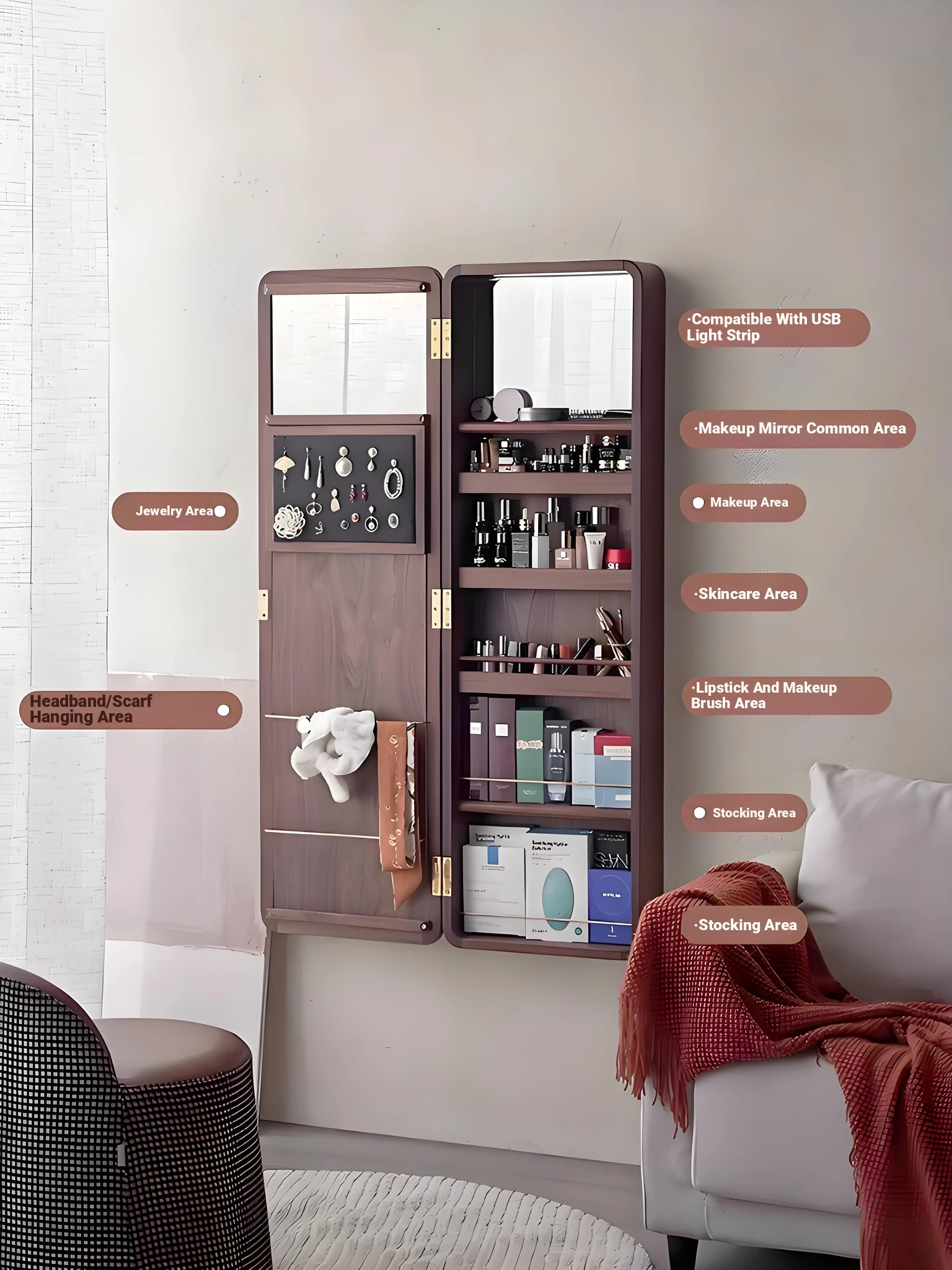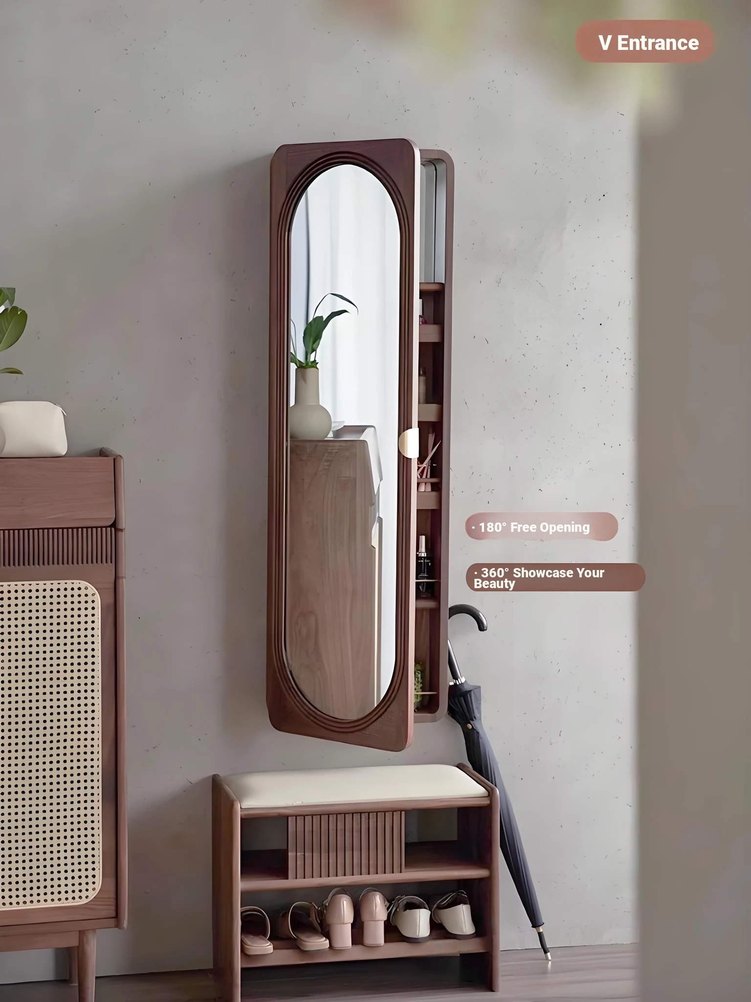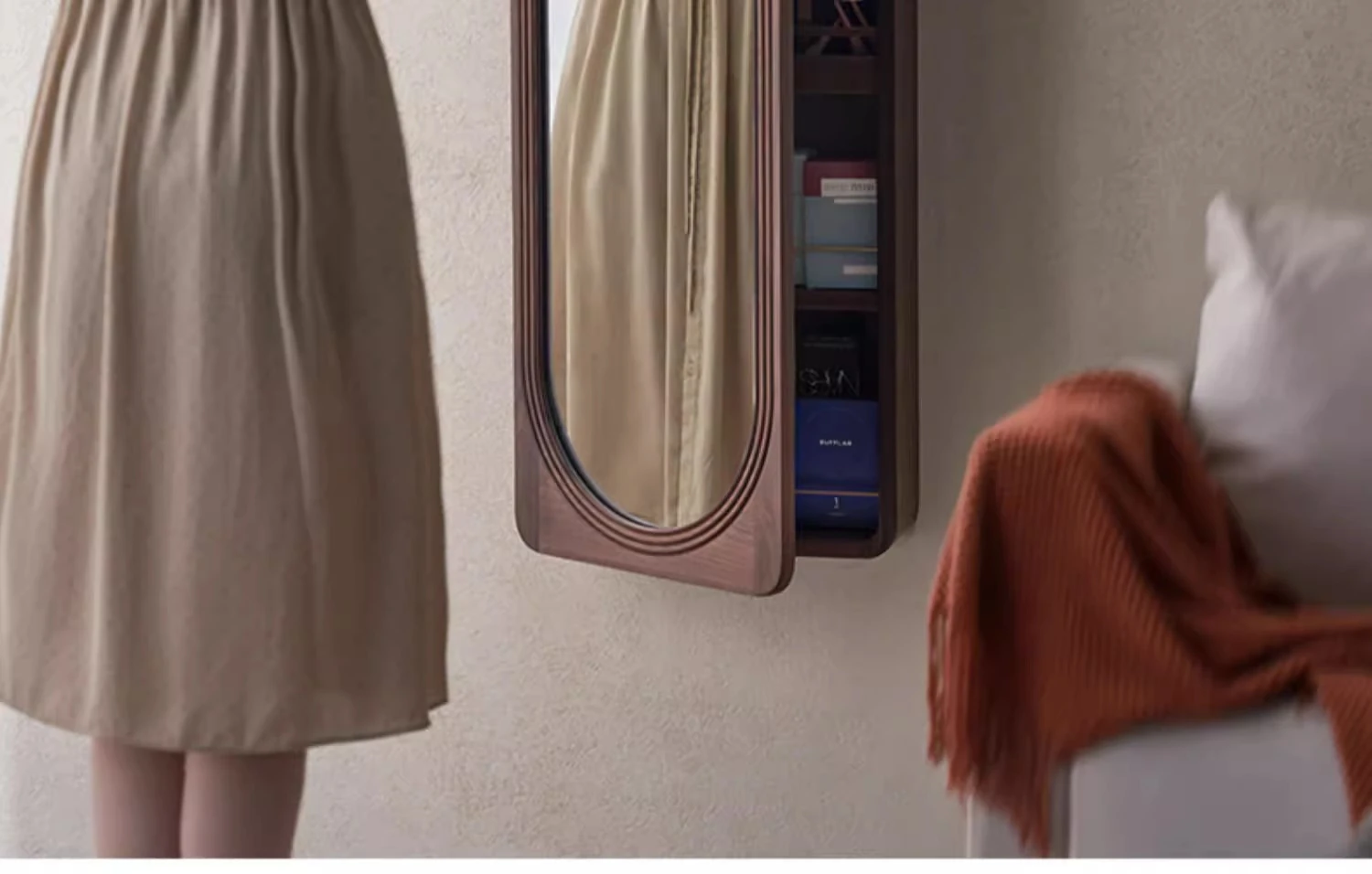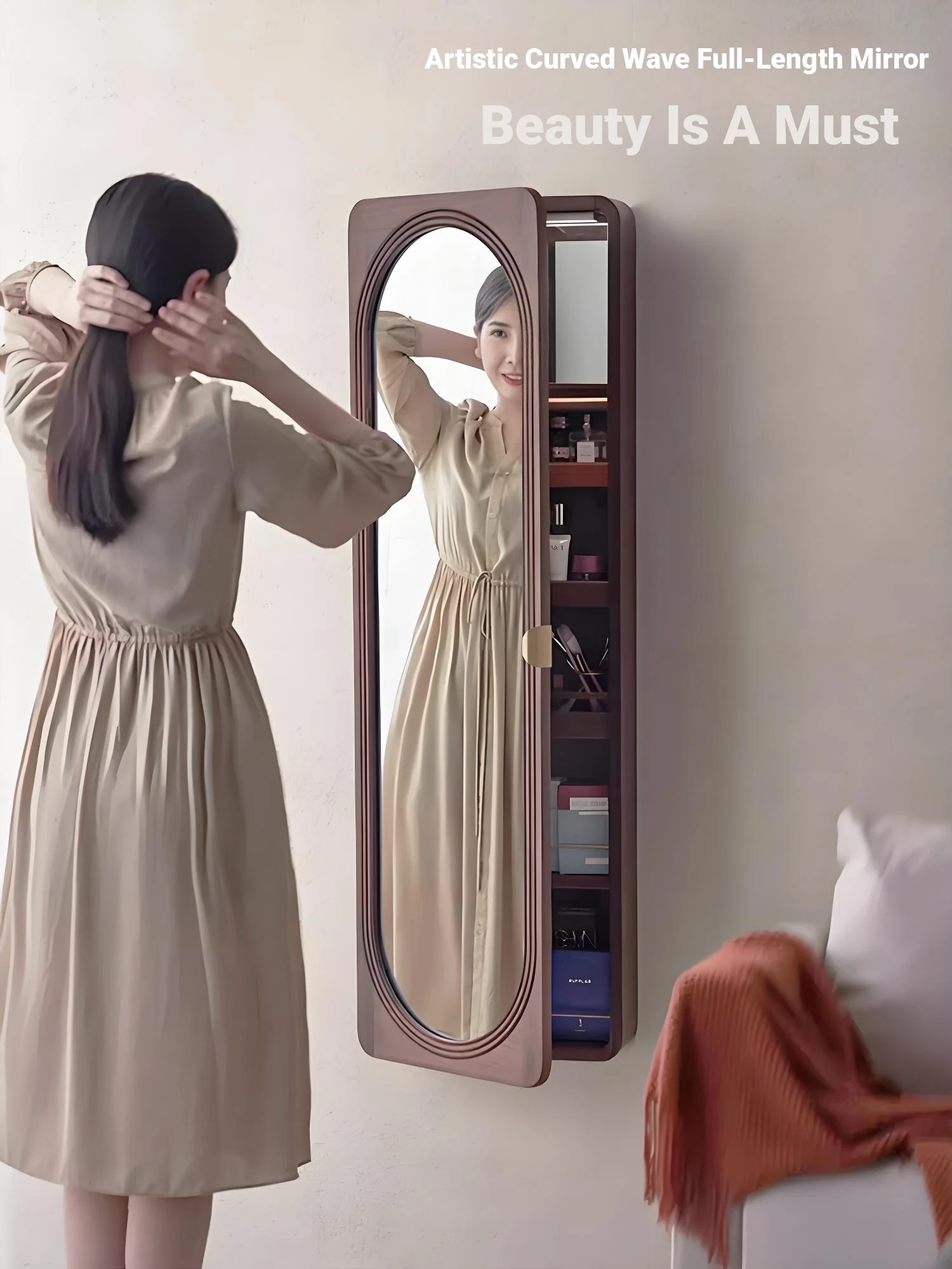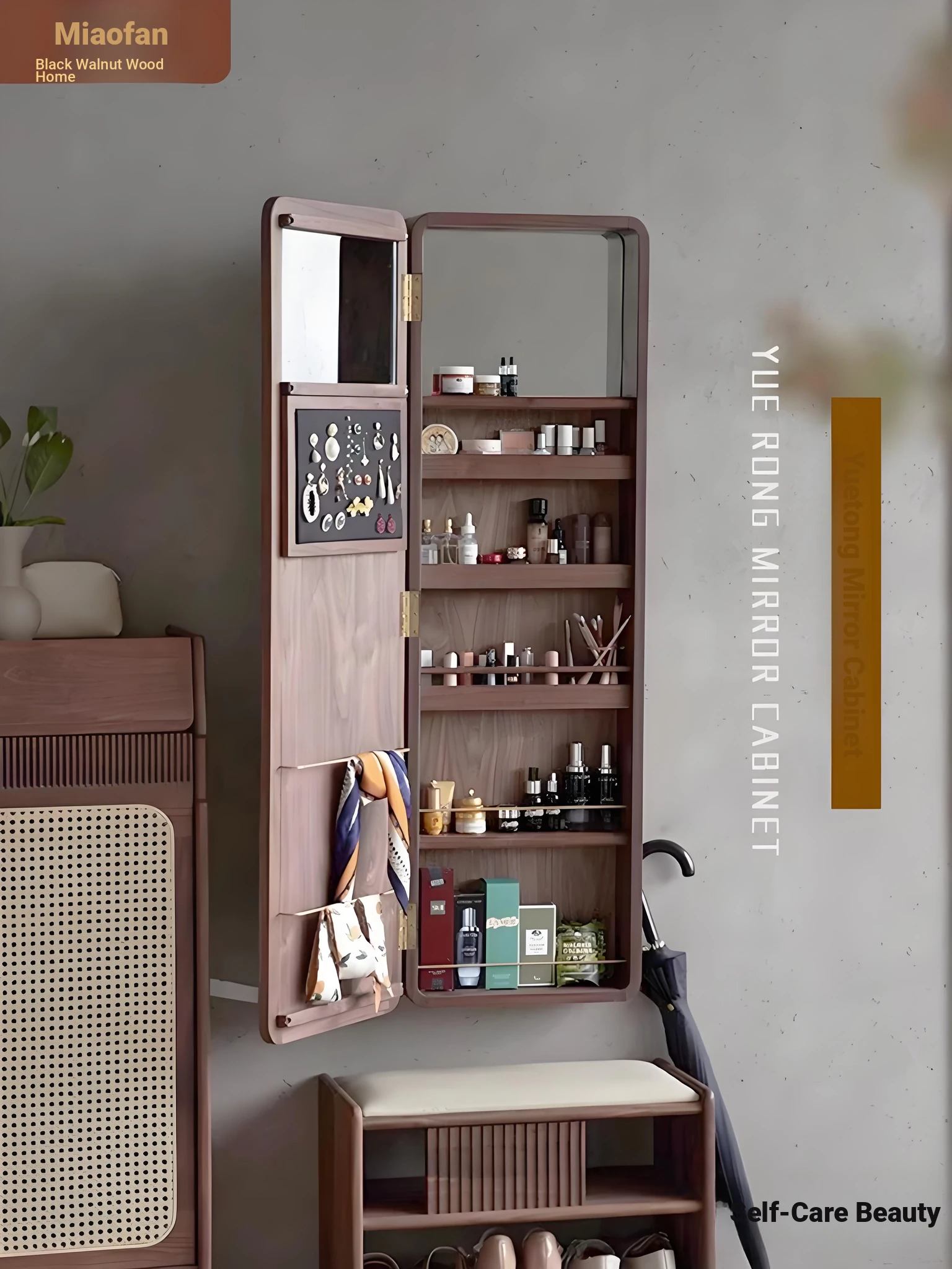 MiaoFan "YueRong Mirror" Full-Length Wall-Mounted Black Walnut Mirror – Stylish Dressing & Makeup Mirror for Home Use, Perfect for Any Space