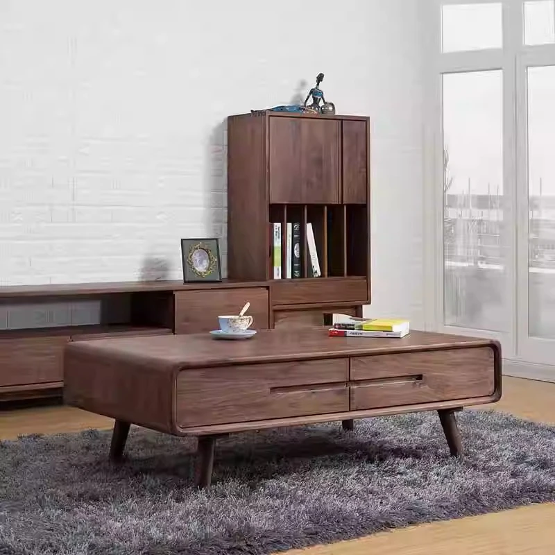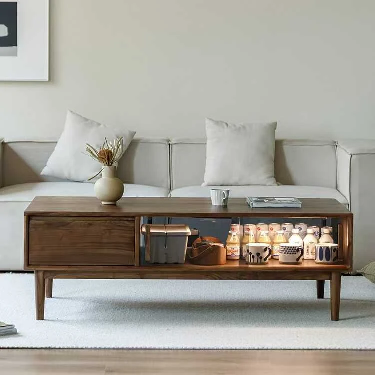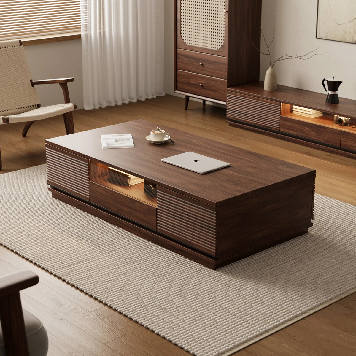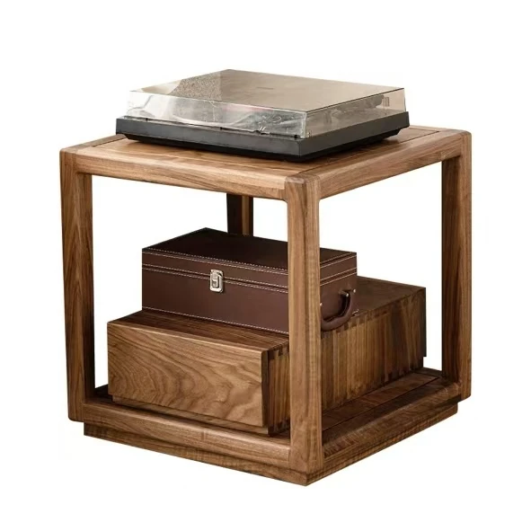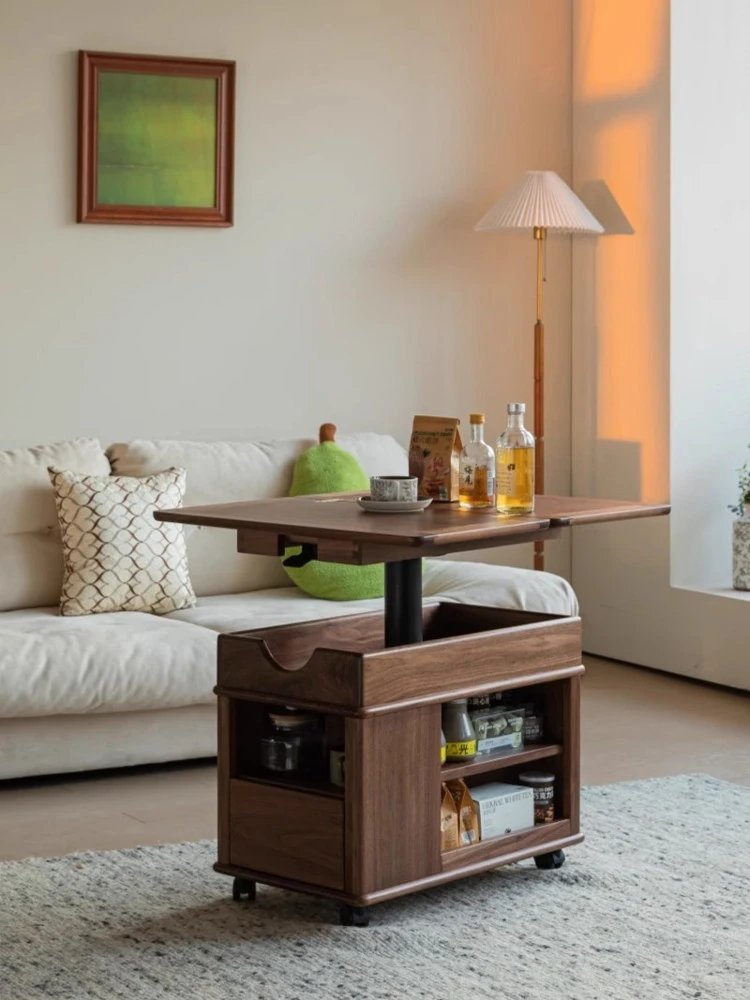 妙梵「竹韵茶轩」北米産ブラックウォールナットの多機能モバイルソファサイドテーブル&電気ケトル一体型 - おしゃれで便利なティータイムをあなたに!