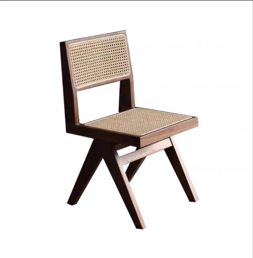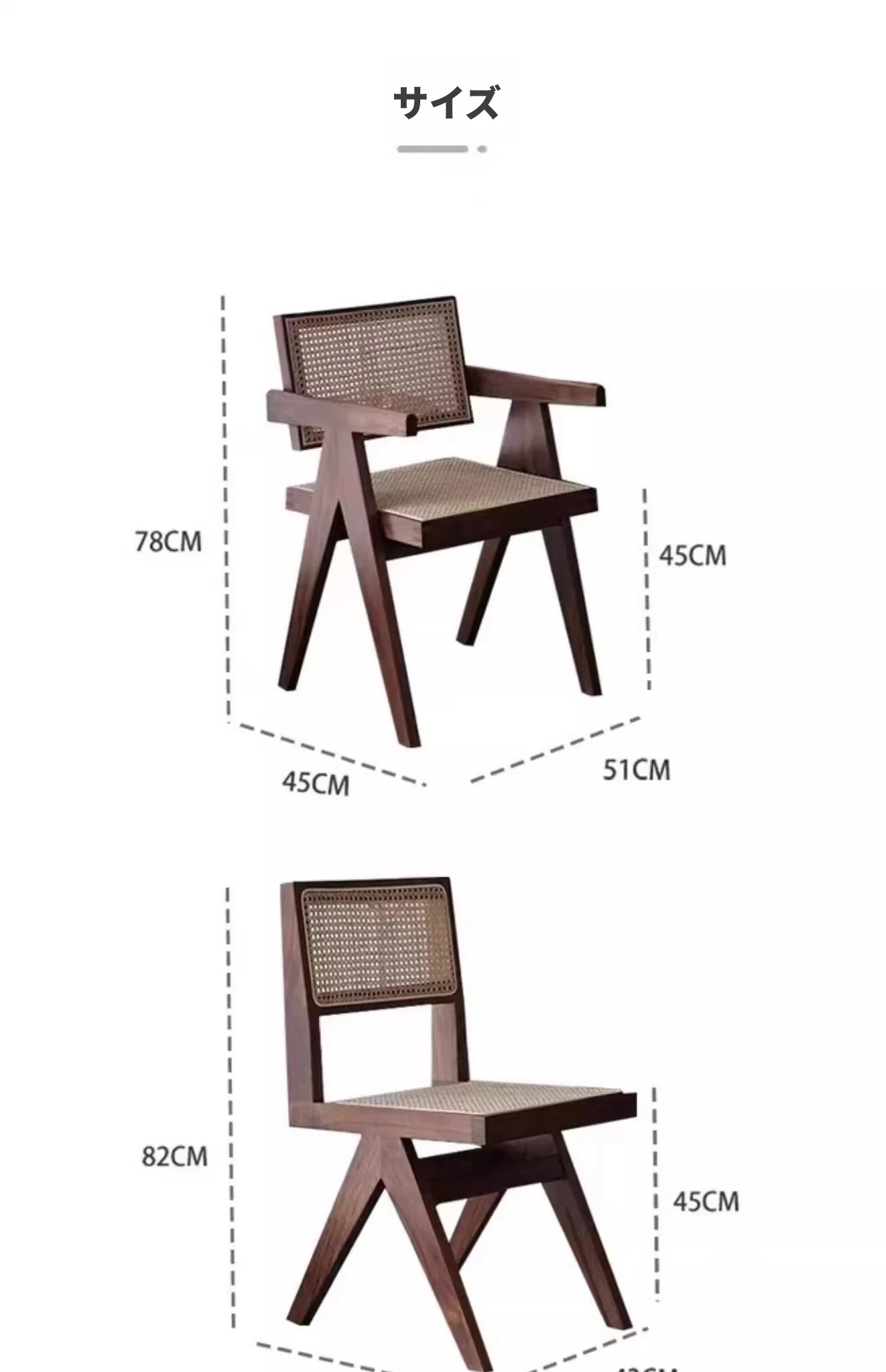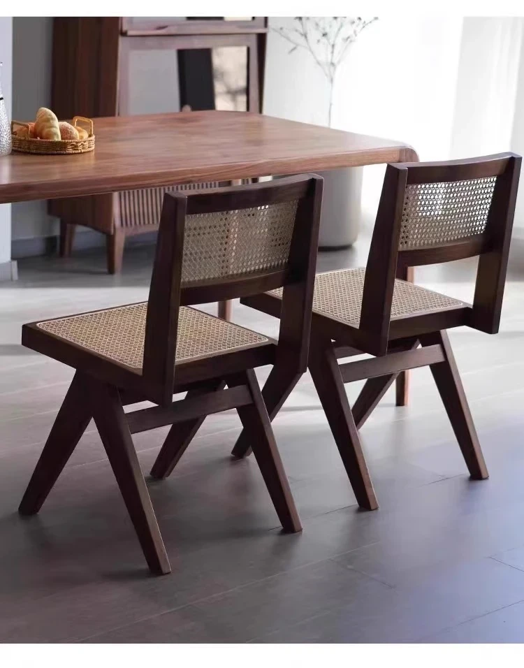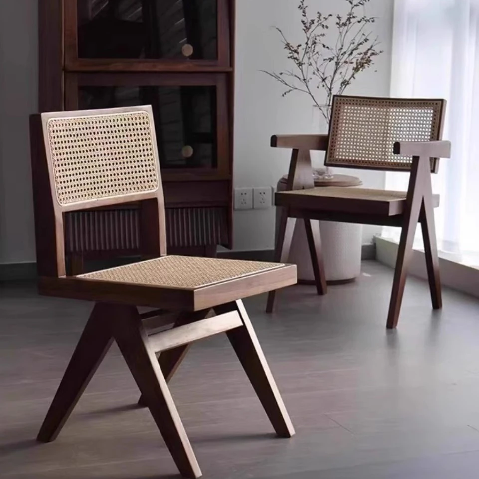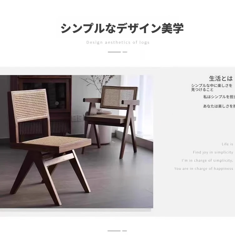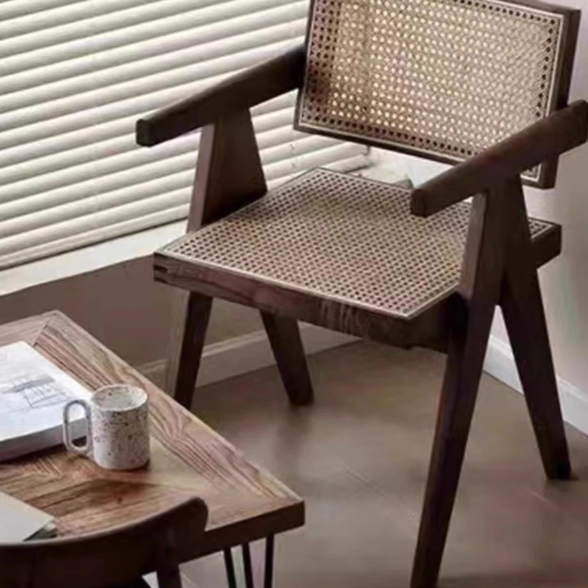 妙梵「チャンディガールチェア」北米産ブラックウォールナット無垢材使用、レトロデザインの籐編み背もたれ付きアームチェア - 快適さとスタイルを兼ね備えた理想の家具。