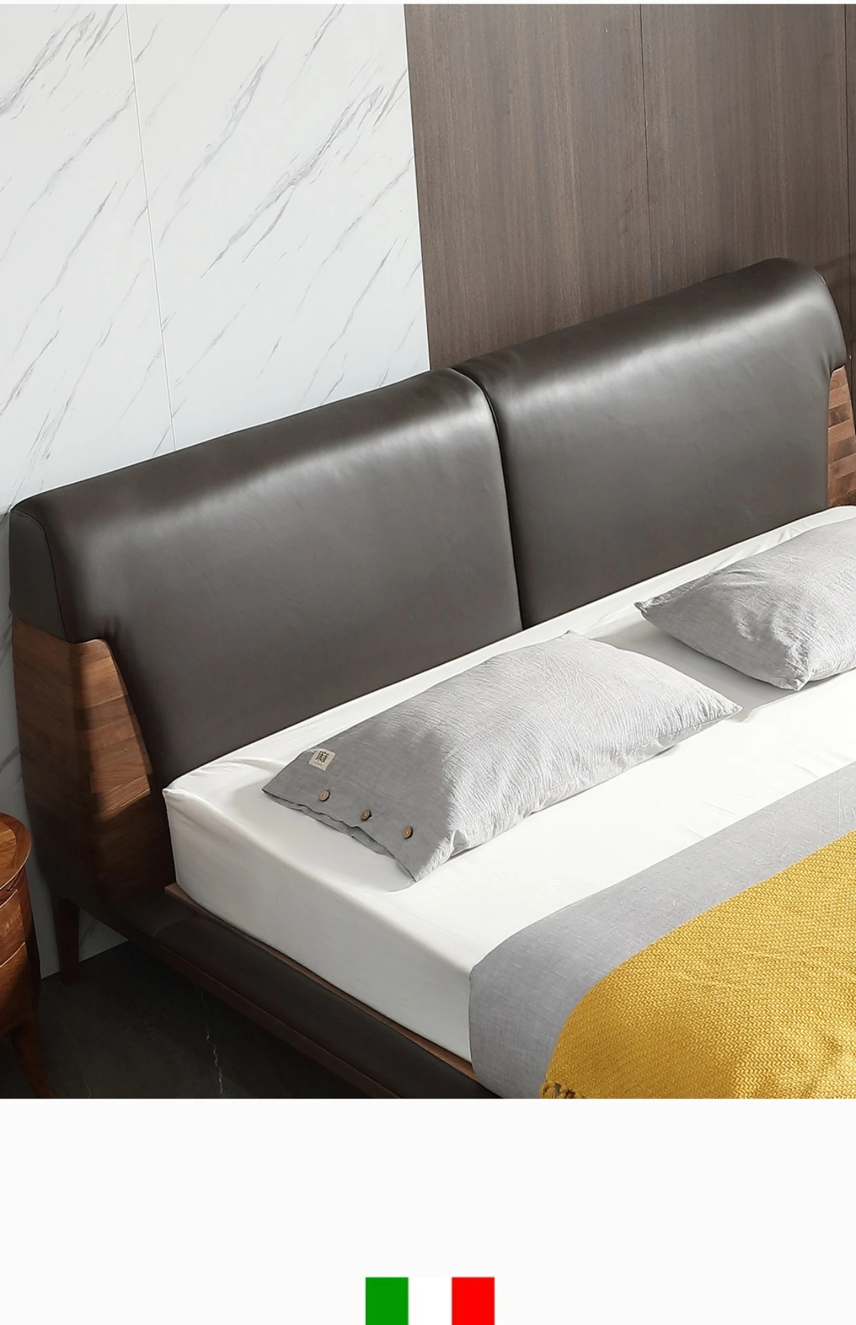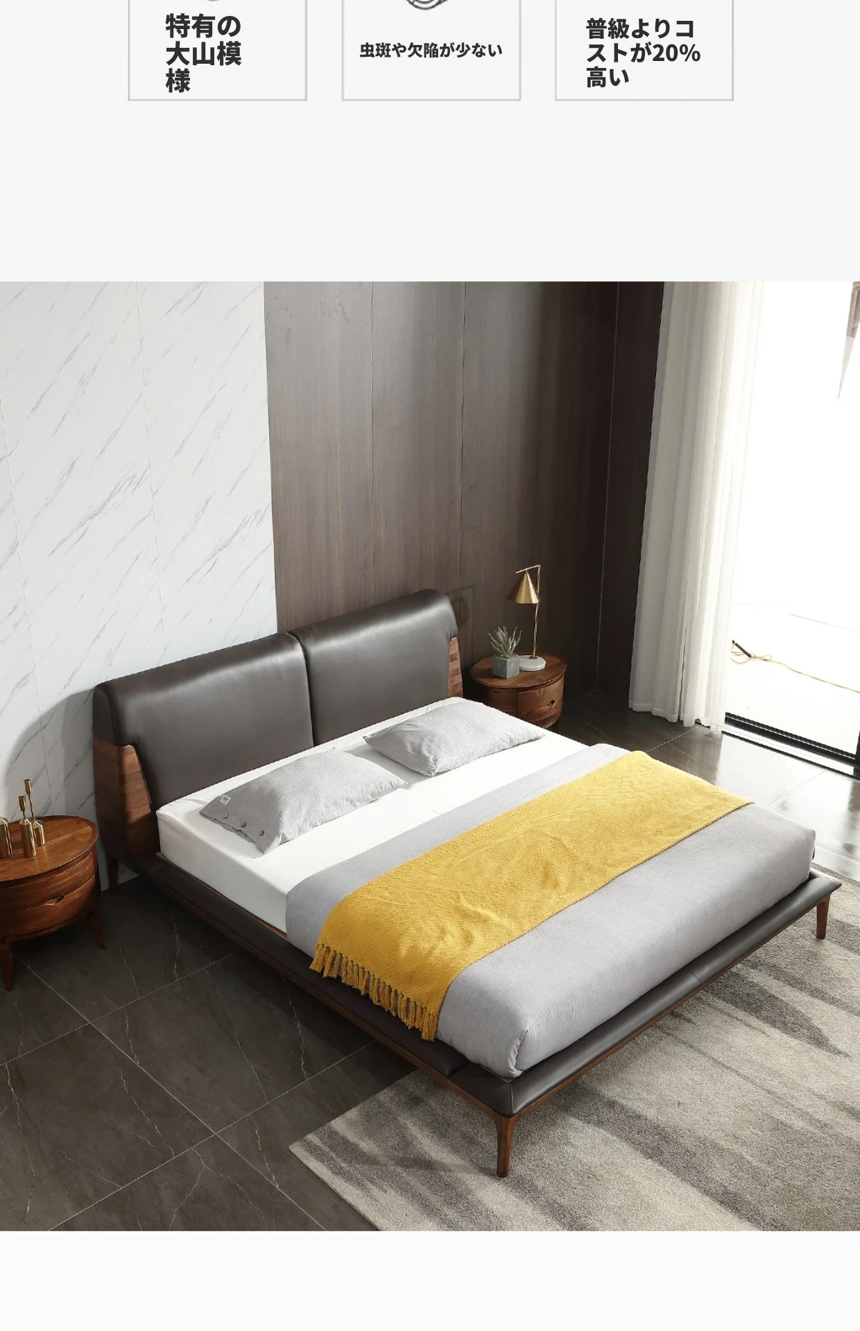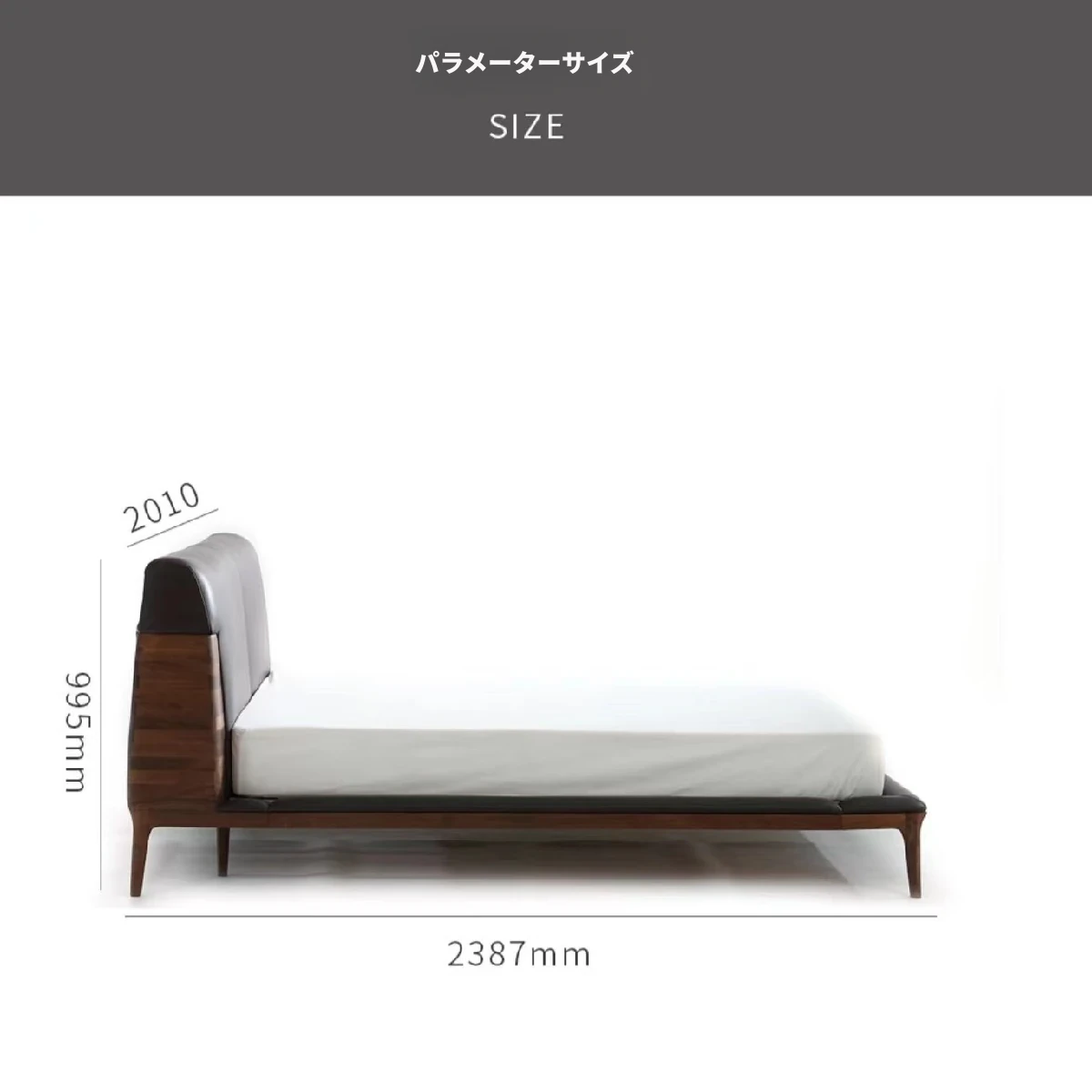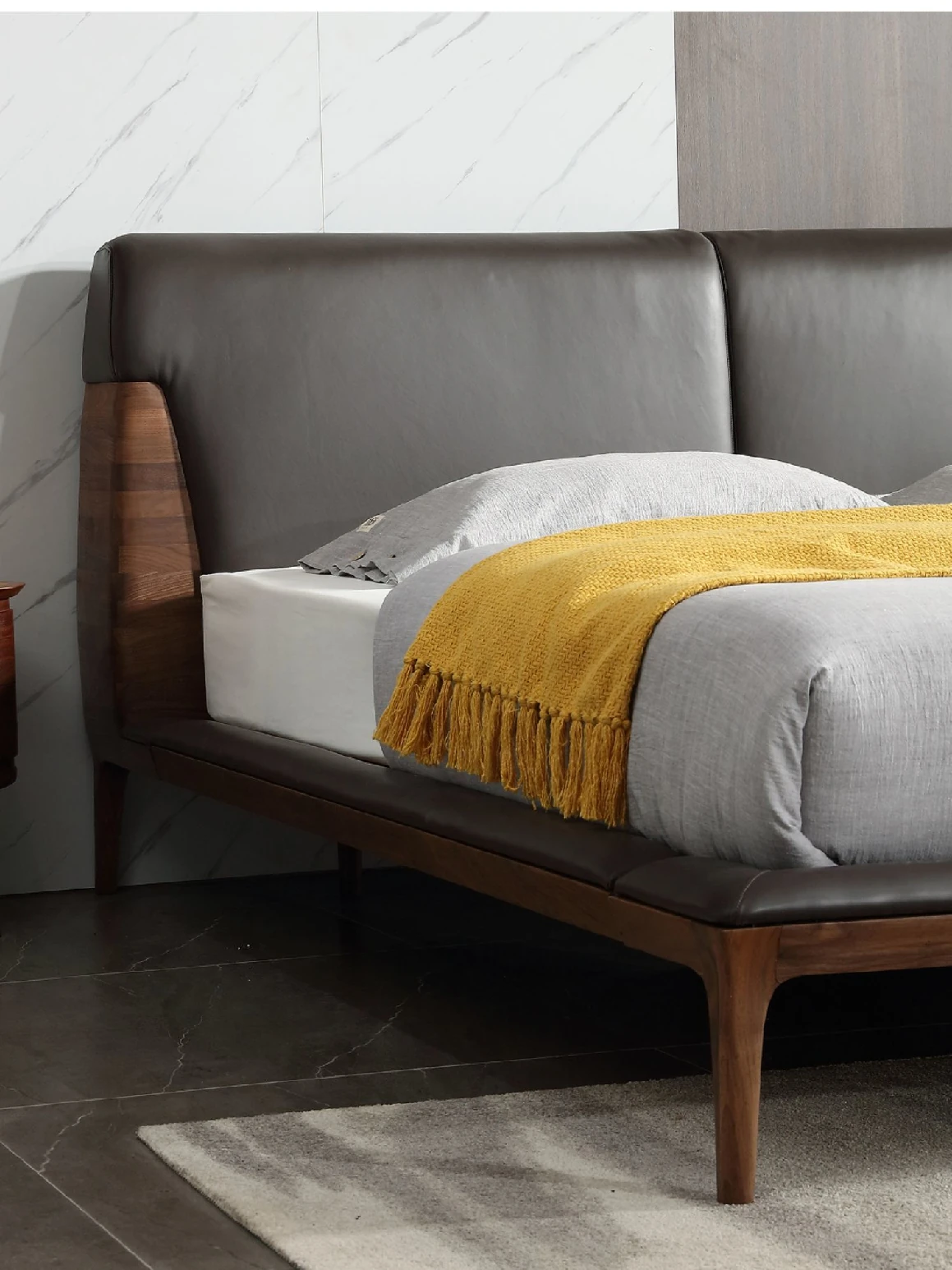 妙梵「卧云床」北米産ブラックウォールナットダブルベッド - 北欧スタイルのイタリアンミニマリズム、贅沢な本革仕様で、あなたの寝室を特別な空間に変えます。