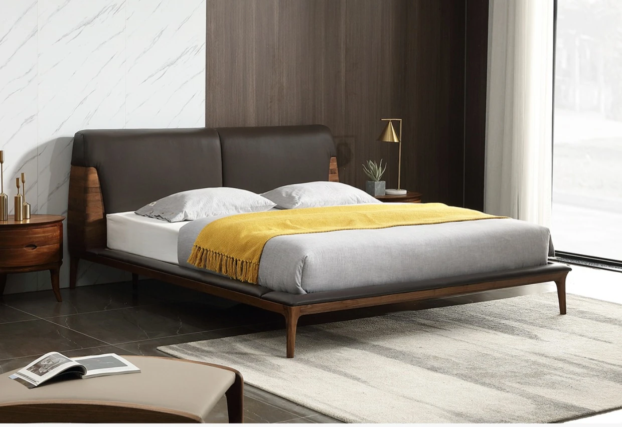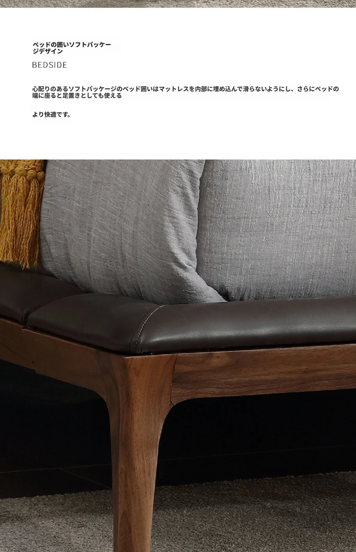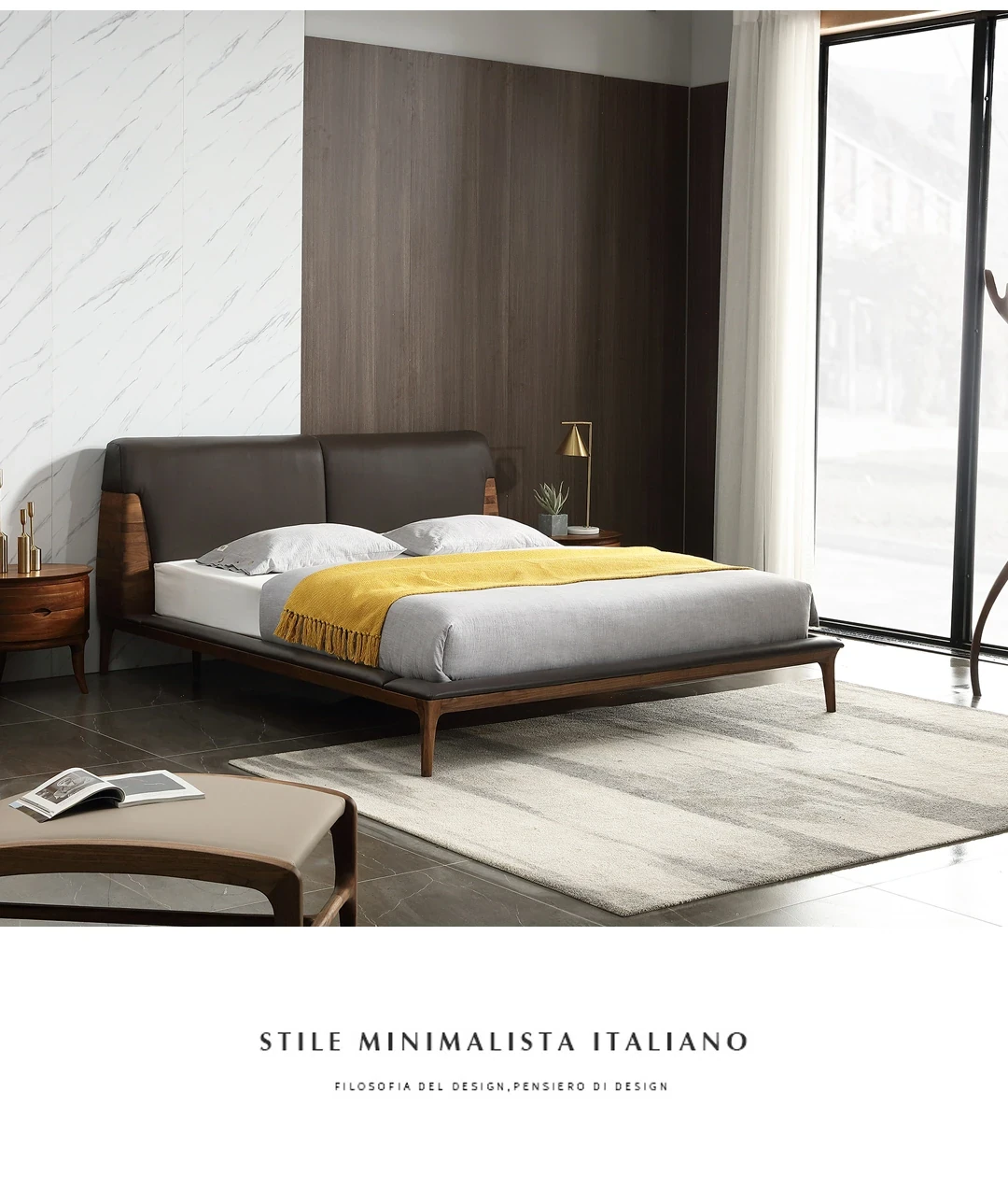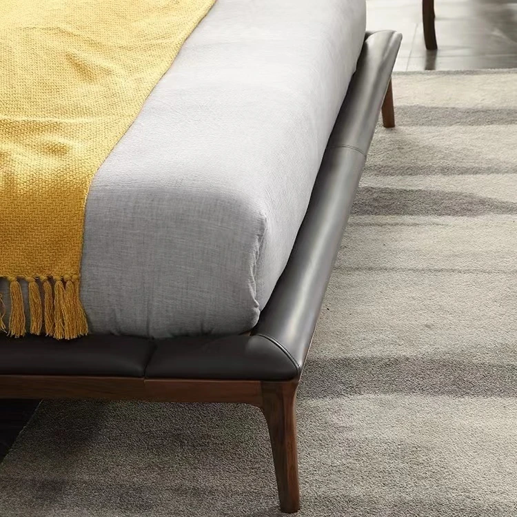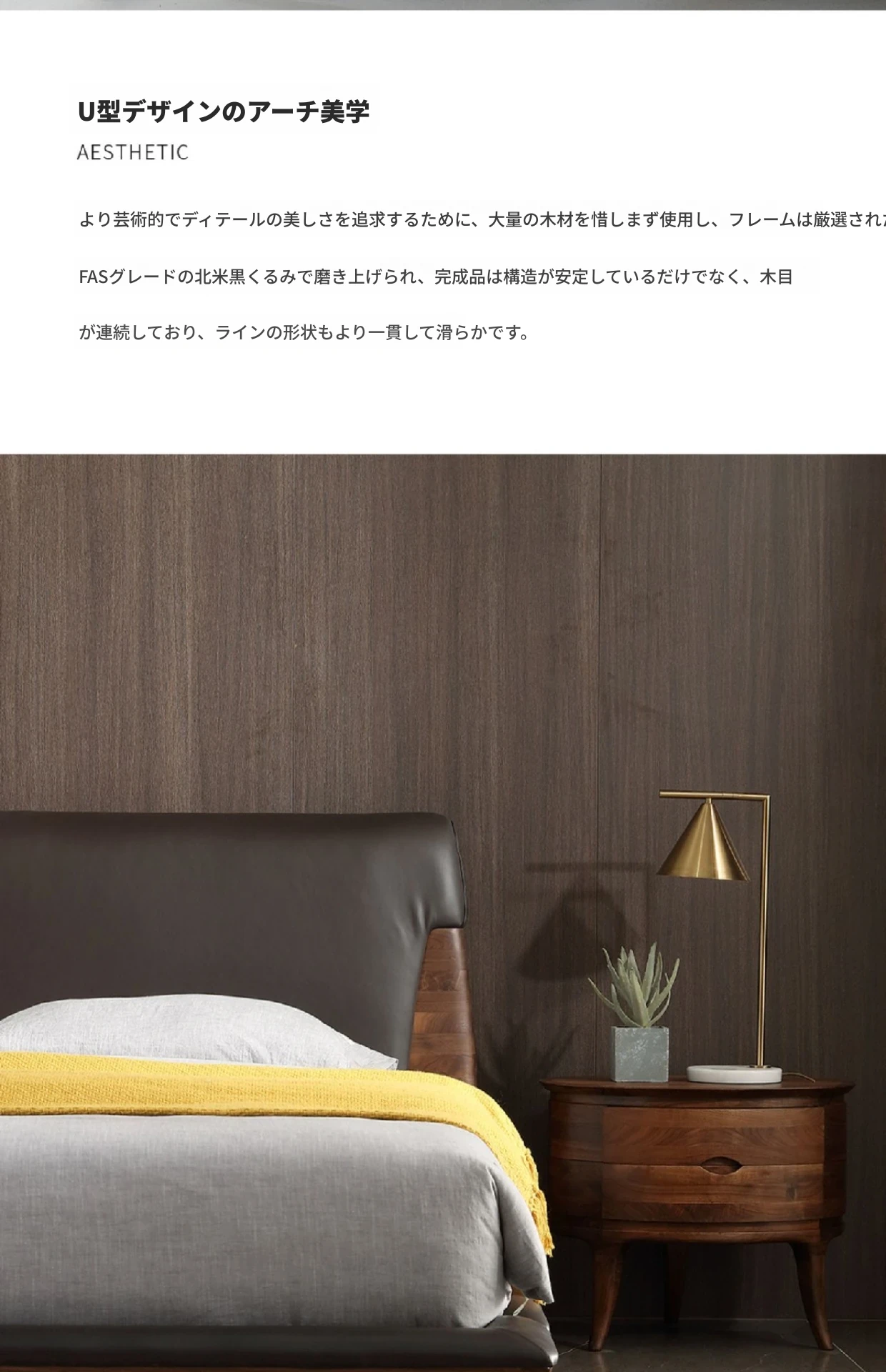 妙梵「卧云床」北米産ブラックウォールナットダブルベッド - 北欧スタイルのイタリアンミニマリズム、贅沢な本革仕様で、あなたの寝室を特別な空間に変えます。
