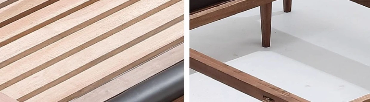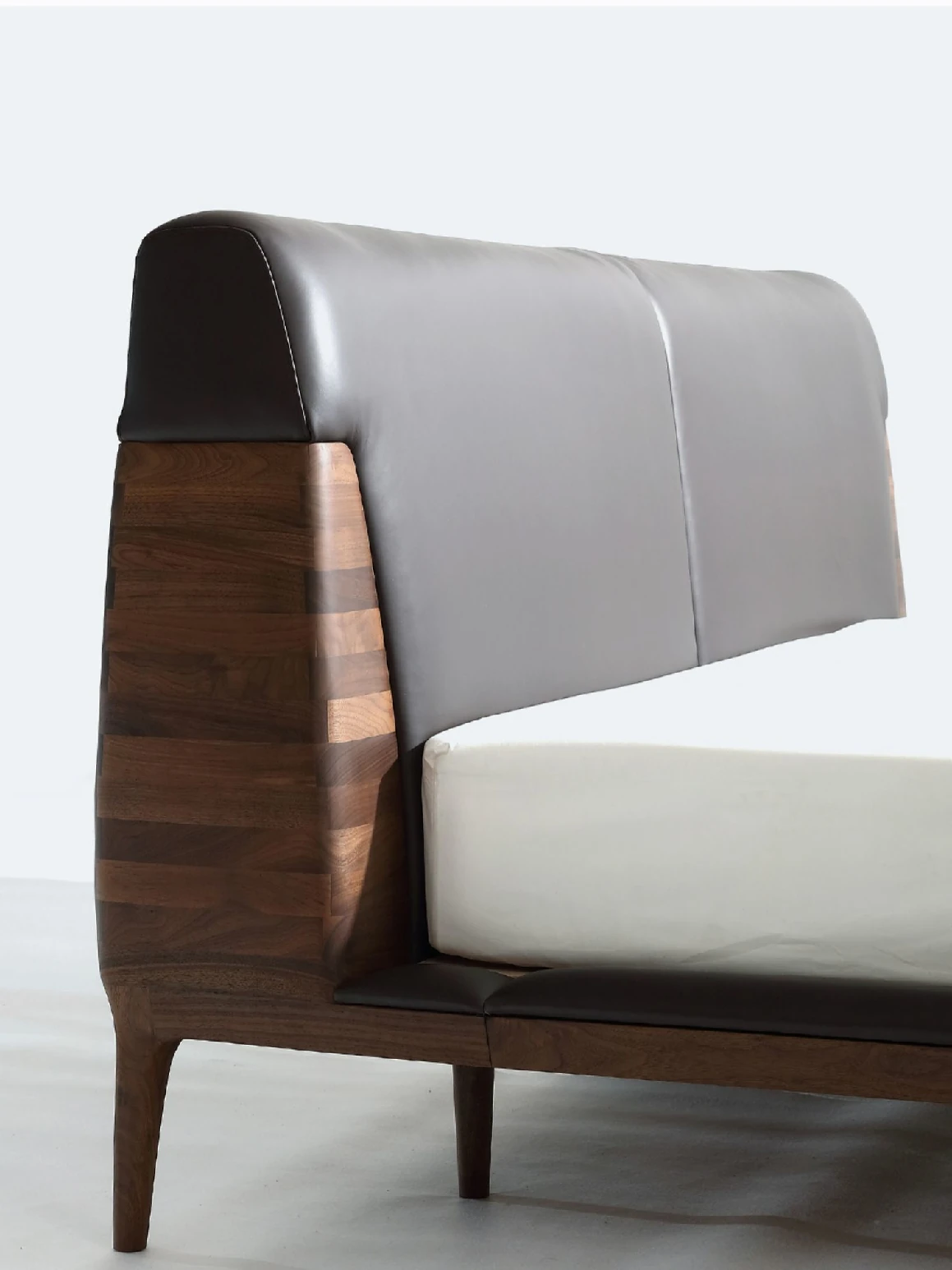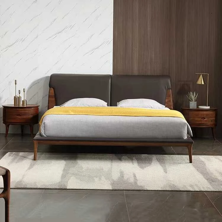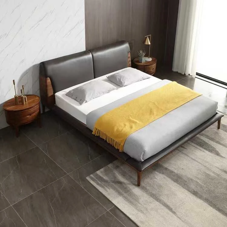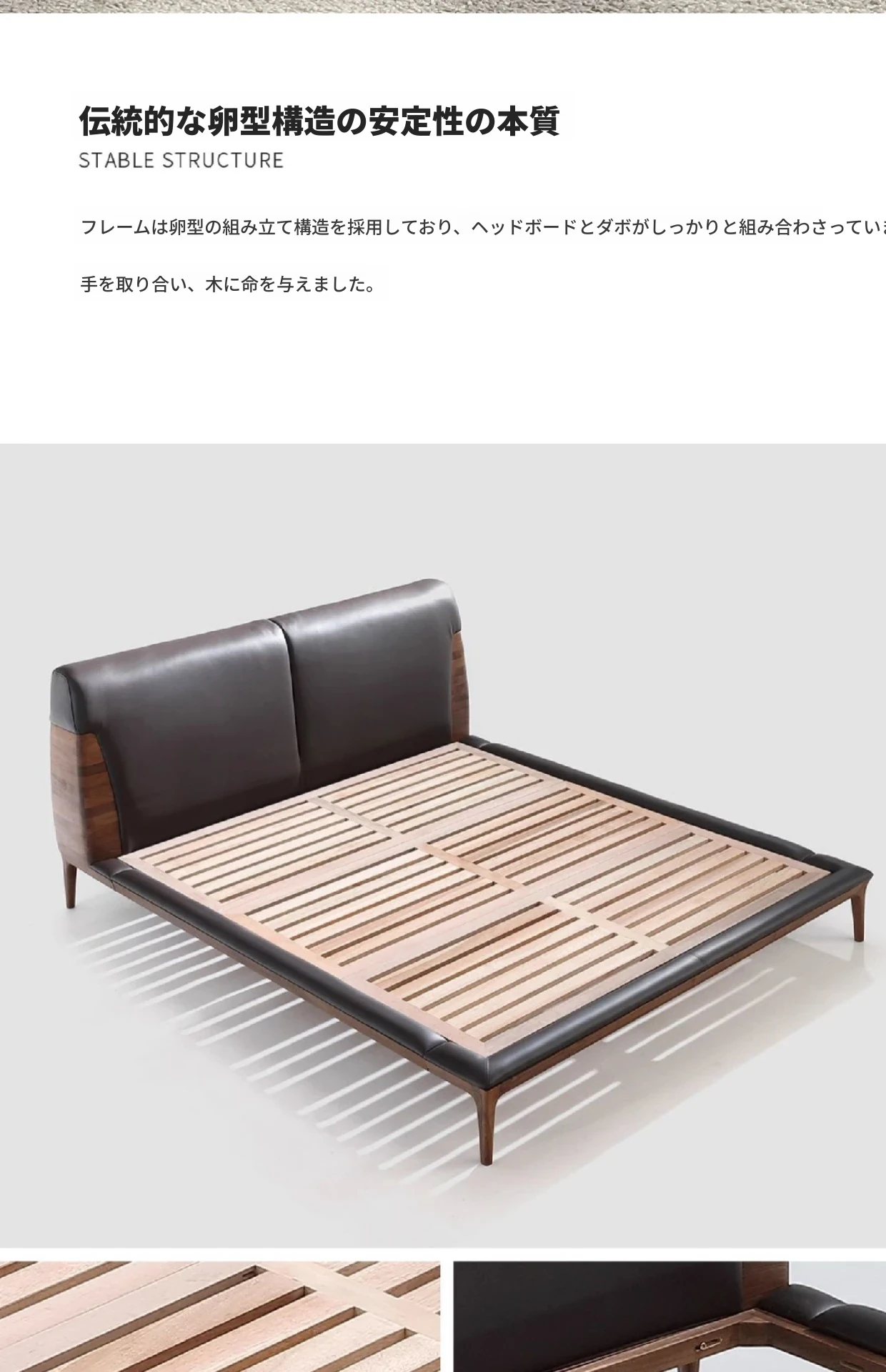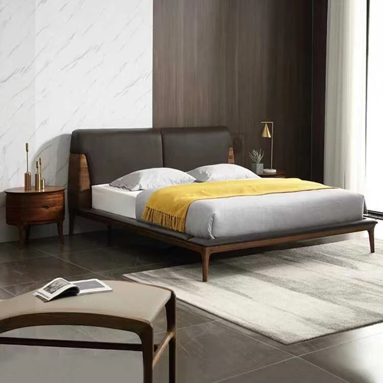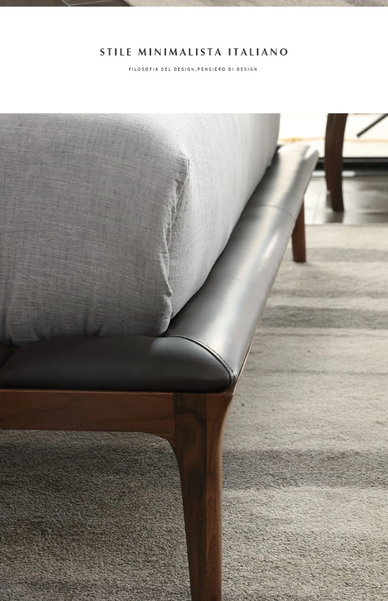 妙梵「卧云床」北米産ブラックウォールナットダブルベッド - 北欧スタイルのイタリアンミニマリズム、贅沢な本革仕様で、あなたの寝室を特別な空間に変えます。