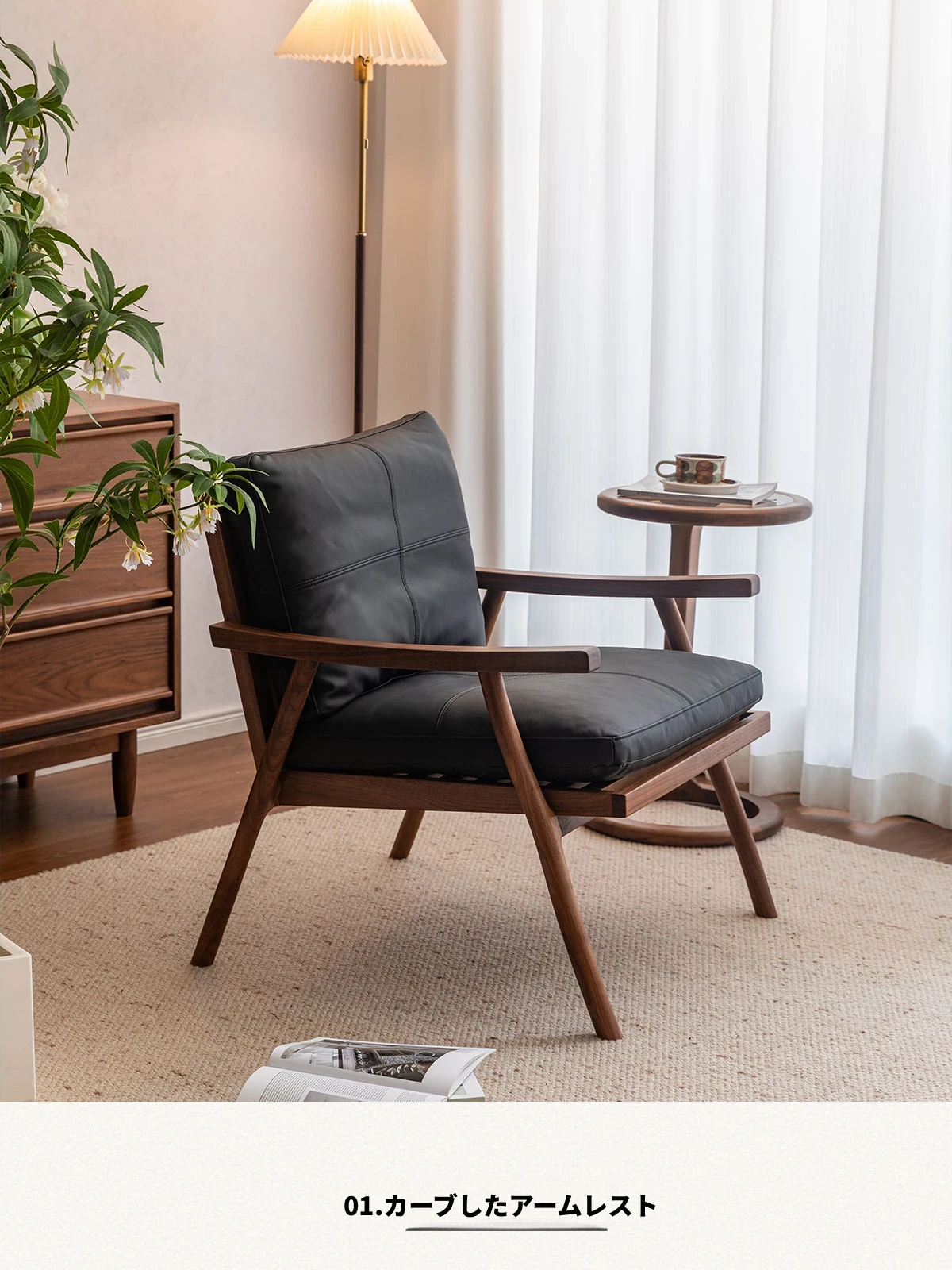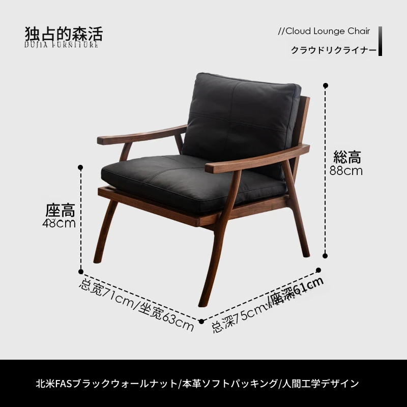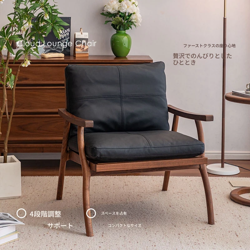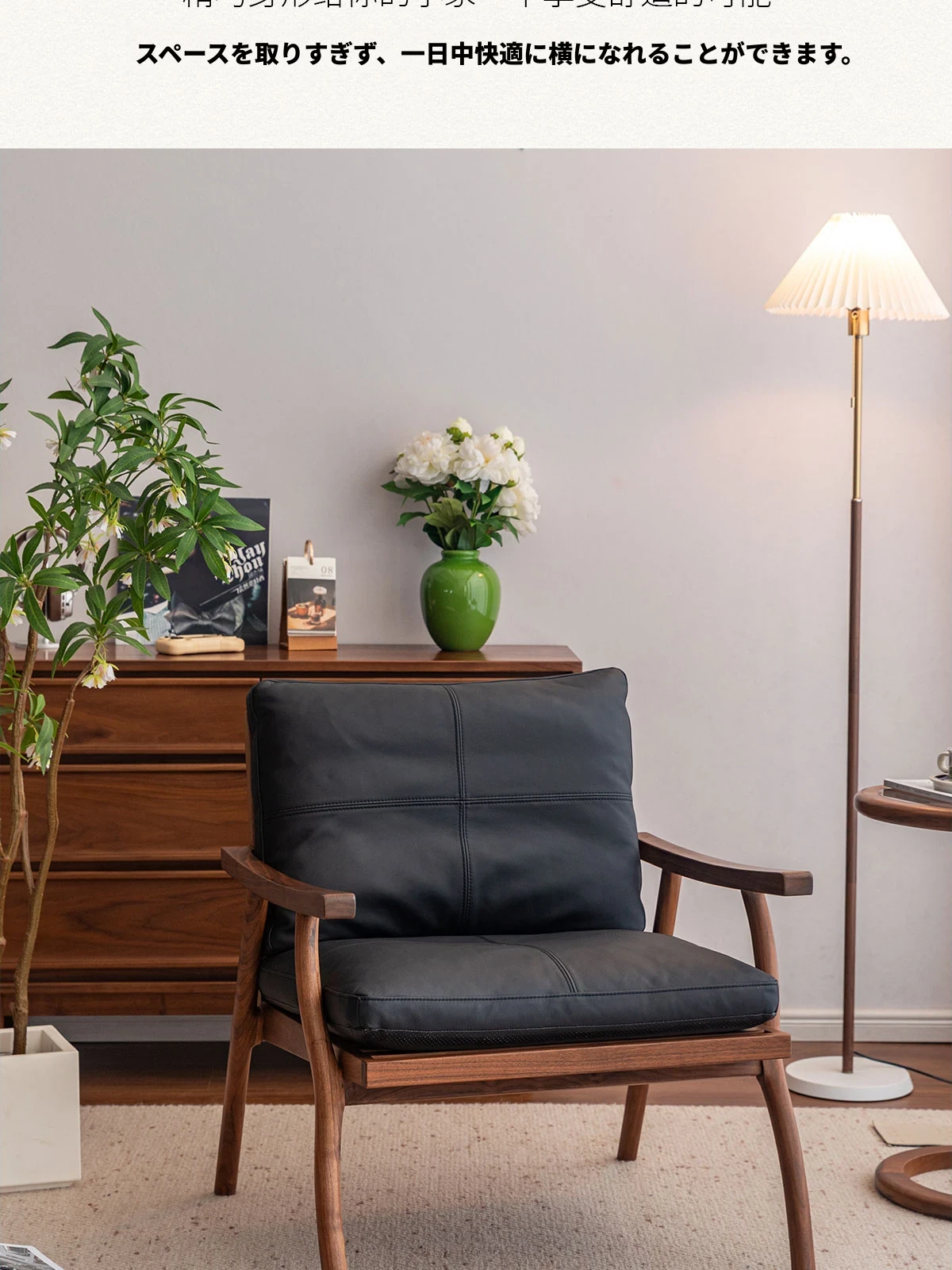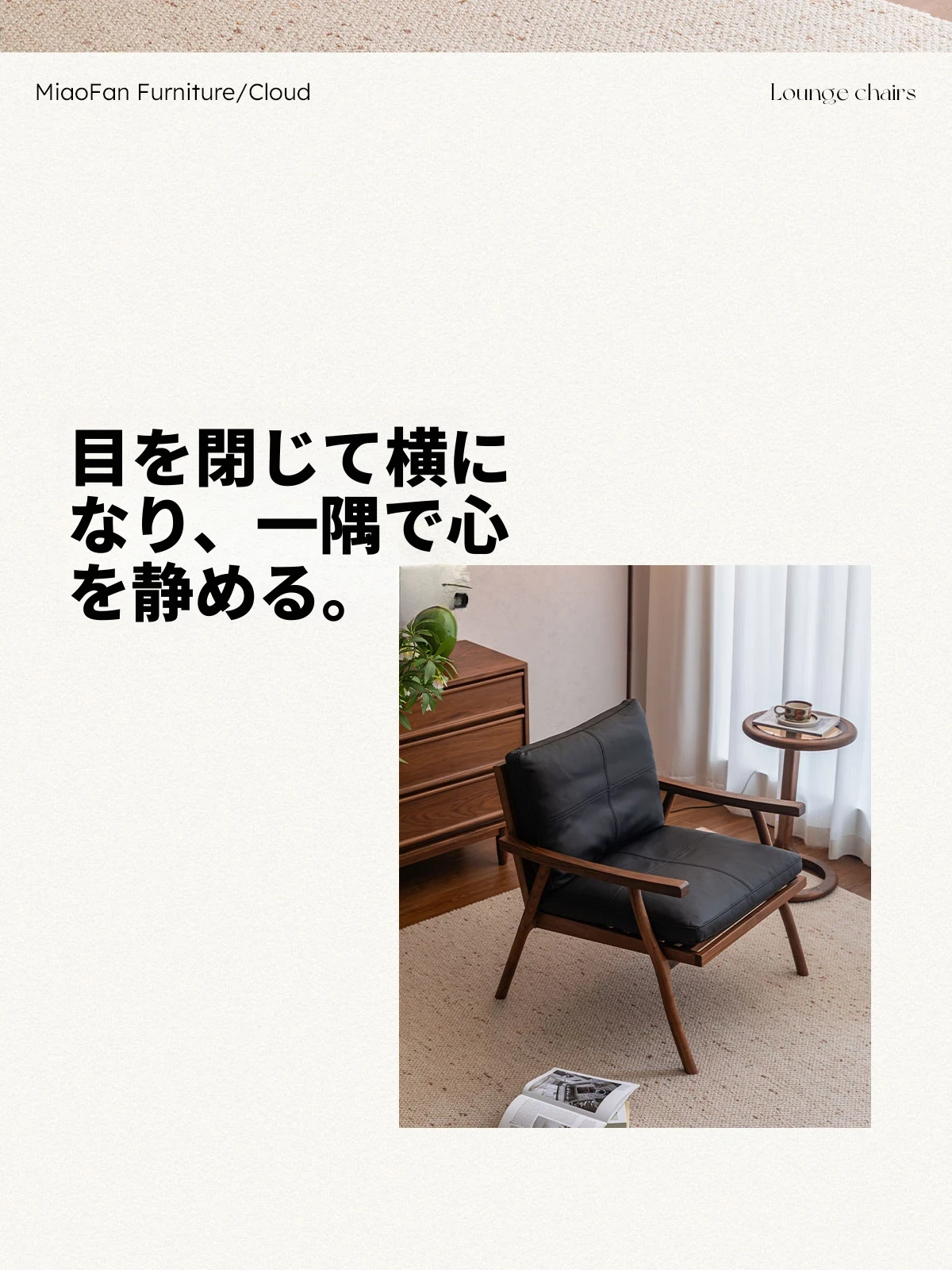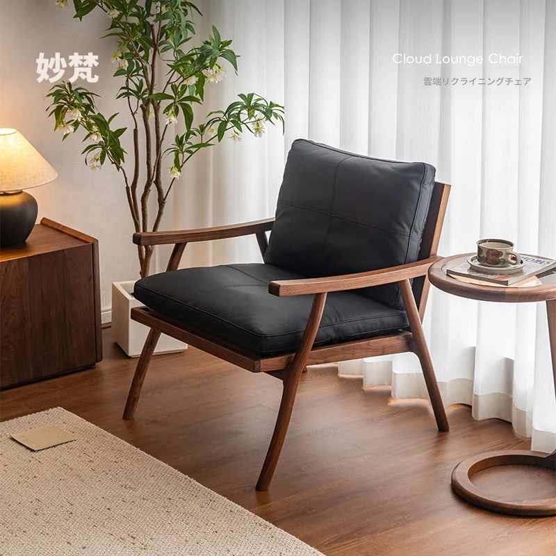 妙梵「云端リラックスチェア」北米産ブラックウォールナット無垢材使用!北欧スタイルの本革ソファチェアで、優雅なひとときを。心地よい座り心地と洗練されたデザインが、あなたのリビングを特別に演出します。