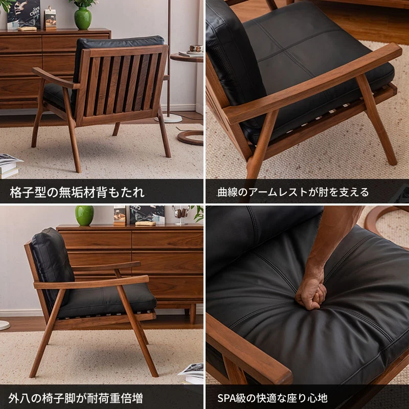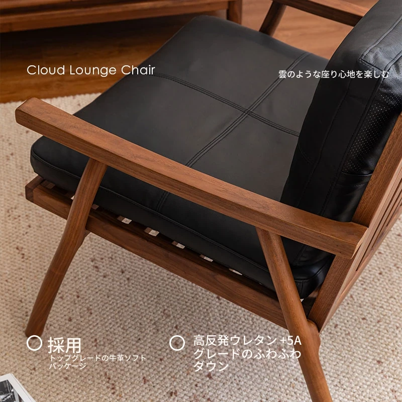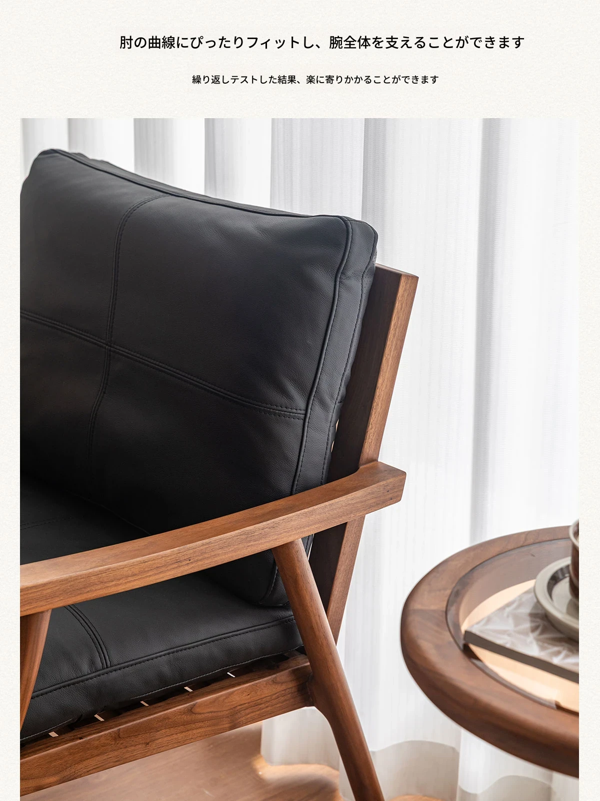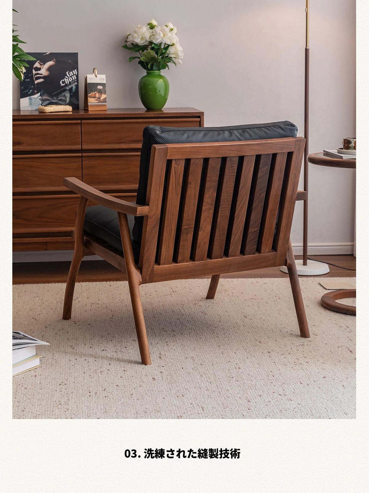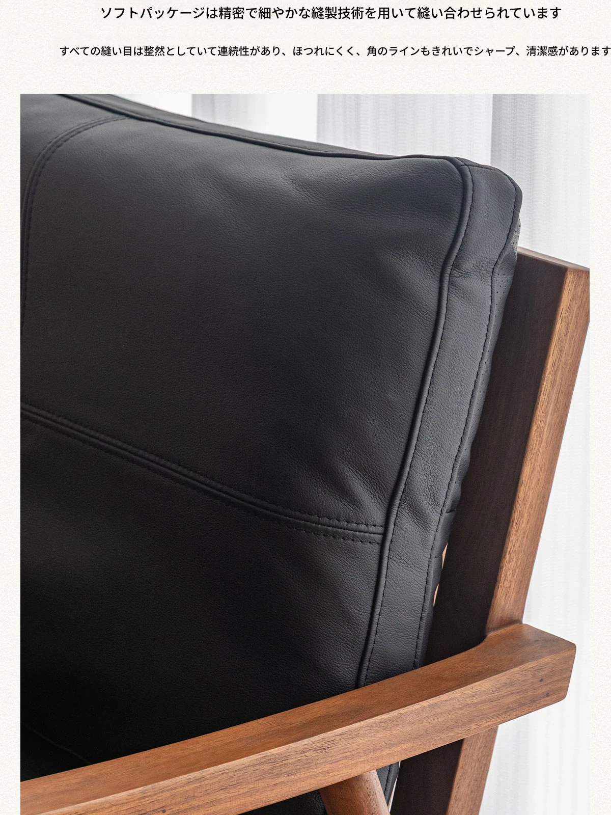 妙梵「云端リラックスチェア」北米産ブラックウォールナット無垢材使用!北欧スタイルの本革ソファチェアで、優雅なひとときを。心地よい座り心地と洗練されたデザインが、あなたのリビングを特別に演出します。