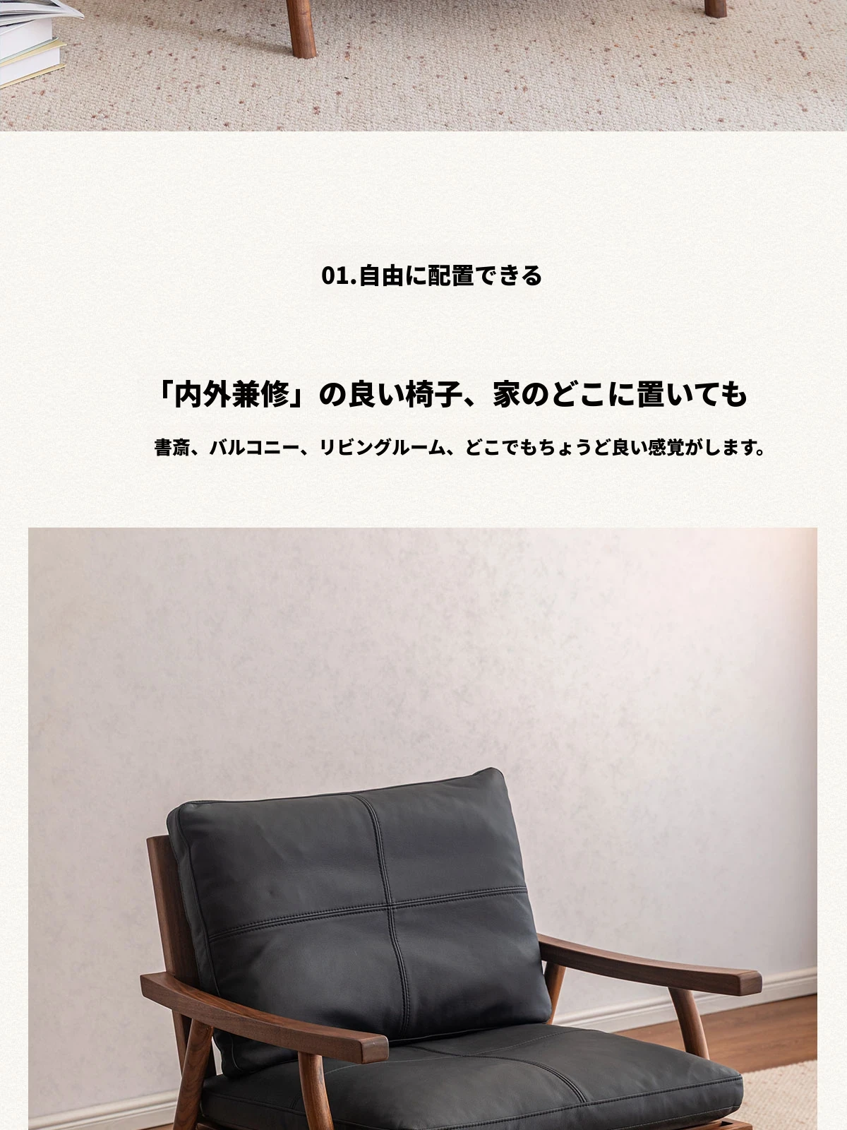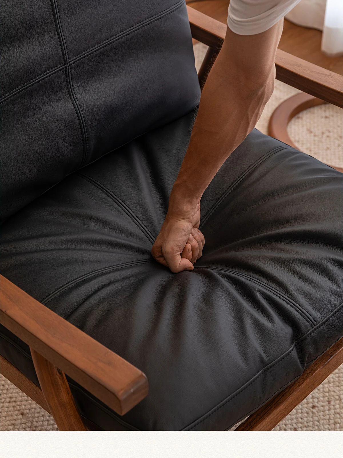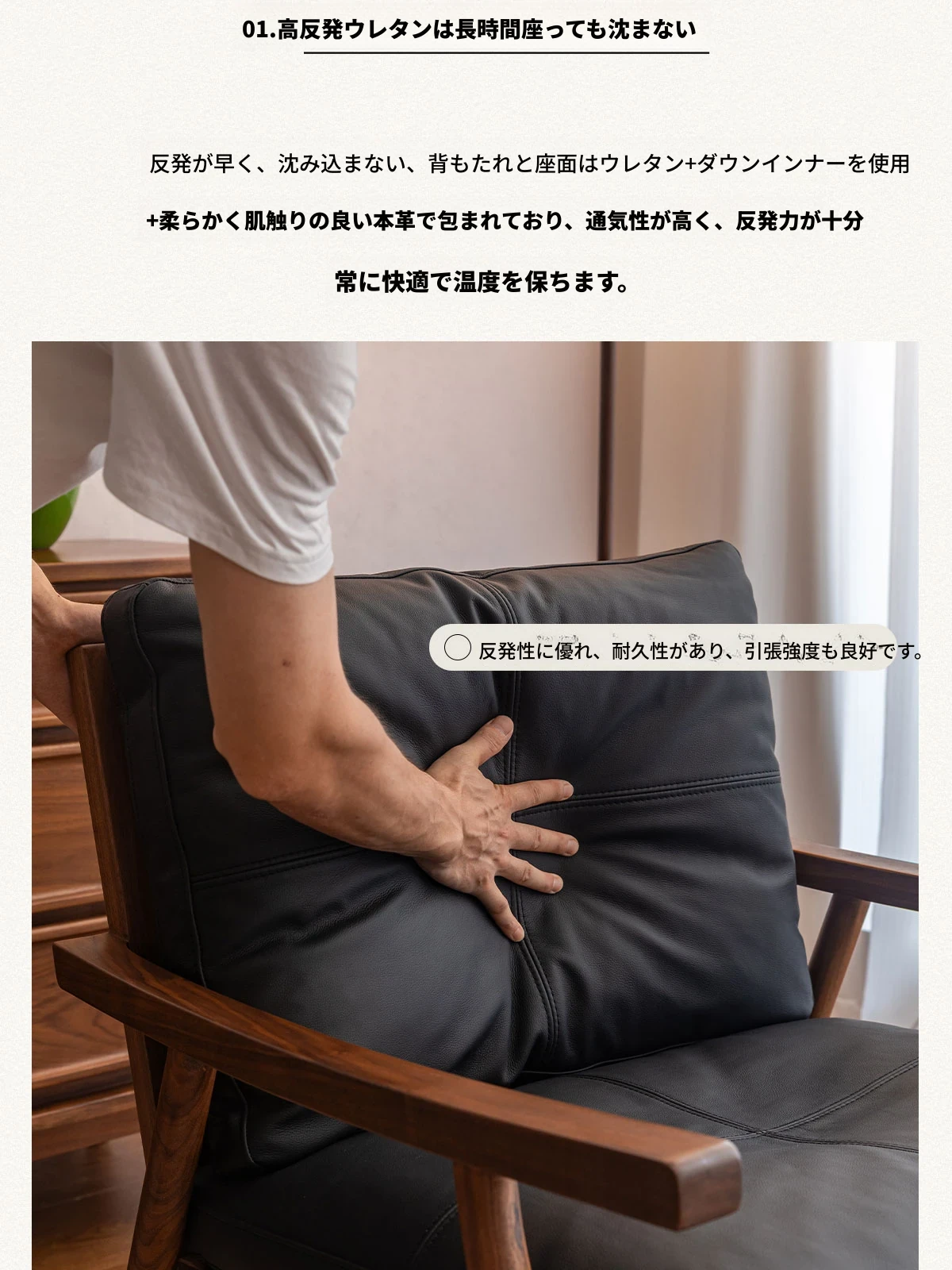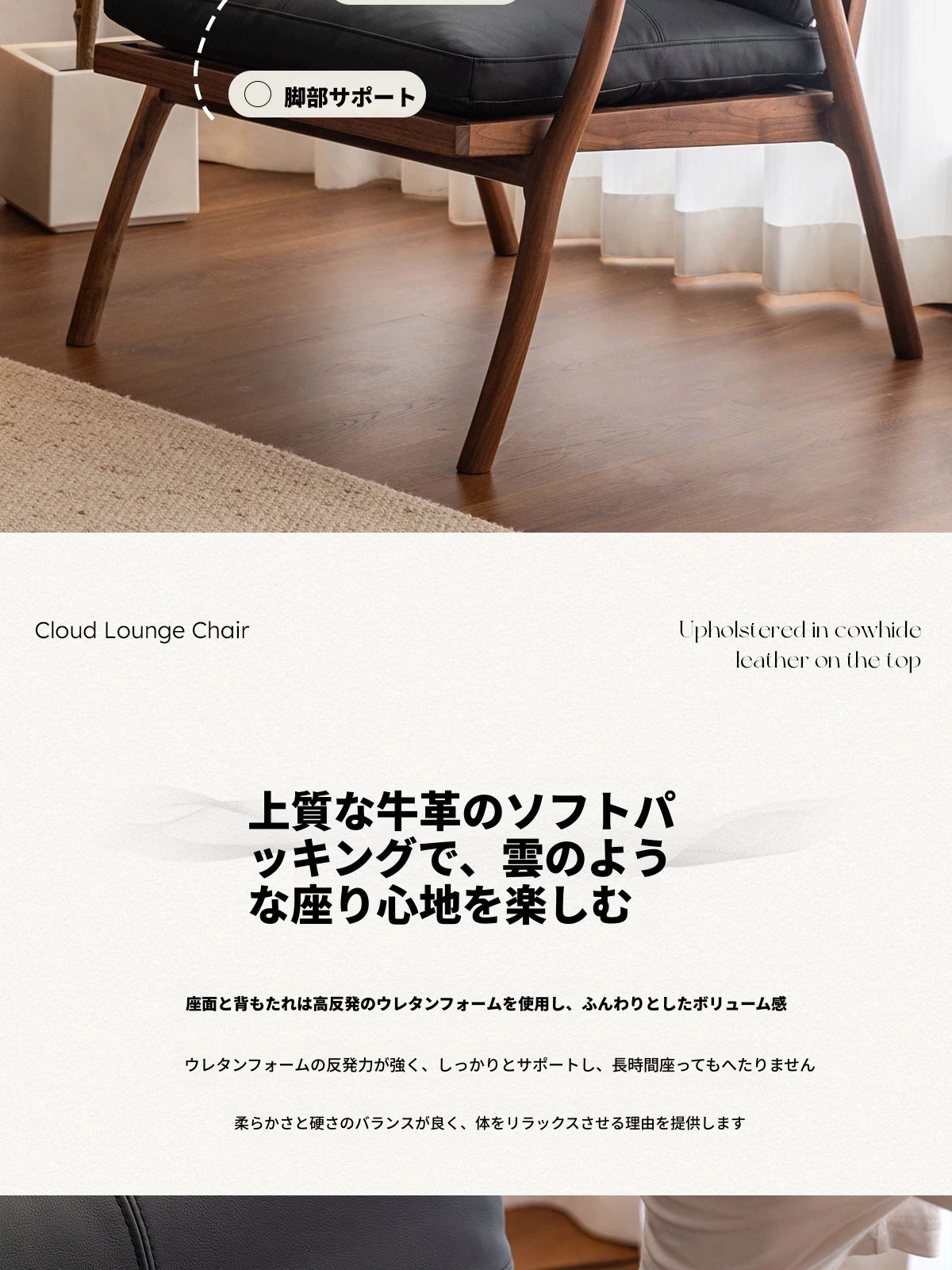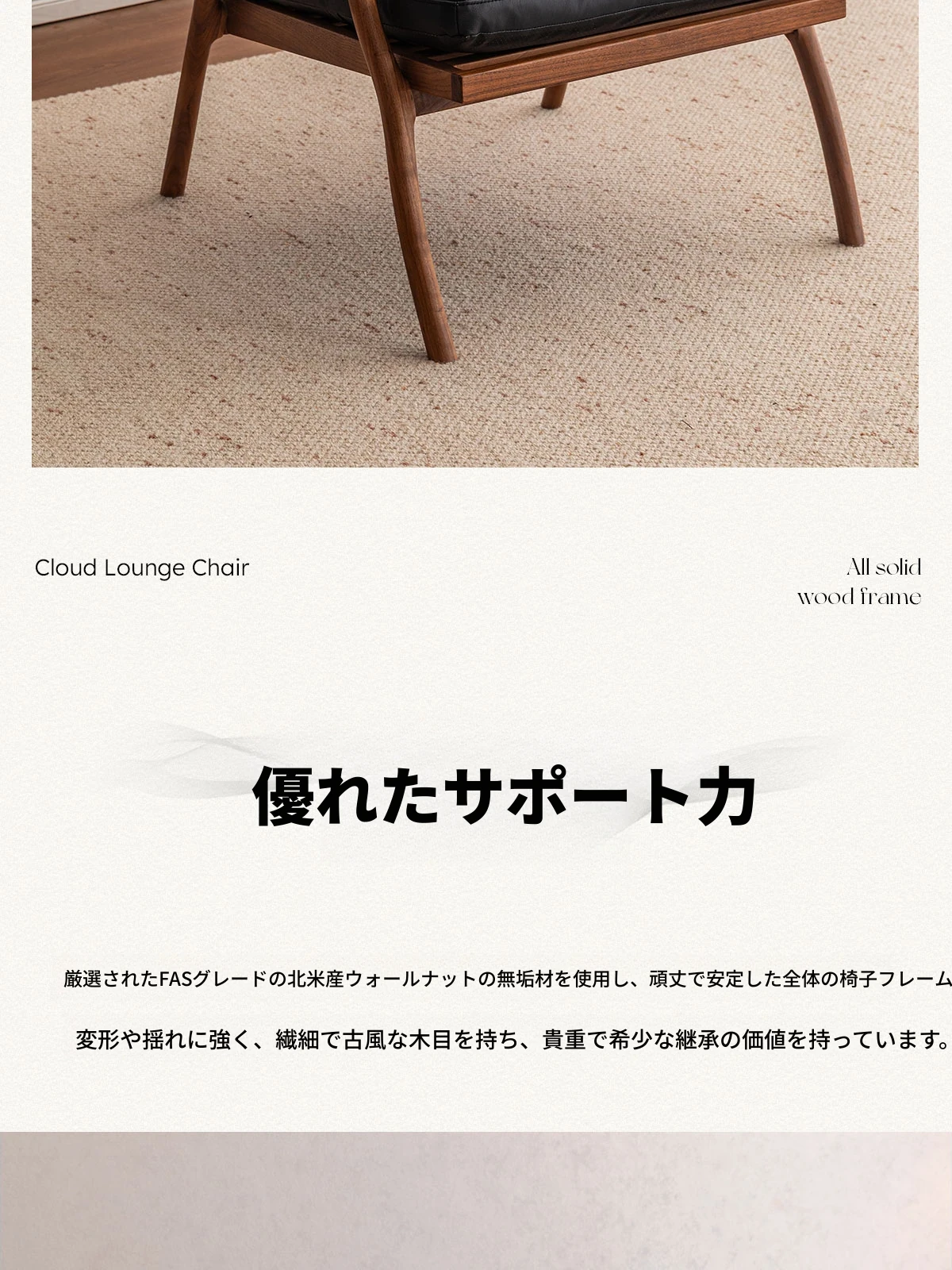 妙梵「云端リラックスチェア」北米産ブラックウォールナット無垢材使用!北欧スタイルの本革ソファチェアで、優雅なひとときを。心地よい座り心地と洗練されたデザインが、あなたのリビングを特別に演出します。