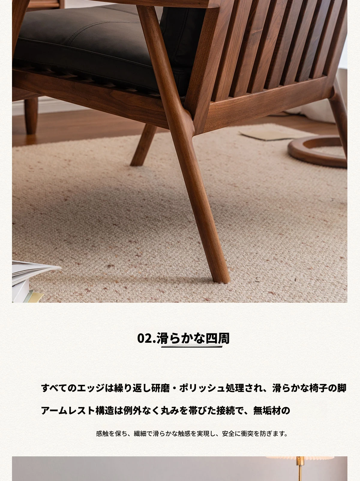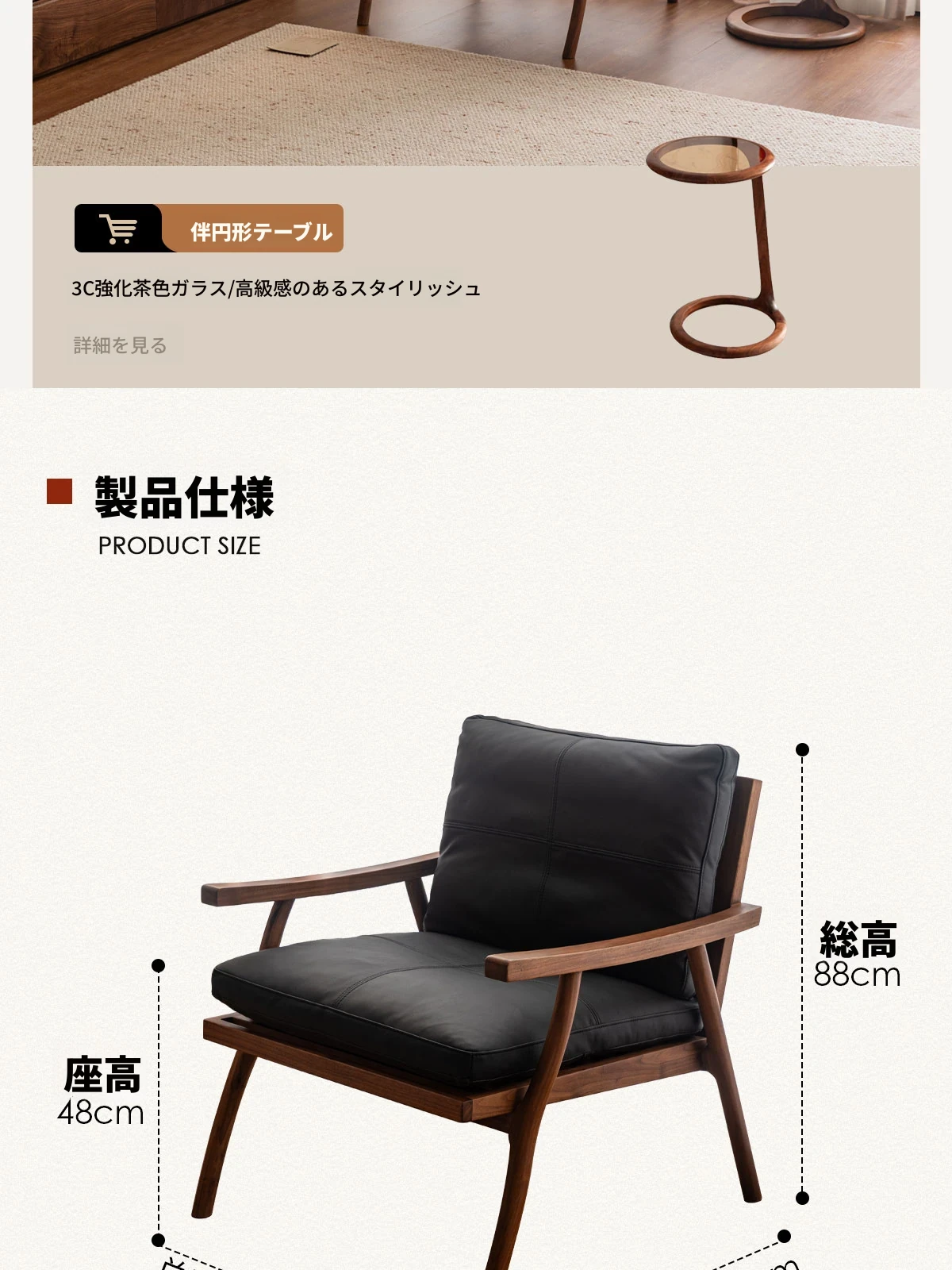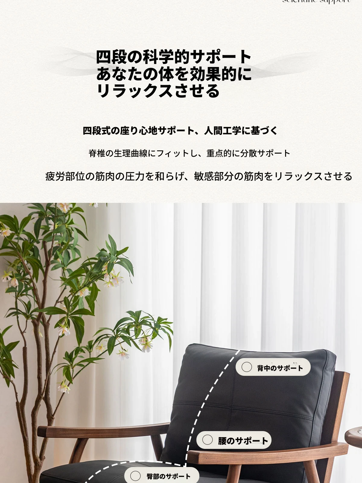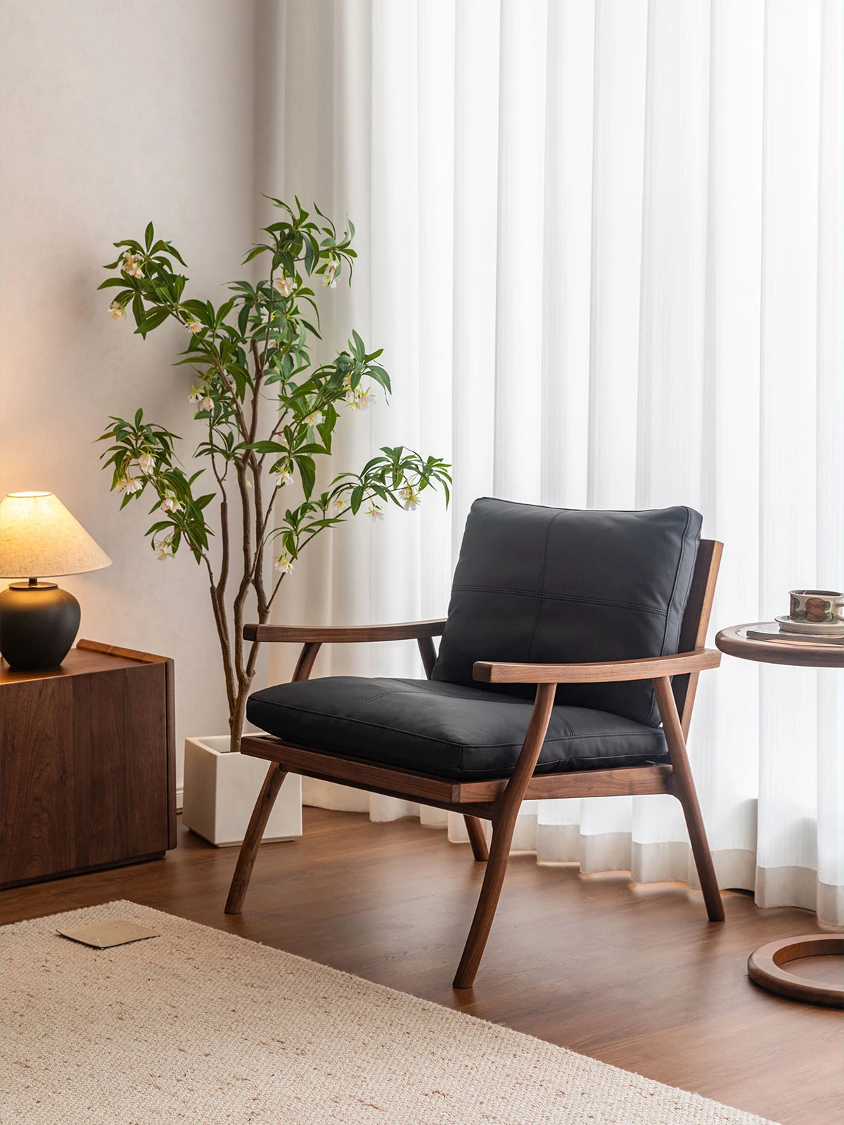 妙梵「云端リラックスチェア」北米産ブラックウォールナット無垢材使用!北欧スタイルの本革ソファチェアで、優雅なひとときを。心地よい座り心地と洗練されたデザインが、あなたのリビングを特別に演出します。