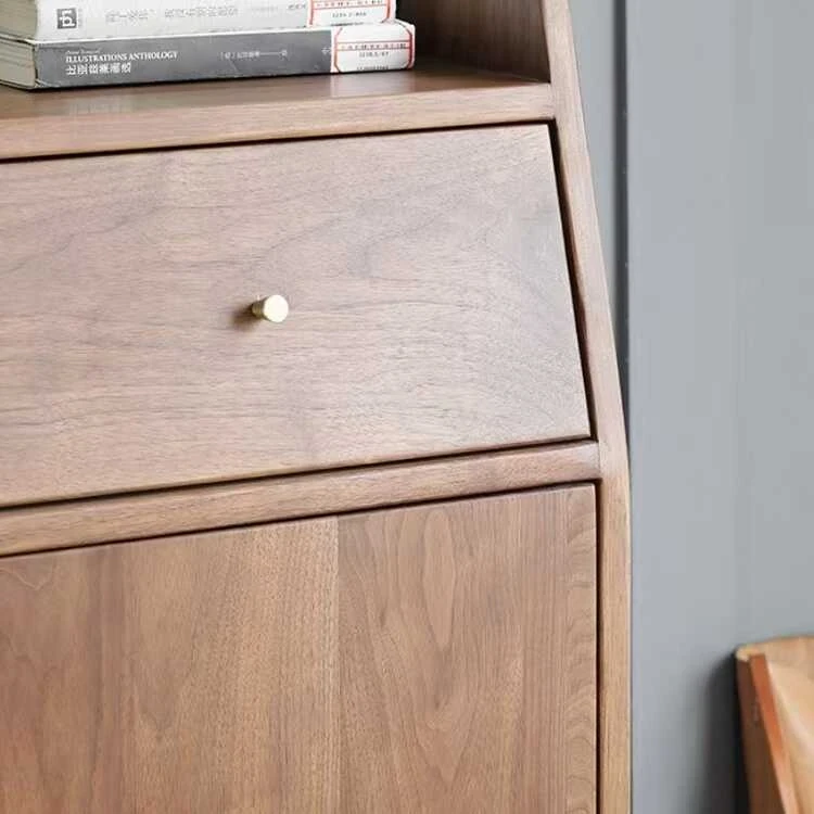 妙梵「時光の繭」北米産ブラックウォールナット無垢材書棚 防塵フロア収納棚 リビングの壁面展示キャビネット