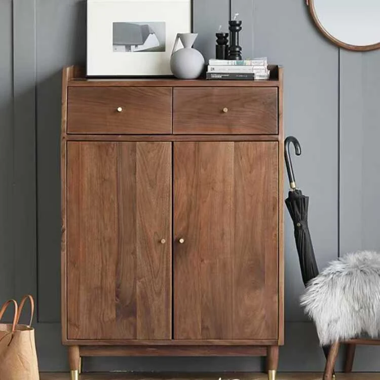 妙梵「シューズボックス」北米ブラックウォールナット製のシンプルでスタイリッシュな玄関収納キャビネット - おしゃれな玄関を演出し、靴をすっきり整理!