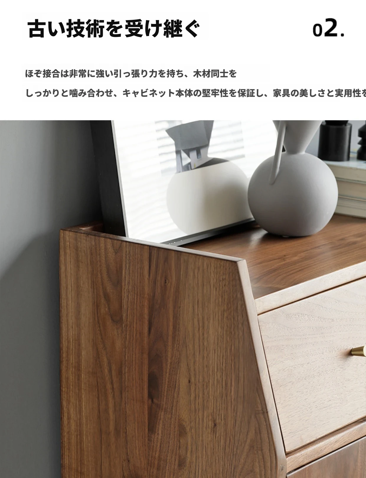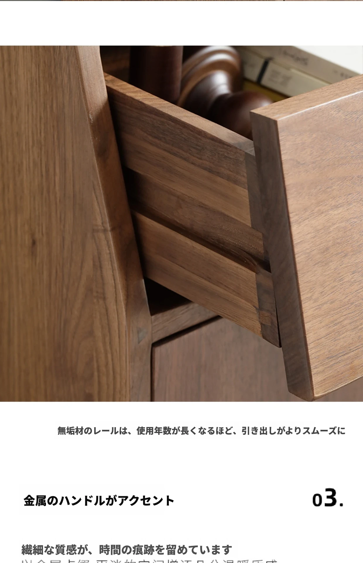 妙梵「食運閣」北米産ブラックウォールナット無垢材のモダンシンプルなサイドボード、リビングルームにぴったりな収納力抜群のティーサーバーキャビネット!おしゃれで機能的なデザインで、あなたの空間に特別な魅力をプラスします。