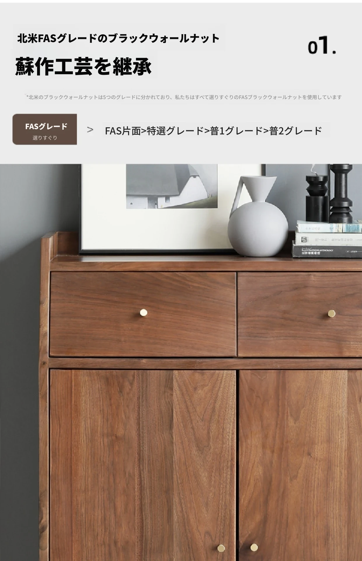 妙梵「餐香閣」北米ブラックウォールナット製サイドボード - おしゃれなティーキャビネット、食器棚としても大活躍!リビングの収納にぴったりなスタイリッシュな収納家具。