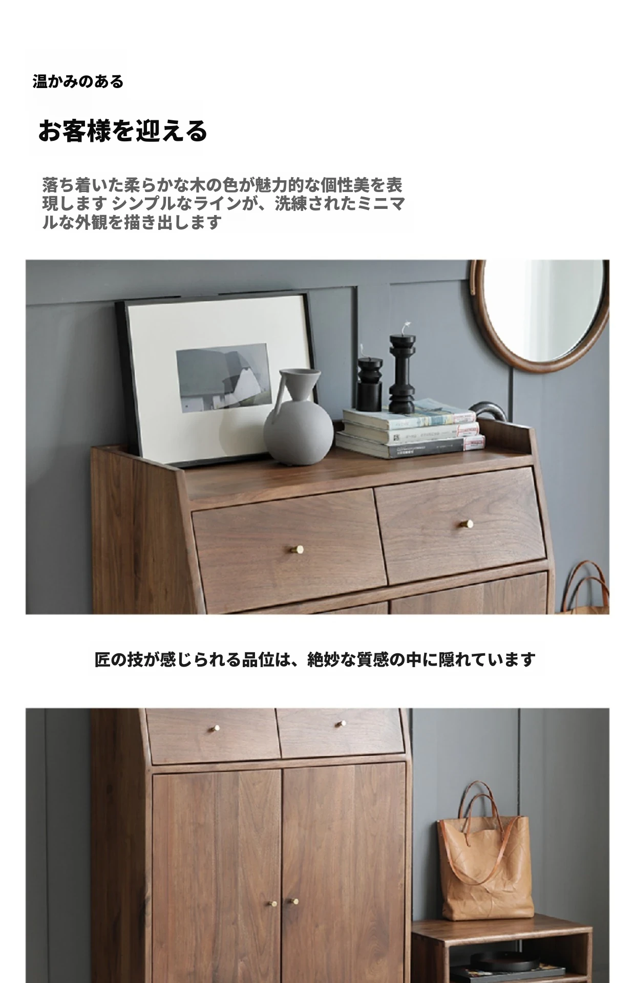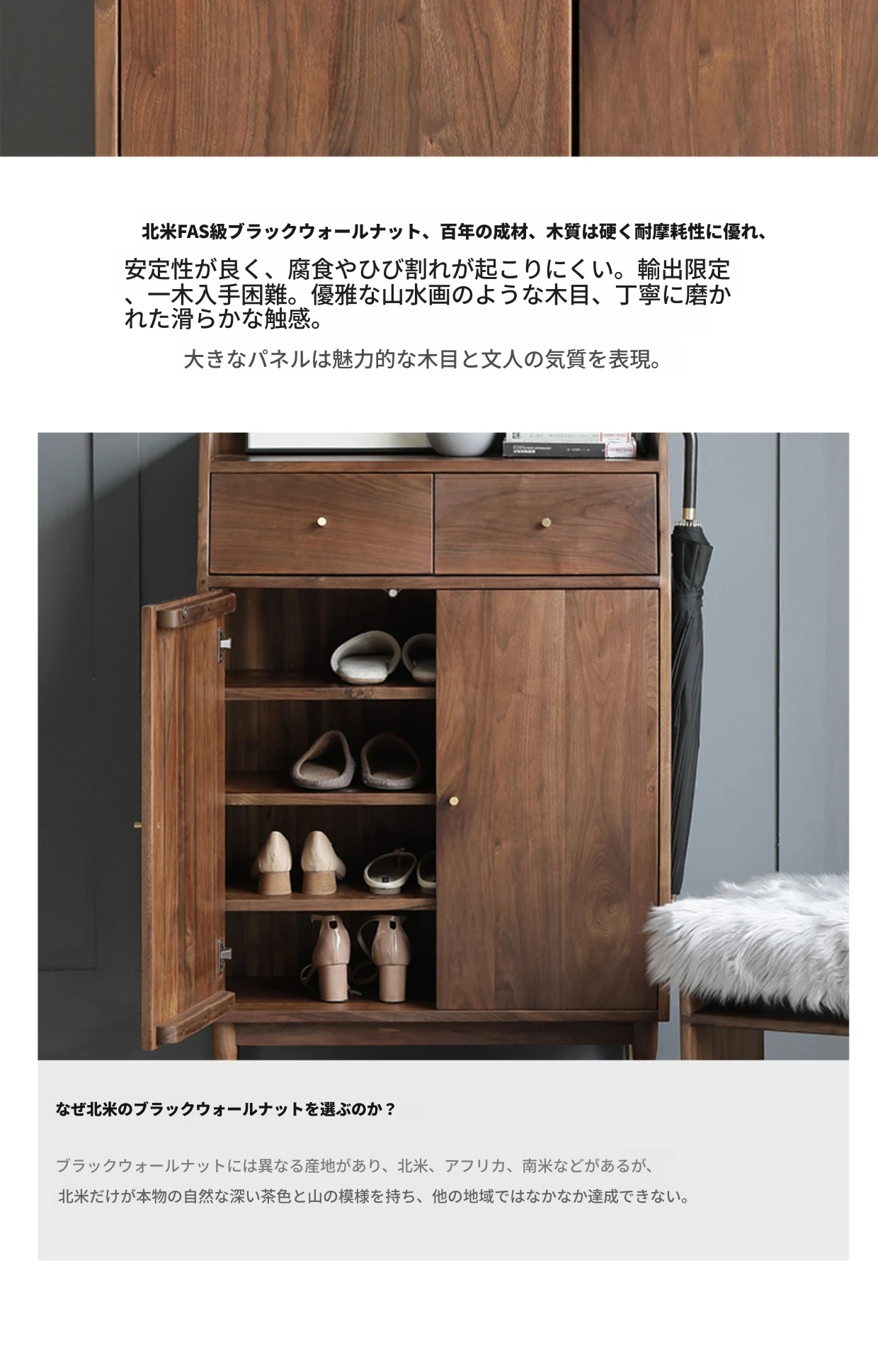 妙梵「リビングシューズキャビネット」北米産ブラックウォールナット製、モダンでシンプルなデザイン。玄関やリビングに最適な収納力を誇ります。おしゃれで機能的な靴収納で、快適な暮らしを実現!