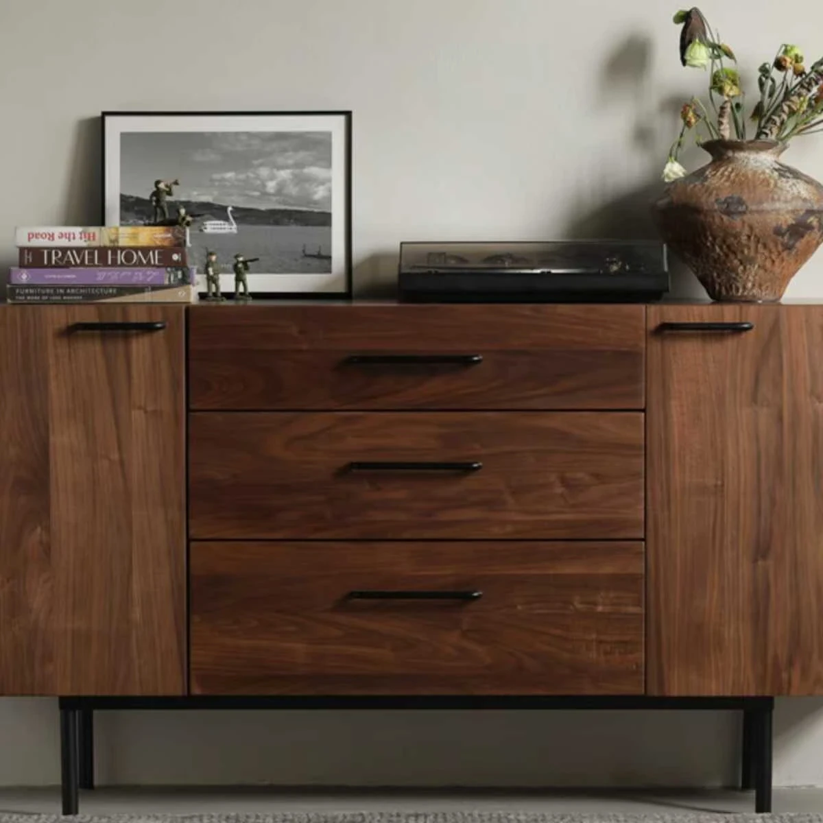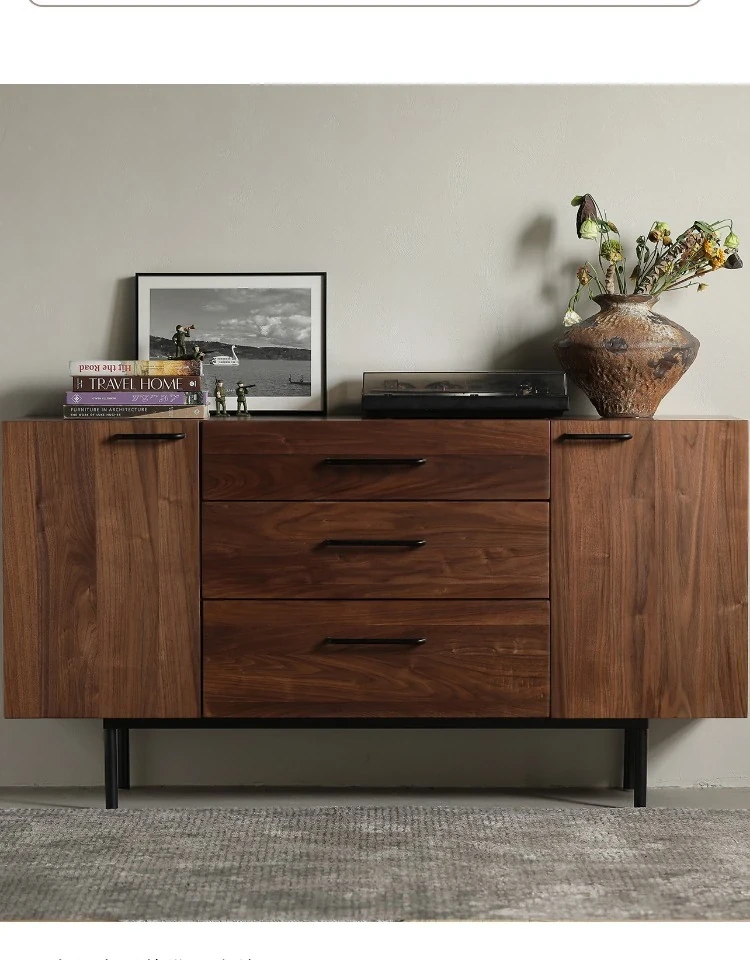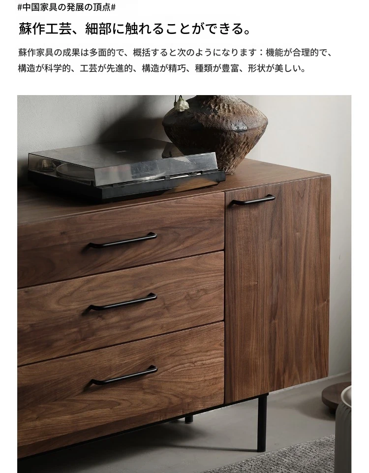 妙梵「食運閣」北米産ブラックウォールナット無垢材のモダンシンプルなサイドボード、リビングルームにぴったりな収納力抜群のティーサーバーキャビネット!おしゃれで機能的なデザインで、あなたの空間に特別な魅力をプラスします。