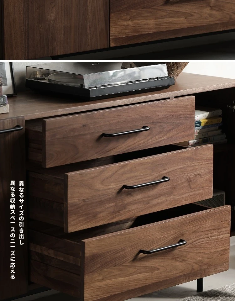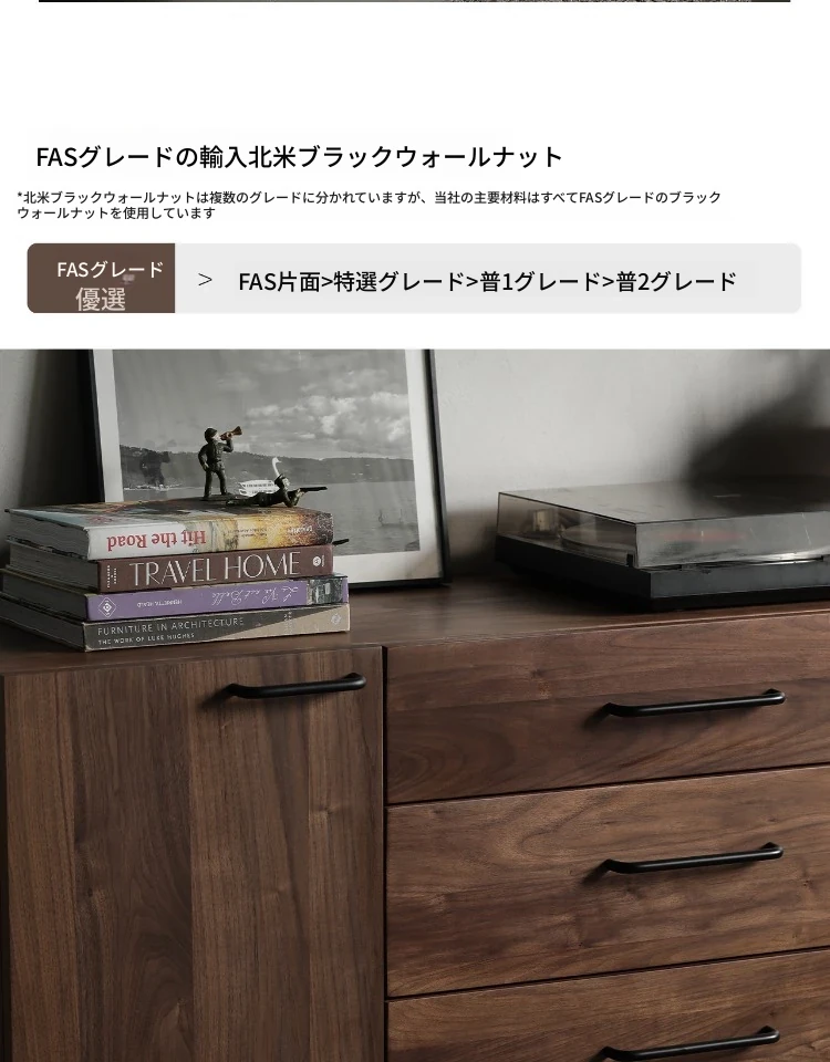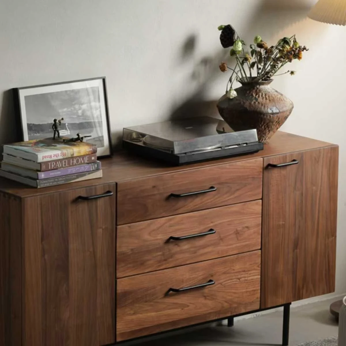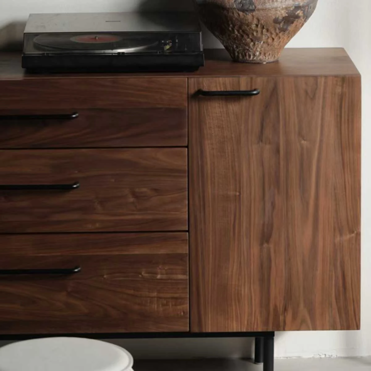 妙梵「食運閣」北米産ブラックウォールナット無垢材のモダンシンプルなサイドボード、リビングルームにぴったりな収納力抜群のティーサーバーキャビネット!おしゃれで機能的なデザインで、あなたの空間に特別な魅力をプラスします。