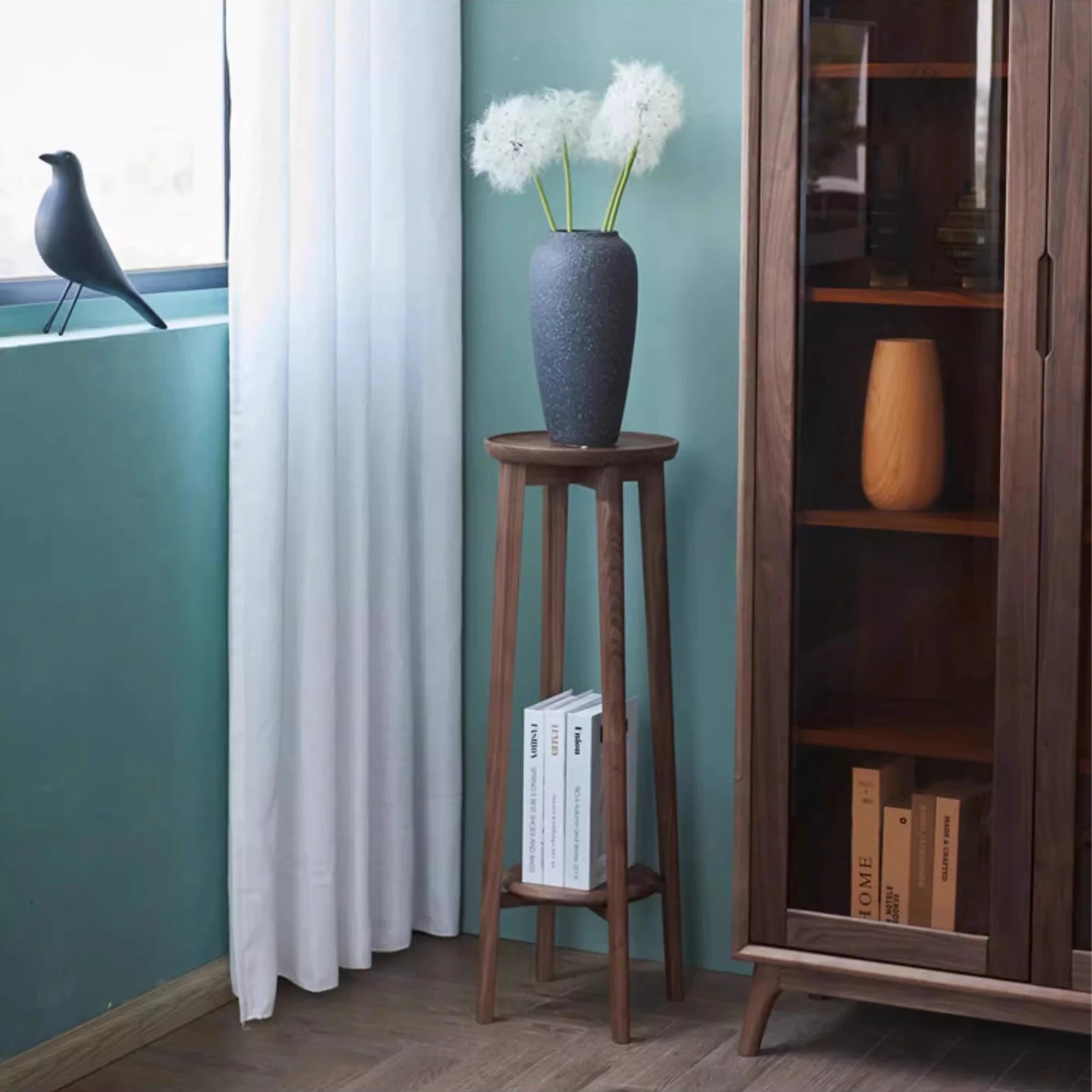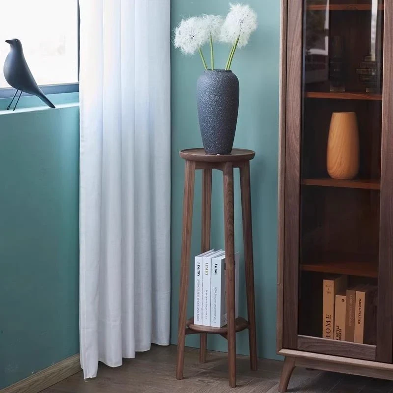 妙梵家具「花円テーブル」北米産ブラックウォールナット製の中式バルコニーフラワースタンド、スタイリッシュな円形デザインでお部屋に華やかさをプラス!