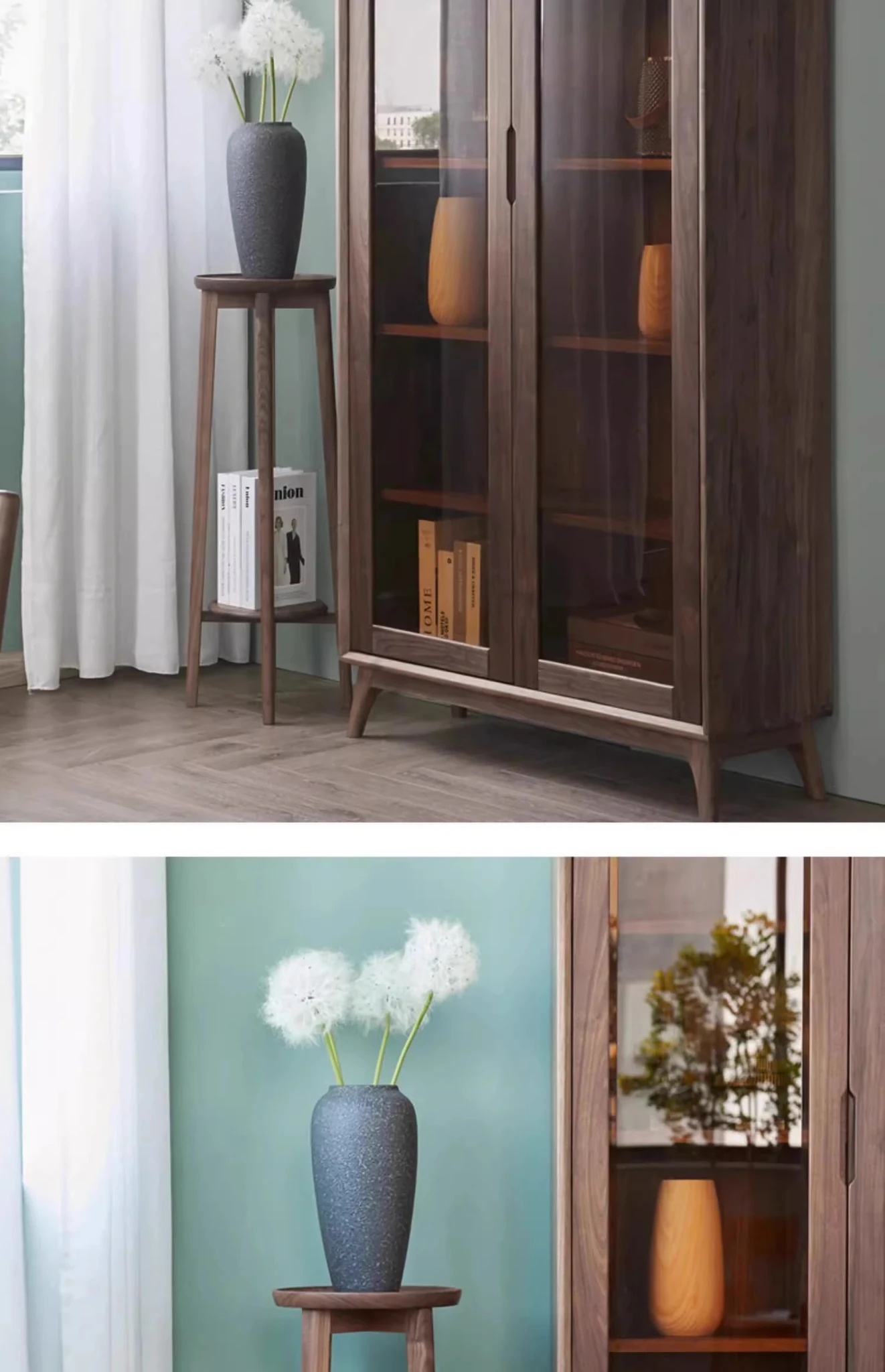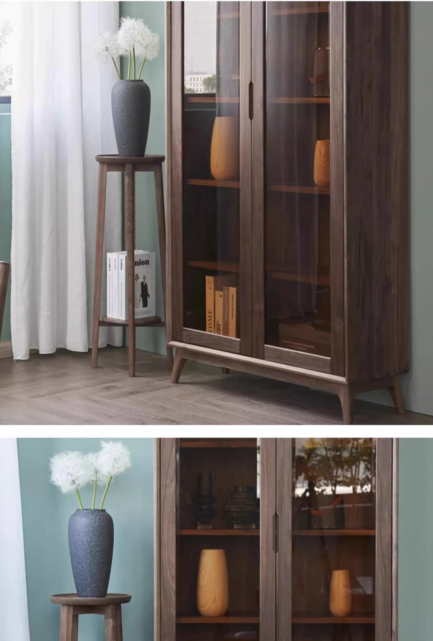 妙梵「錦書台」北米産ブラックウォールナット無垢材の本棚・収納ラック・リビング展示キャビネット。優雅なデザインで、あなたの空間をより洗練されたものに。収納力抜群で、書籍や飾り物を美しく演出します。