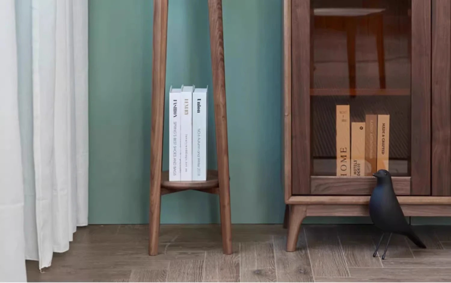 妙梵「万巻琳琅閣」北米産ブラックウォールナット無垢材のシンプルなフロアスタンド型梯形本棚 - おしゃれで機能的な収納スペースを実現!
