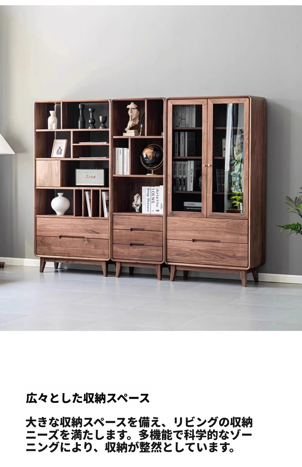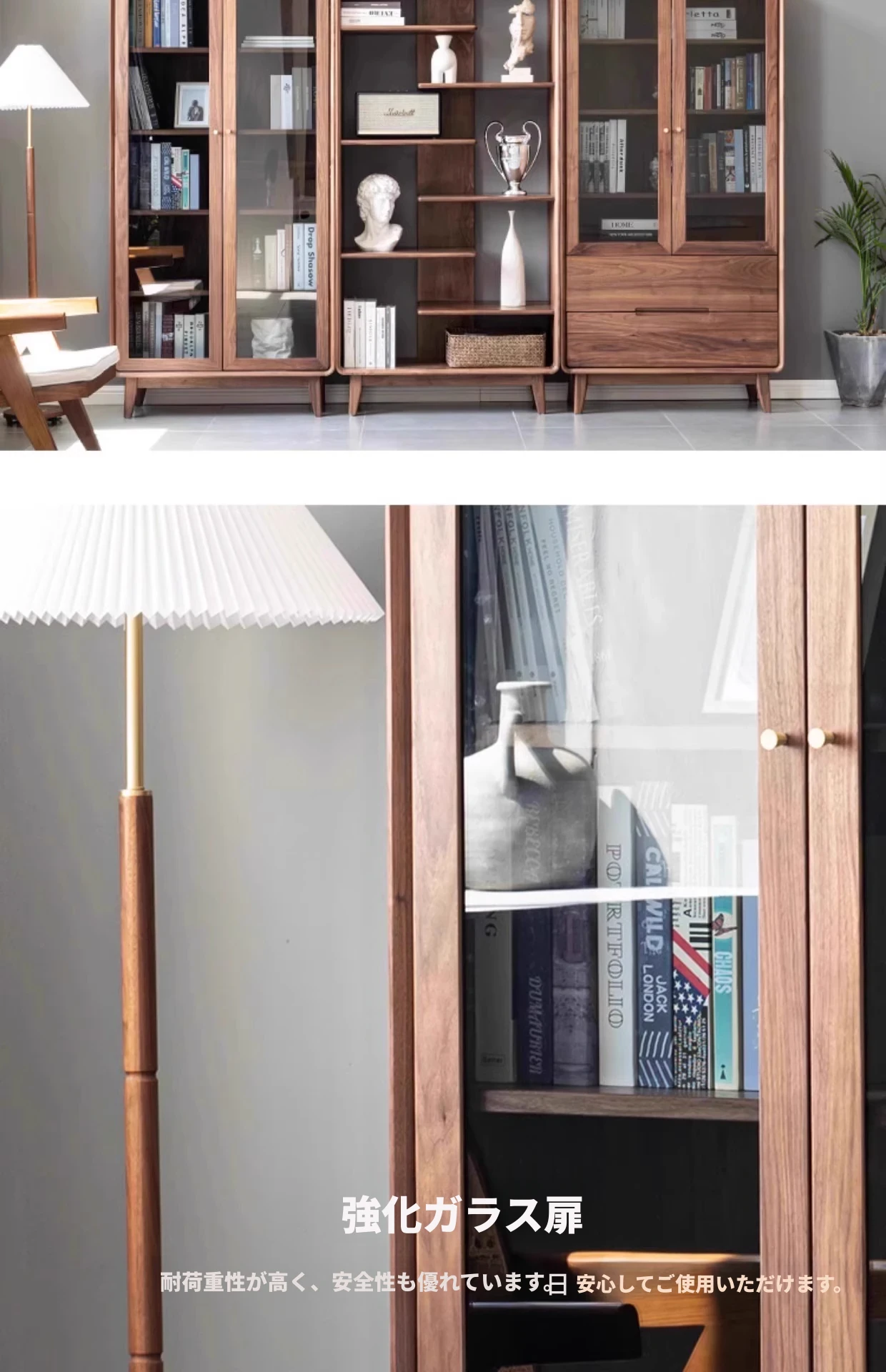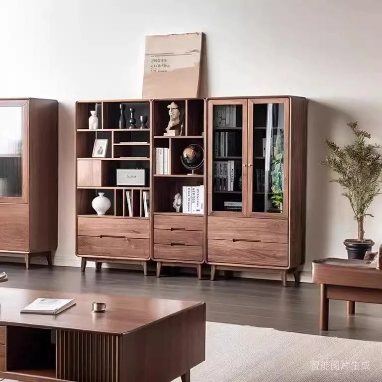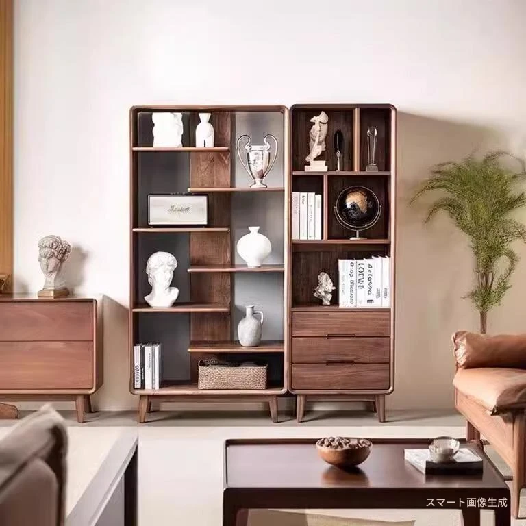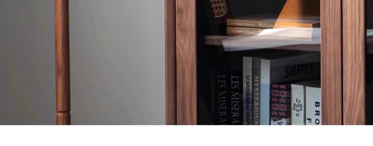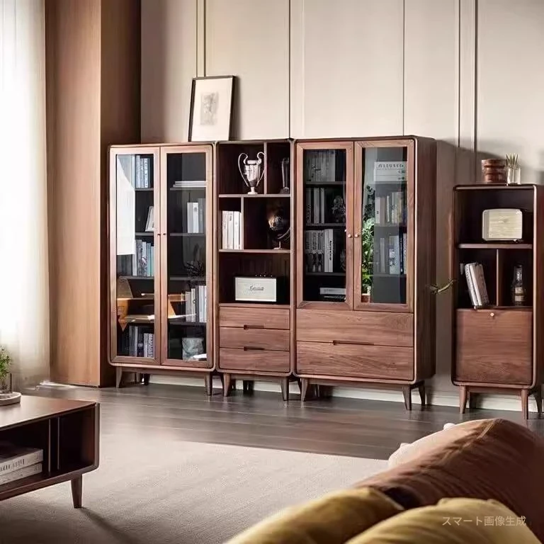 妙梵家具「ガナキャビネット」北米産ウォールナットの書棚 ガラス扉の本棚 フロア収納ディスプレイキャビネット - 高級感あふれるデザインでお部屋を華やかに演出!整理整頓と美しさを両立した理想の収納ソリューション。