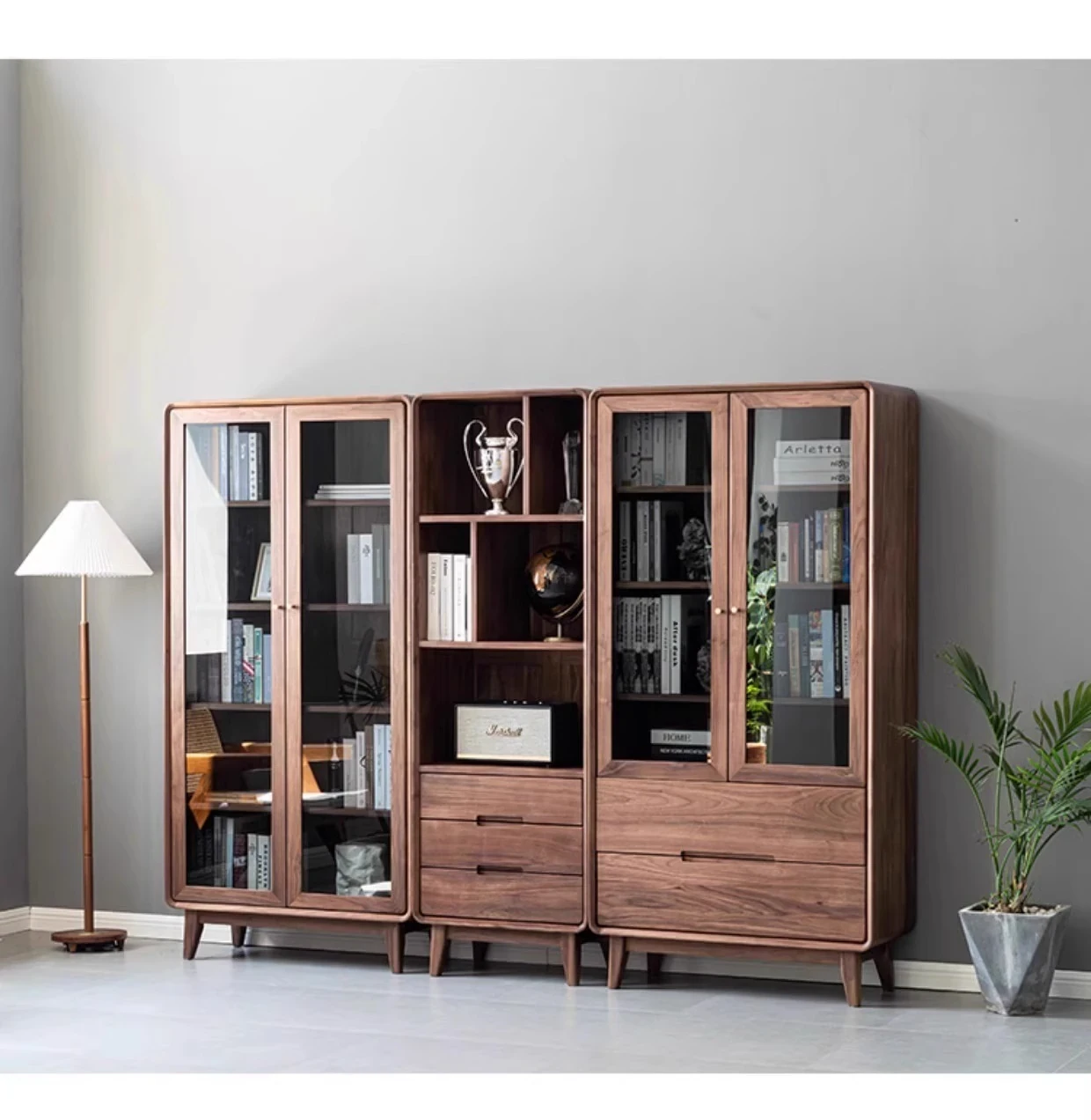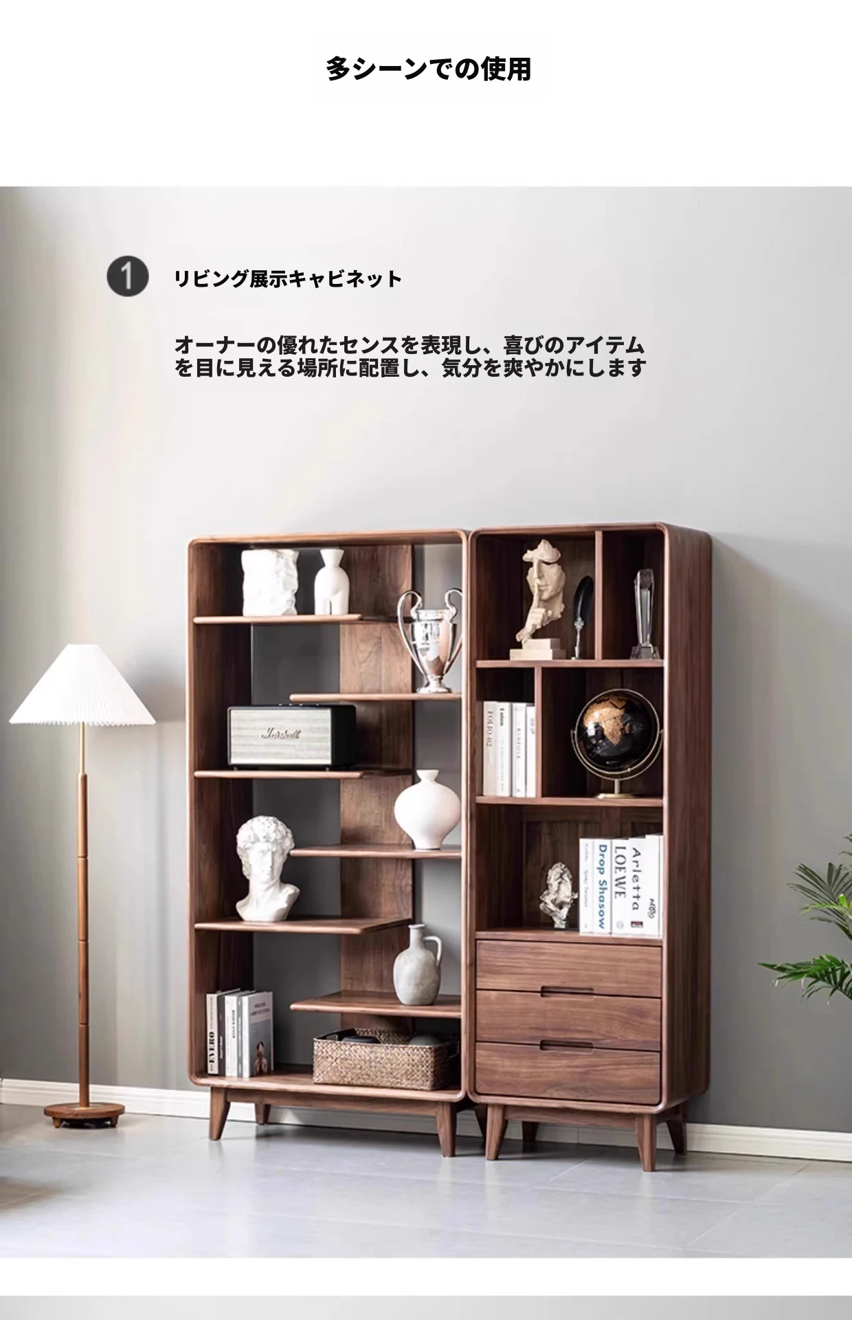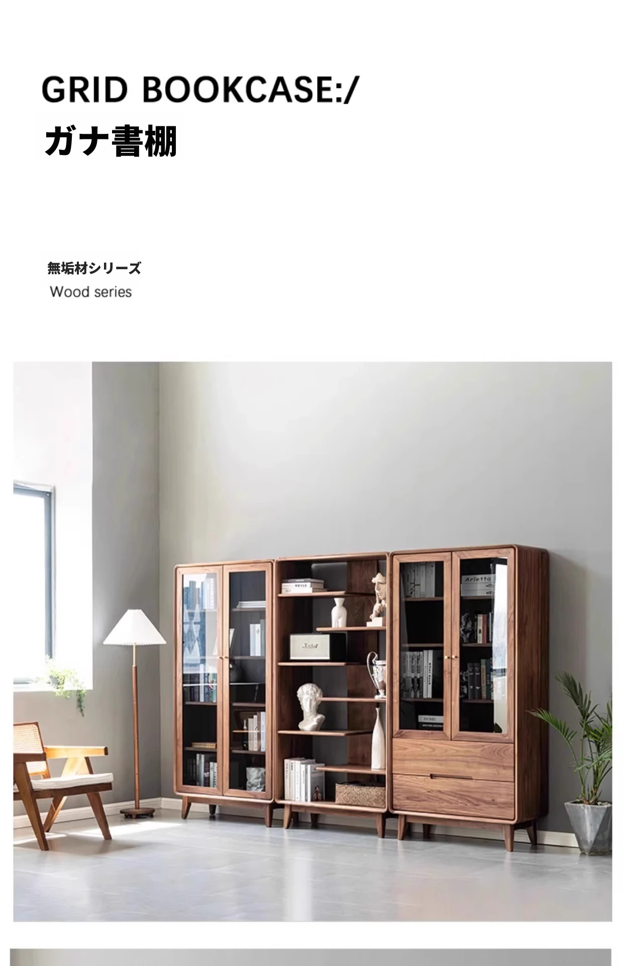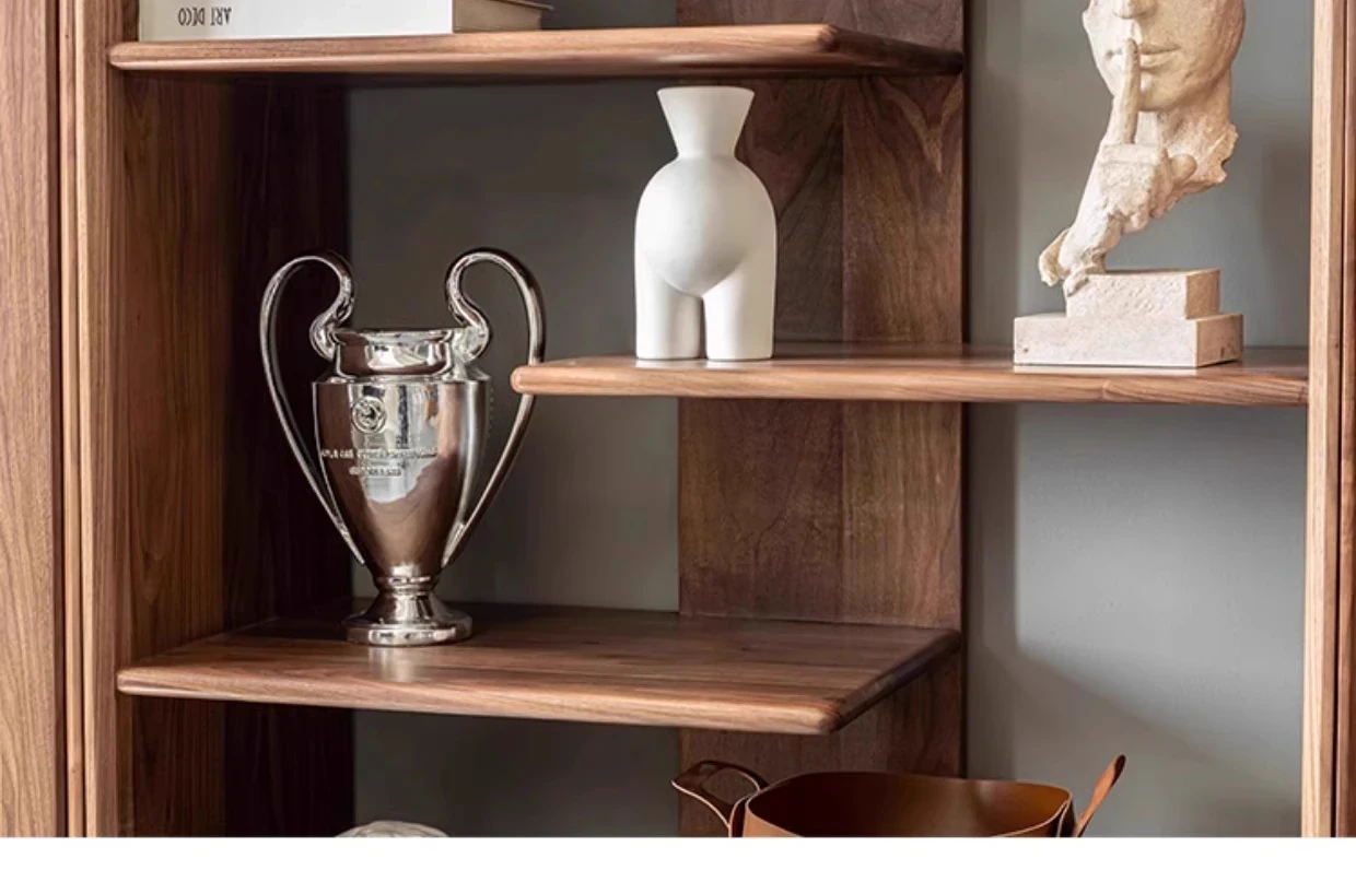 妙梵家具「ガナキャビネット」北米産ウォールナットの書棚 ガラス扉の本棚 フロア収納ディスプレイキャビネット - 高級感あふれるデザインでお部屋を華やかに演出!整理整頓と美しさを両立した理想の収納ソリューション。
