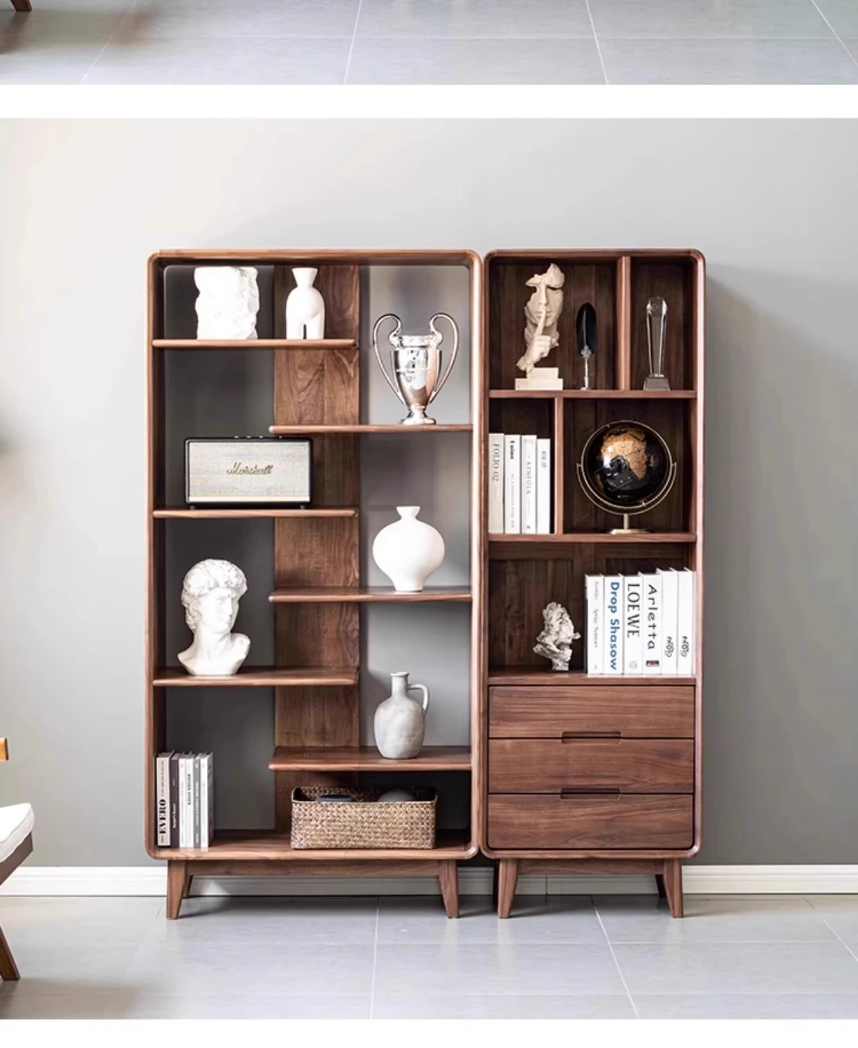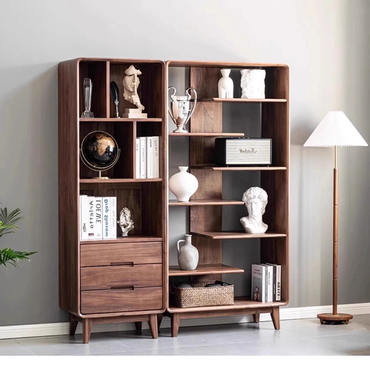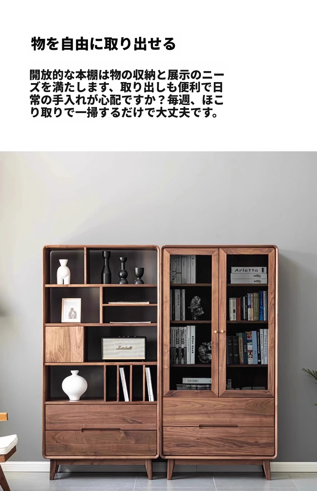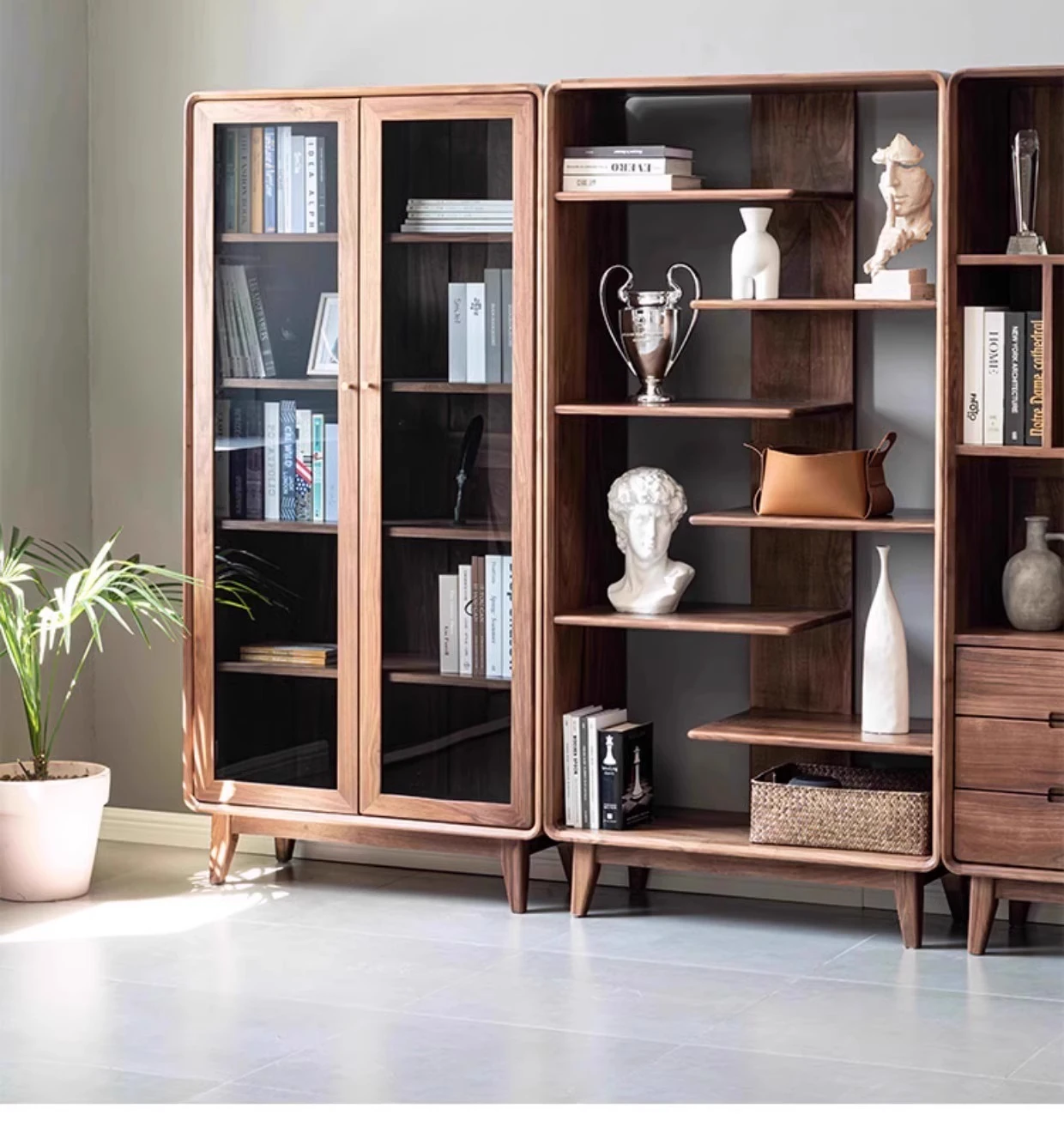 妙梵家具「ガナキャビネット」北米産ウォールナットの書棚 ガラス扉の本棚 フロア収納ディスプレイキャビネット - 高級感あふれるデザインでお部屋を華やかに演出!整理整頓と美しさを両立した理想の収納ソリューション。