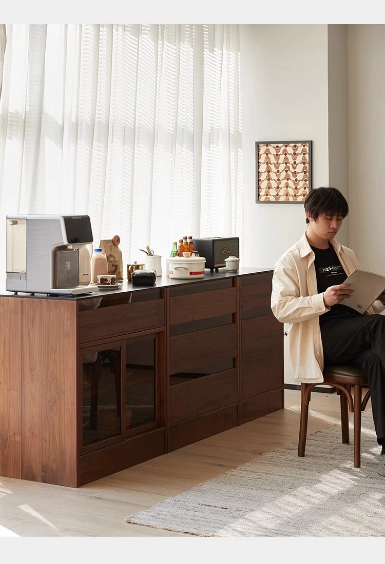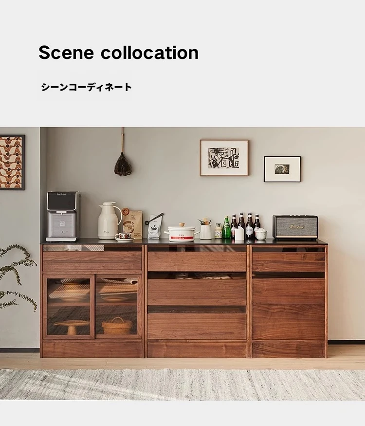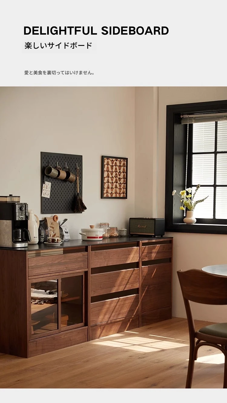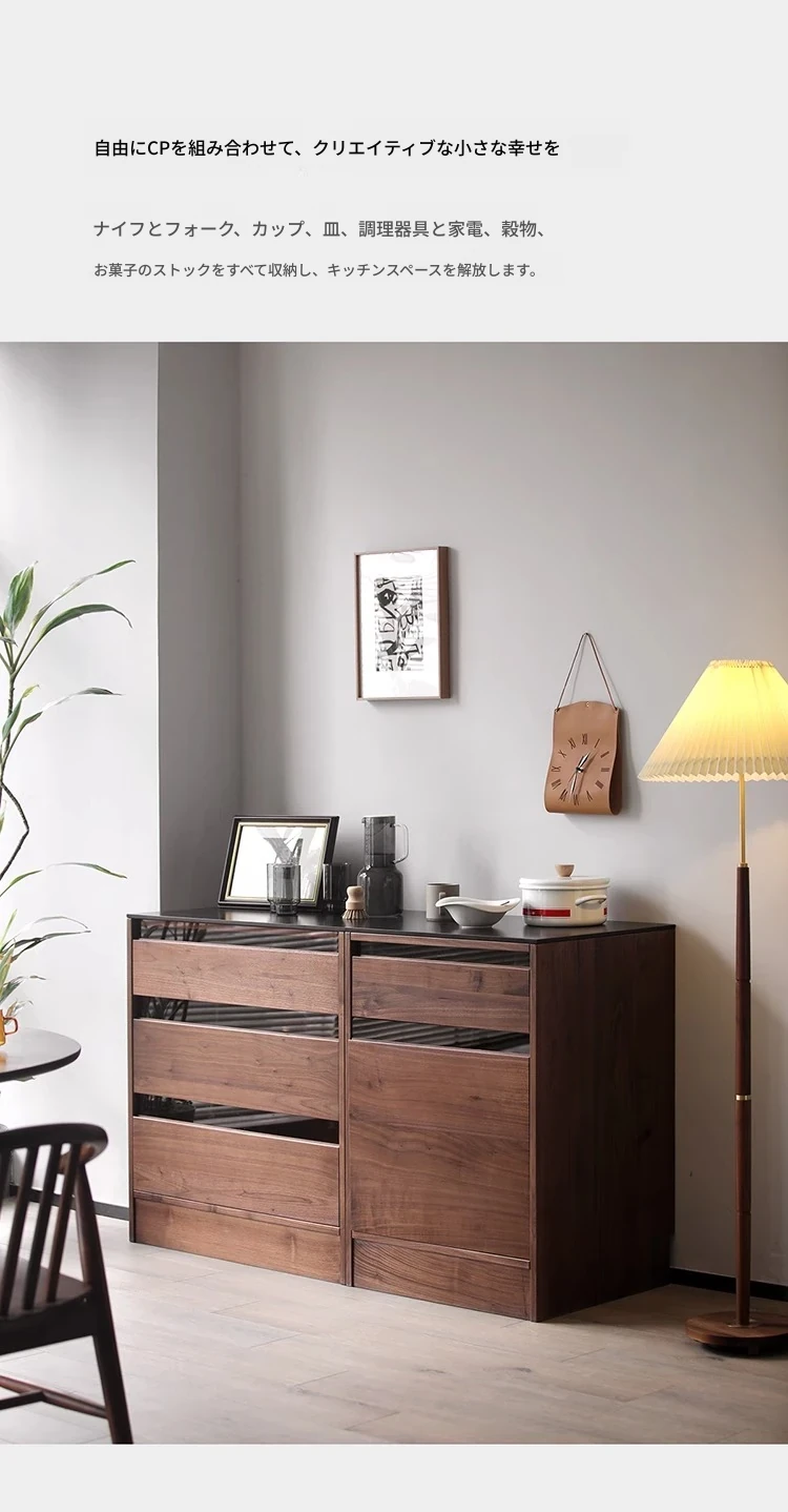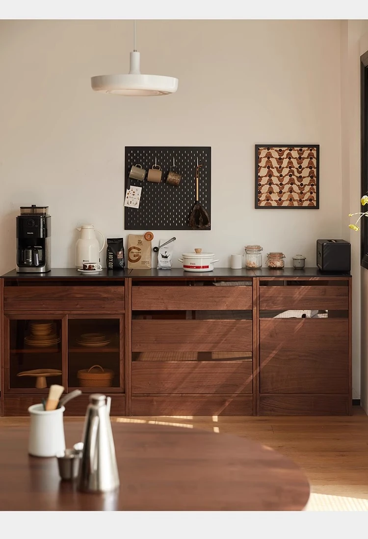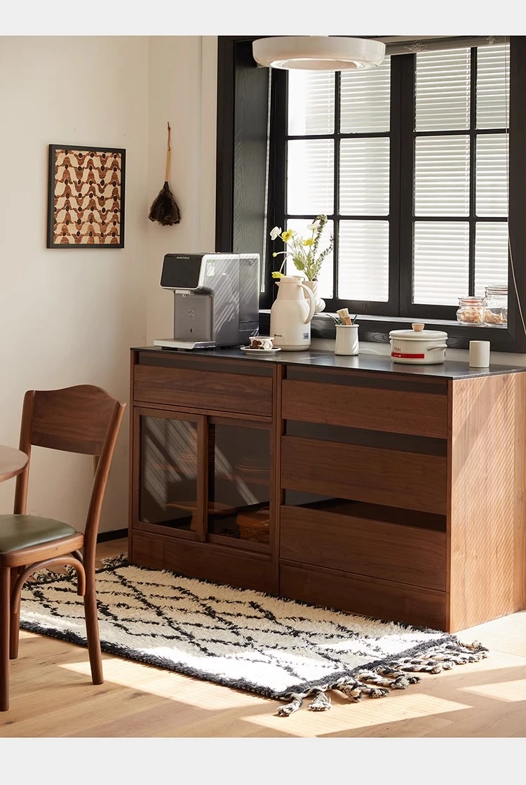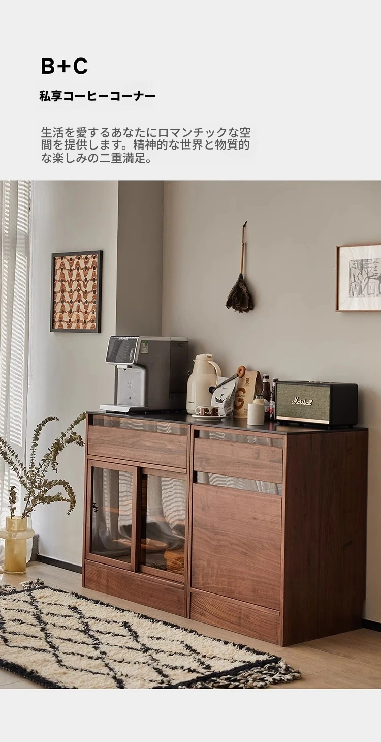 妙梵「御膳台」北米産ブラックウォールナットの食器棚 - スタイリッシュな収納力と高級感を兼ね備えたダイニングテーブルサイドキャビネット。あなたの食卓を美しく彩る完璧な収納ソリューション!