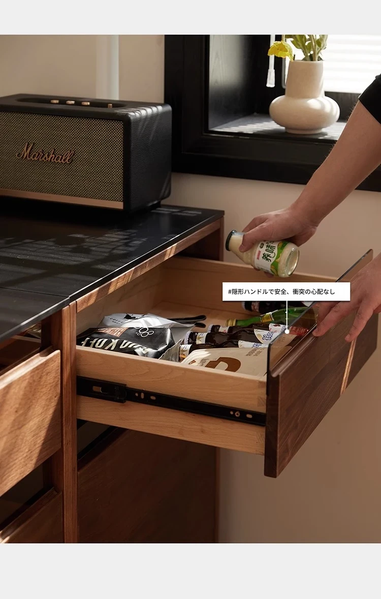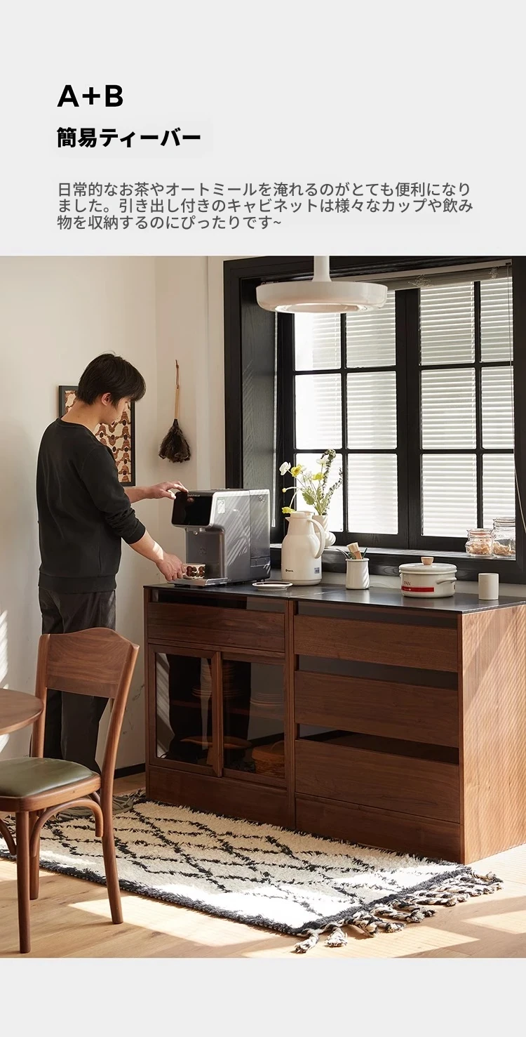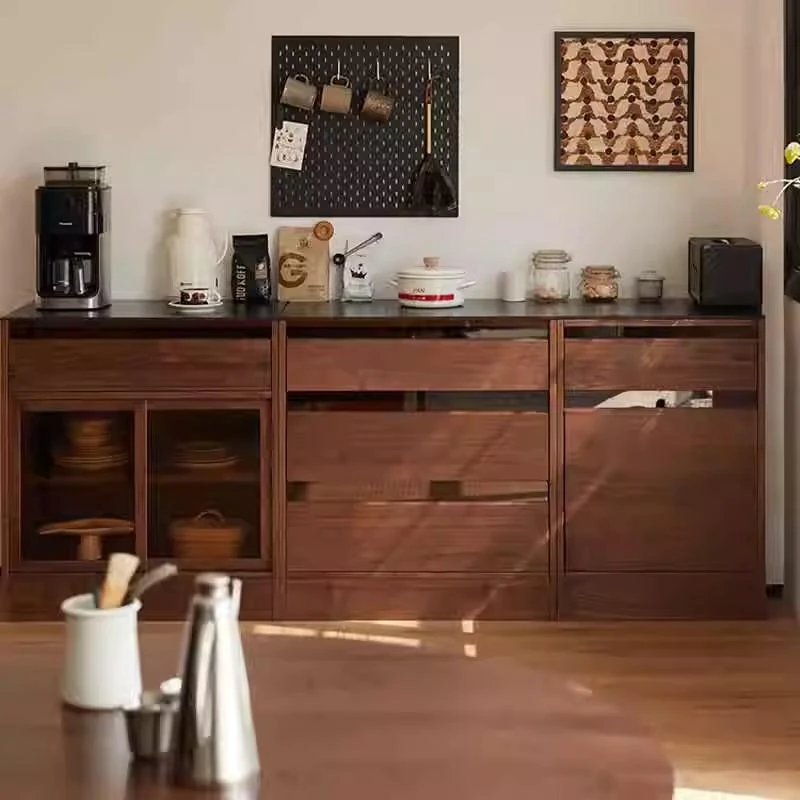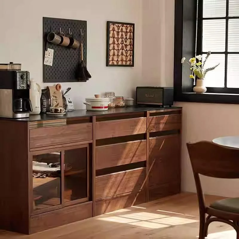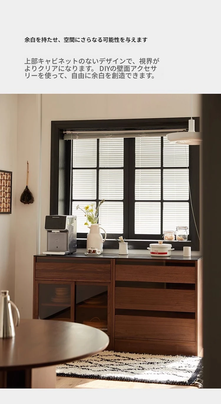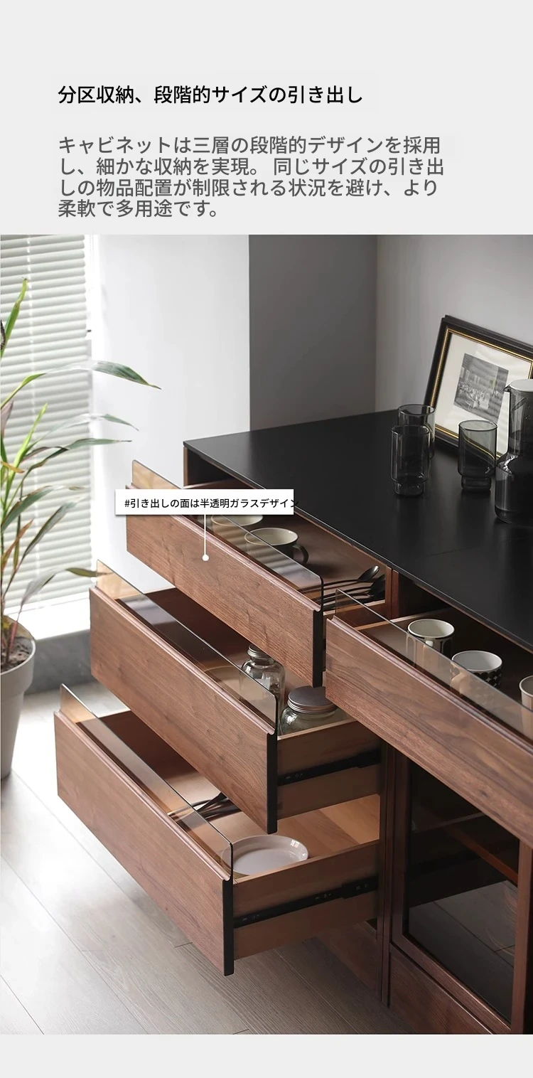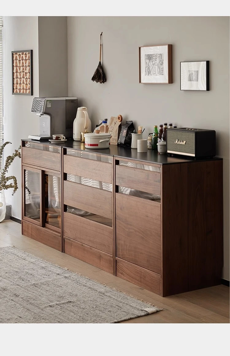 妙梵「御膳台」北米産ブラックウォールナットの食器棚 - スタイリッシュな収納力と高級感を兼ね備えたダイニングテーブルサイドキャビネット。あなたの食卓を美しく彩る完璧な収納ソリューション!