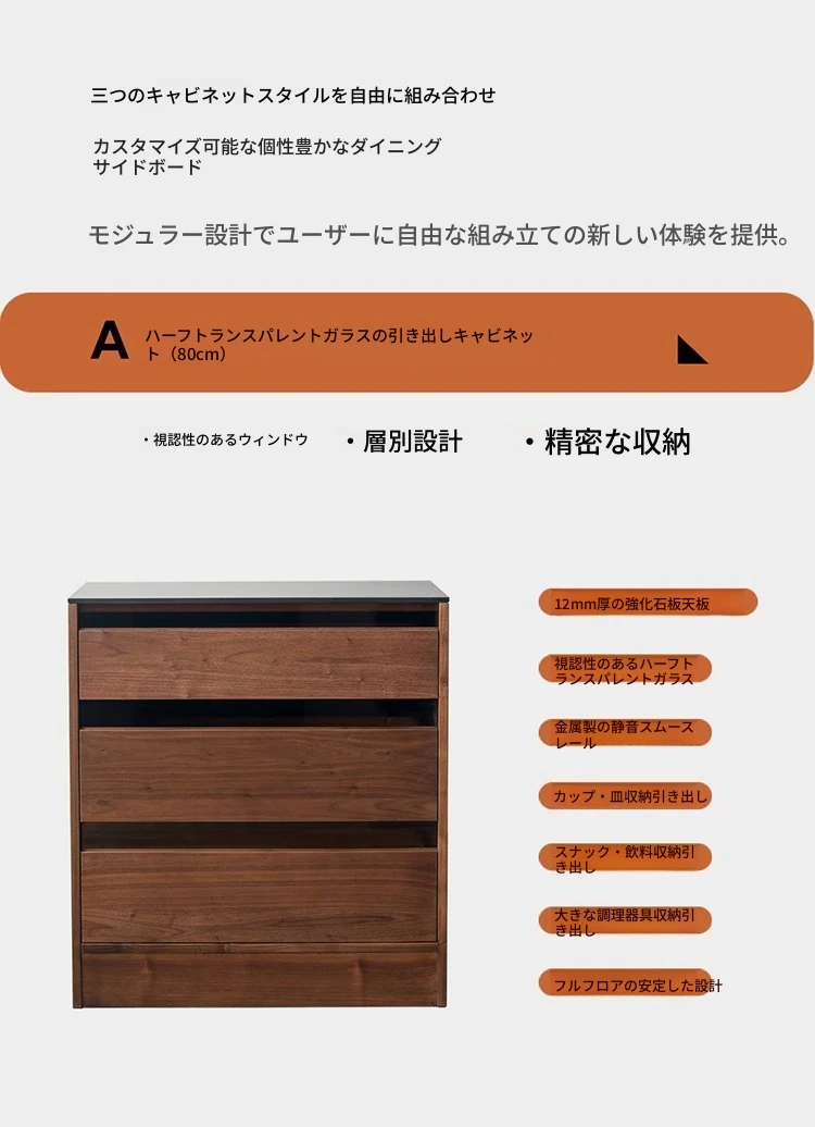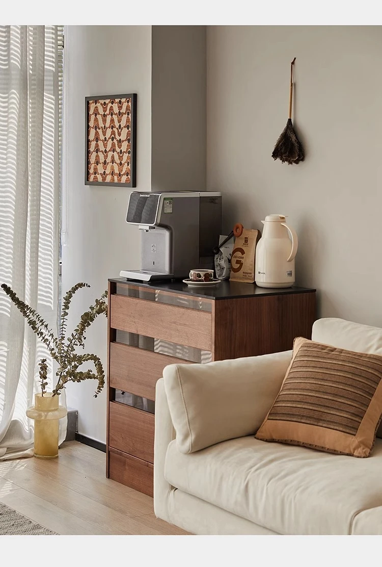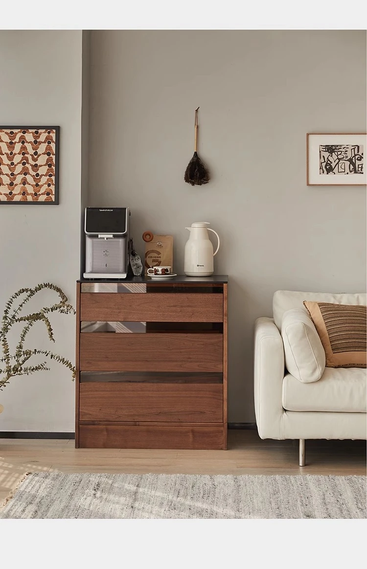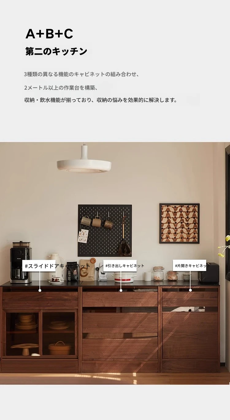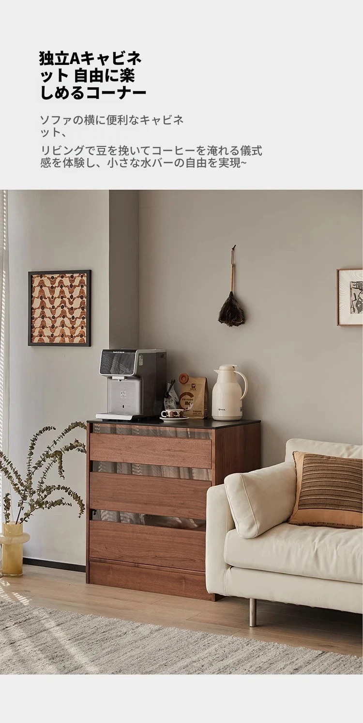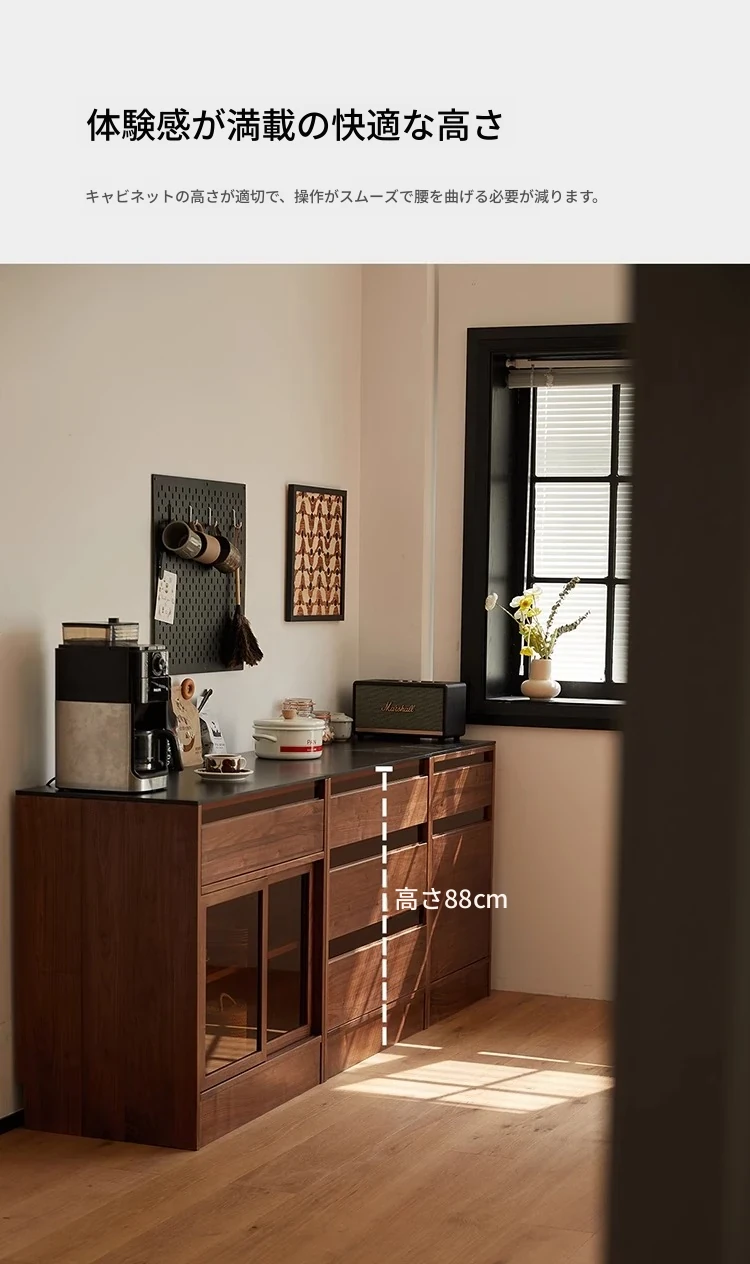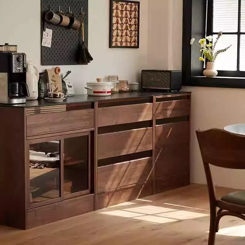 妙梵「御膳台」北米産ブラックウォールナットの食器棚 - スタイリッシュな収納力と高級感を兼ね備えたダイニングテーブルサイドキャビネット。あなたの食卓を美しく彩る完璧な収納ソリューション!