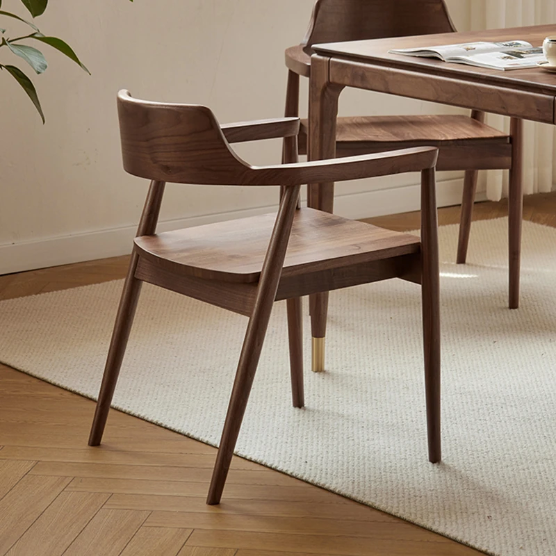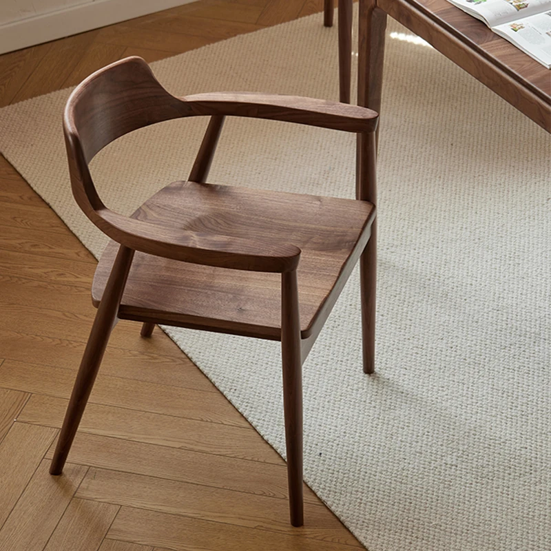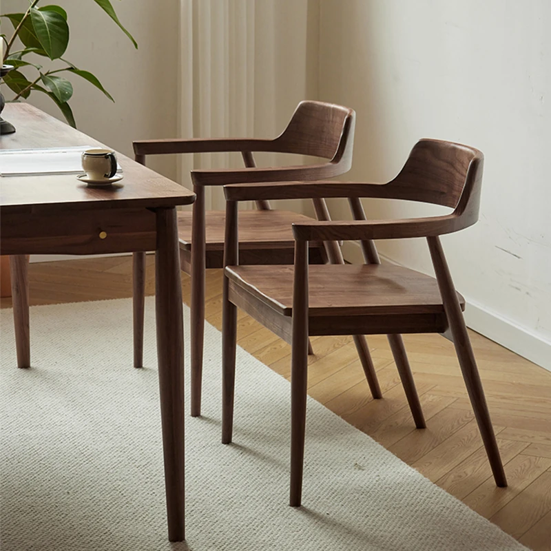 妙梵「シューメイトチェア」北米産ブラックウォールナットのダイニングチェア - シンプルでスタイリッシュな背もたれとアームレスト付き。書斎や会議室に最適なオフィスチェア!快適な座り心地で、仕事や談話をより楽しく演出します。