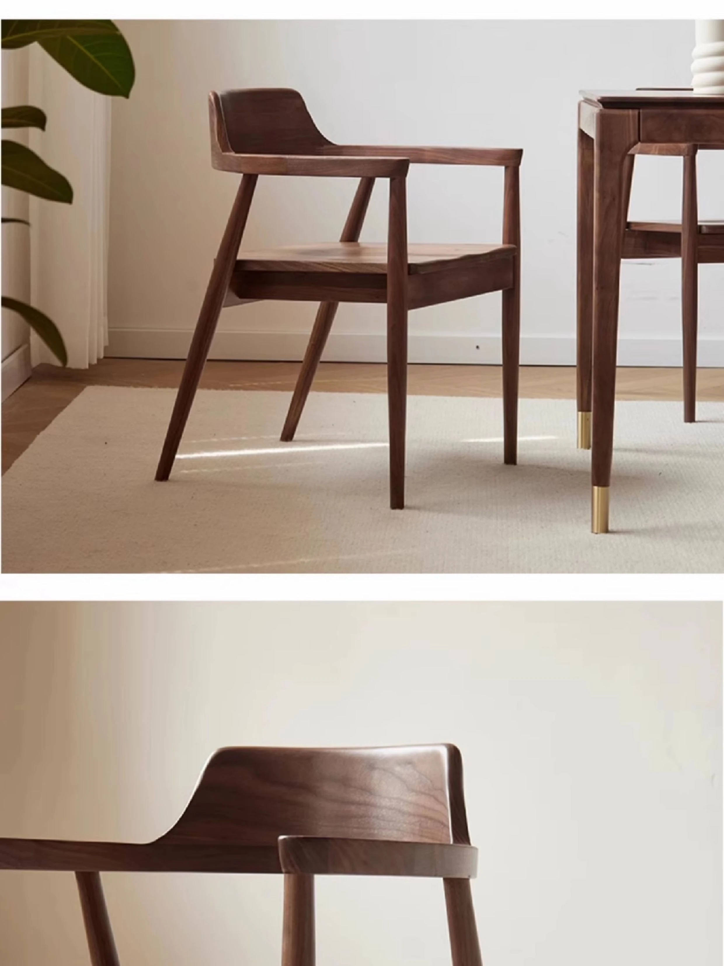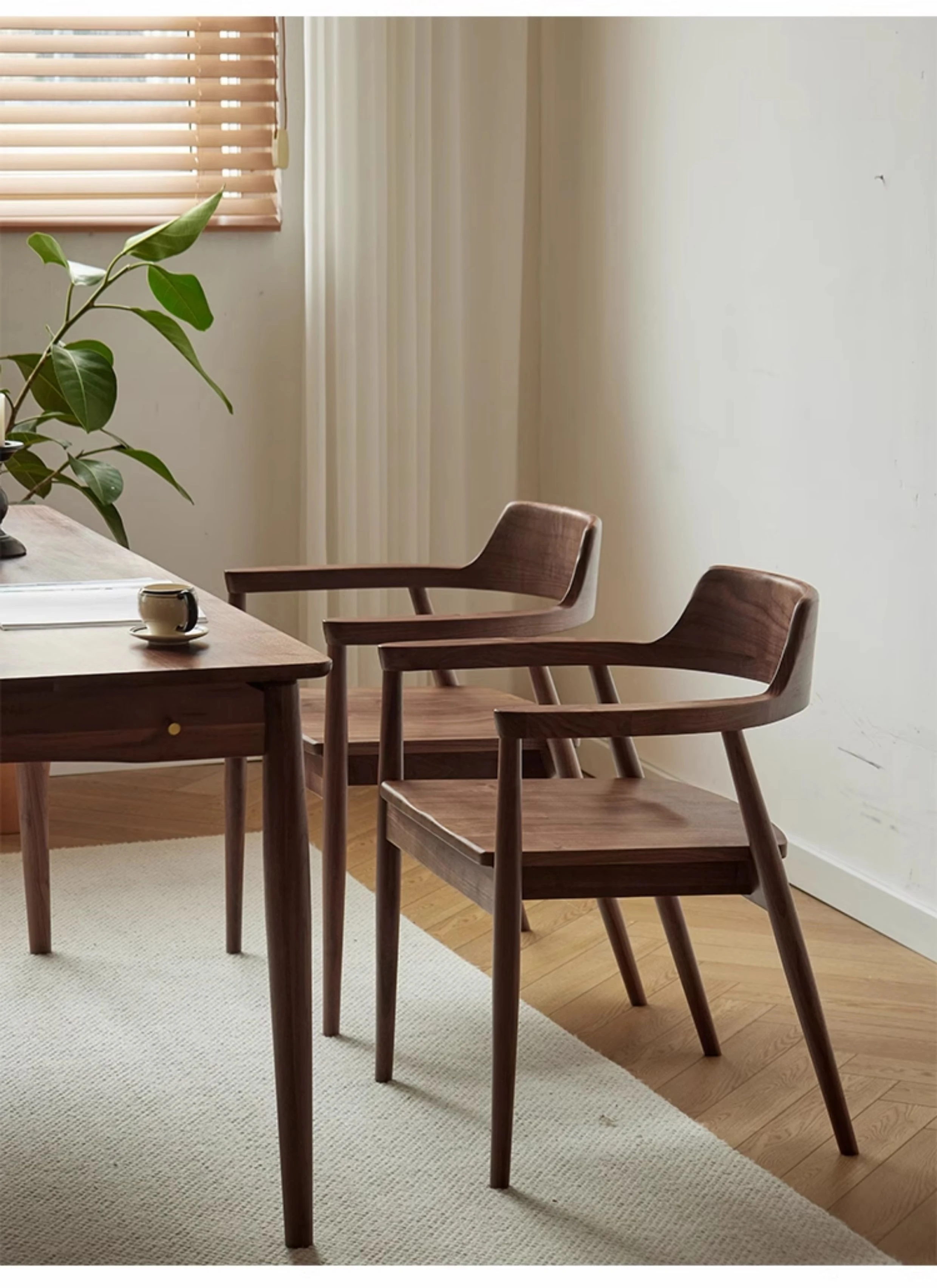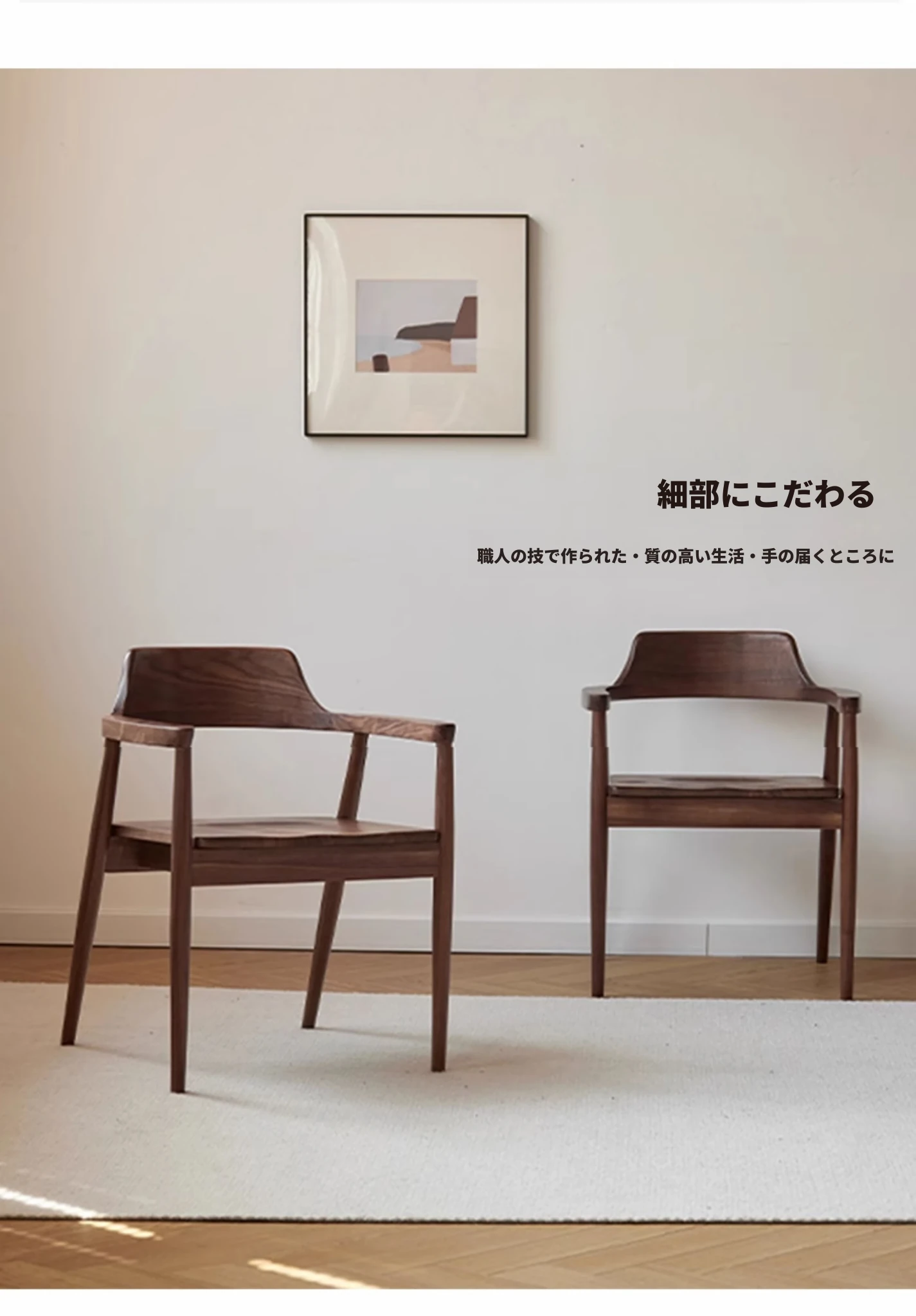 妙梵「マンメ椅」北米ブラックウォールナット製のダイニングチェア シンプルなデザインのアームチェア 書斎や会議に最適なオフィスチェア
