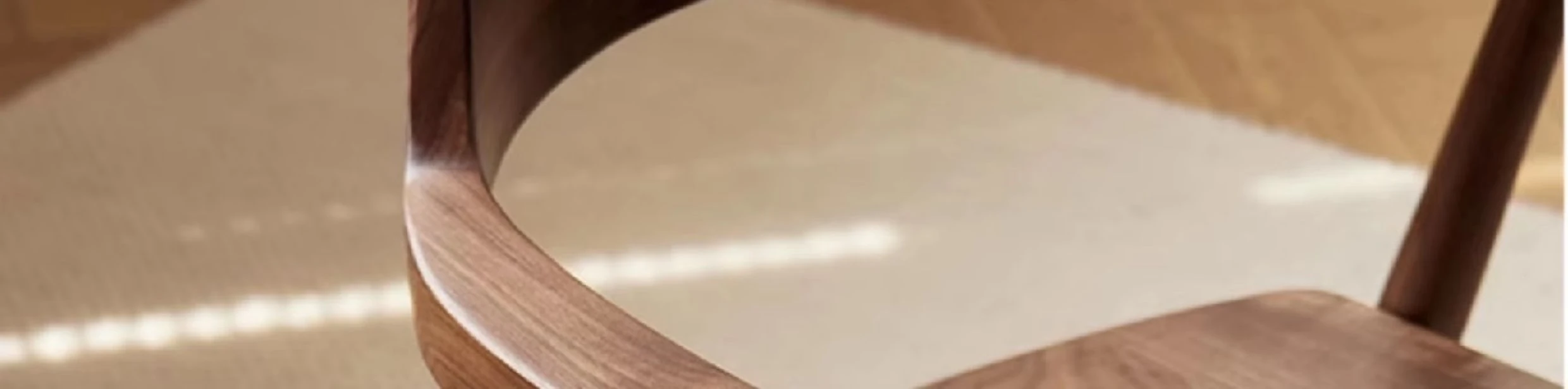 妙梵「カマキリチェア」北米産ブラックウォールナット使用、背もたれ付きのスタイリッシュなデスクチェア。現代的な軽やかさと贅沢さを兼ね備えたダイニングチェア、主役となる一脚です。