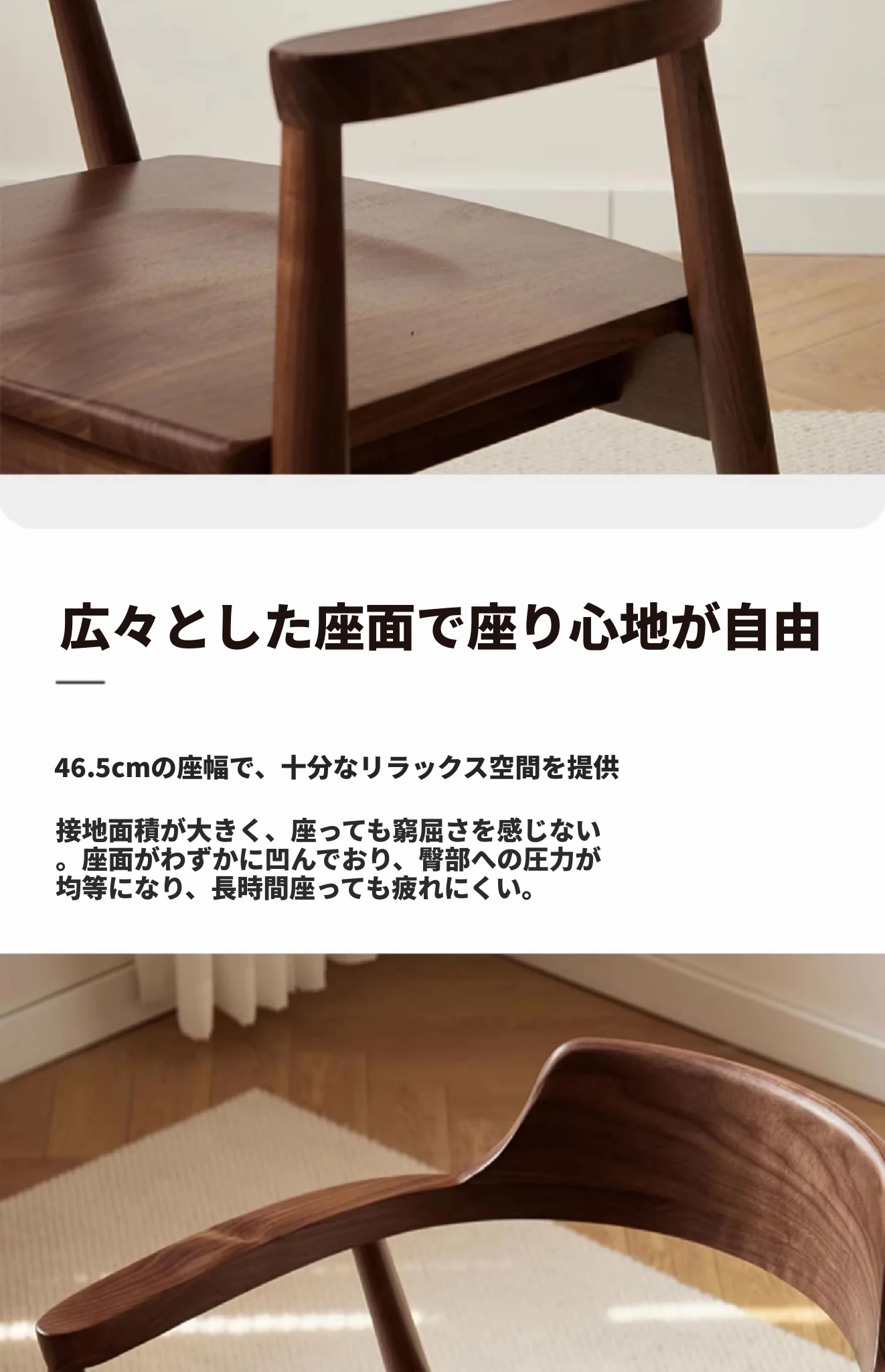 妙梵「リラックス雲椅子」北米ブラックウォールナット無垢材ダイニングチェア アームチェア 北欧イタリア風ティーチェア - 優雅なデザインと快適さを兼ね備えた、心地よいひとときをお楽しみください!