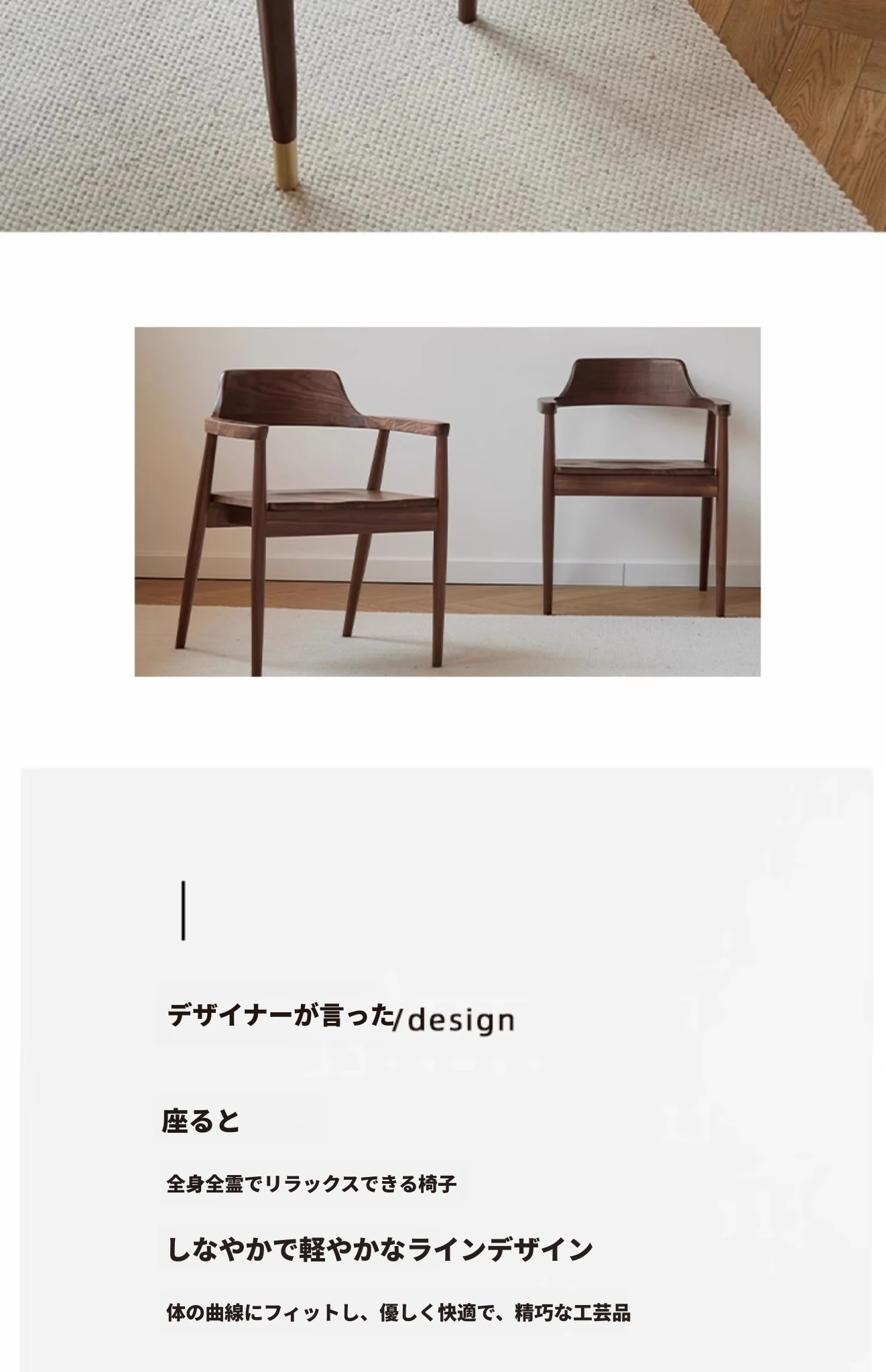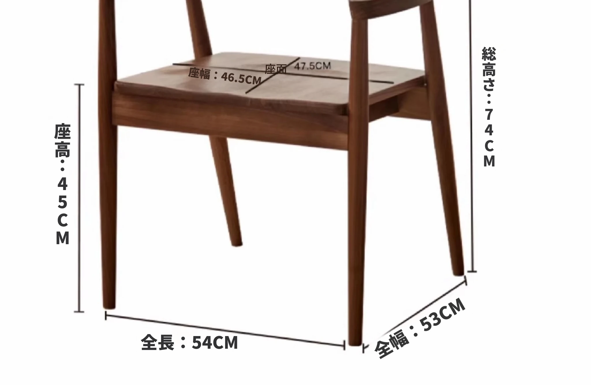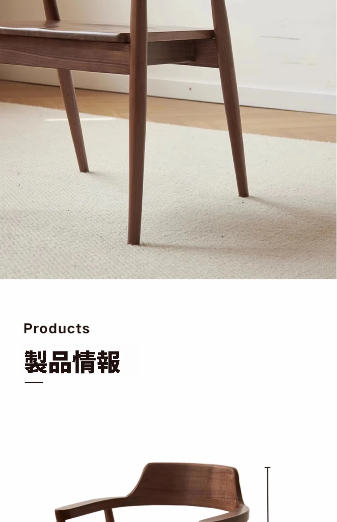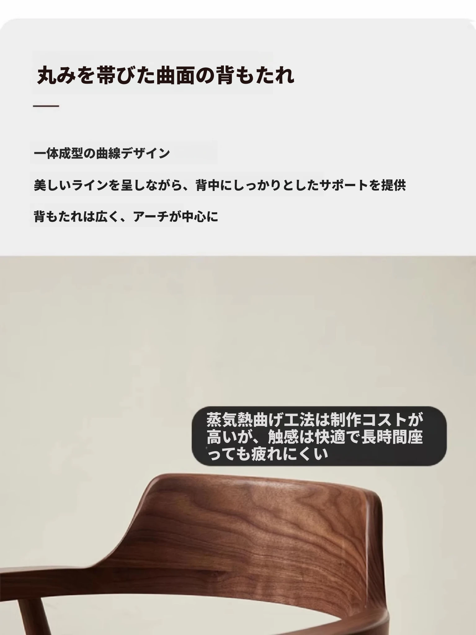 妙梵「リラックスチェア」北米産ウォールナット無垢材使用!全てが無垢材の高品質ダイニングチェア。家庭用デスクにもぴったりな背もたれ付き。快適な座り心地で、食事や作業をもっと楽しく!