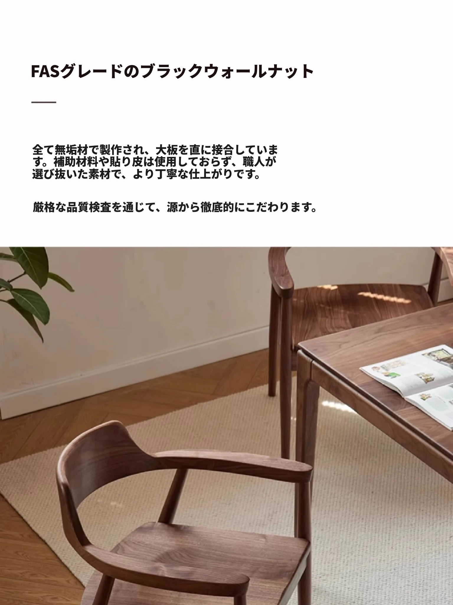 妙梵「広島チェア」北米産ブラックウォールナット無垢材使用のモダンシンプルなリラックスチェア - 家庭用ダイニングチェアに最適!洗練されたデザインで、心地よいひとときをお届けします。